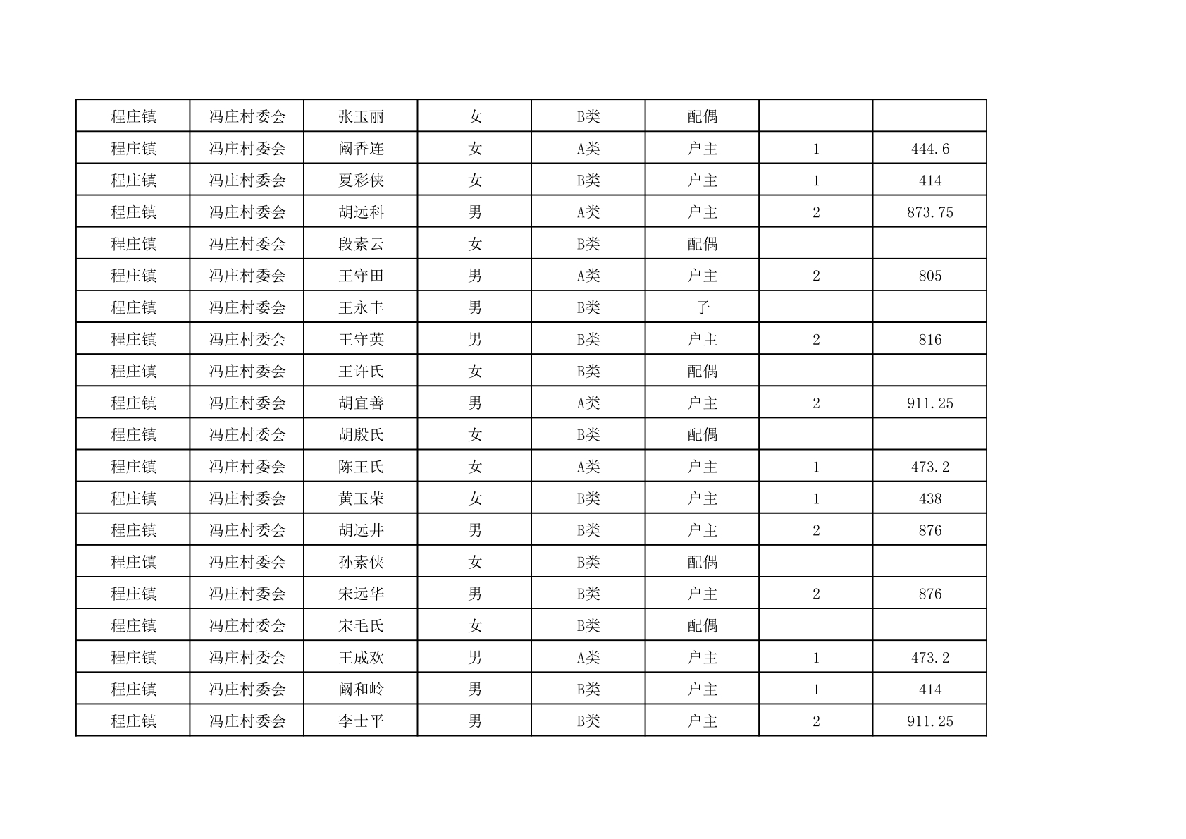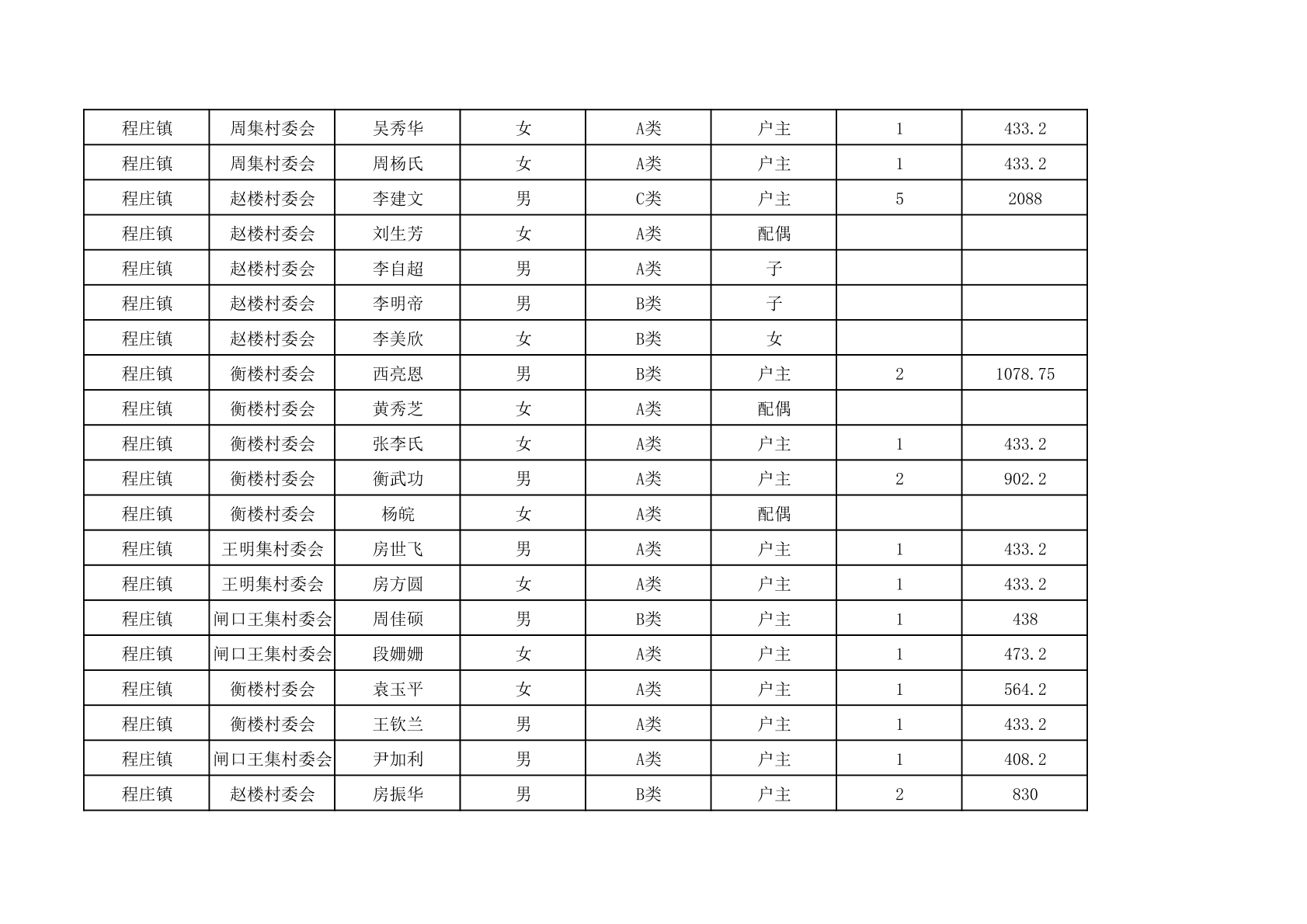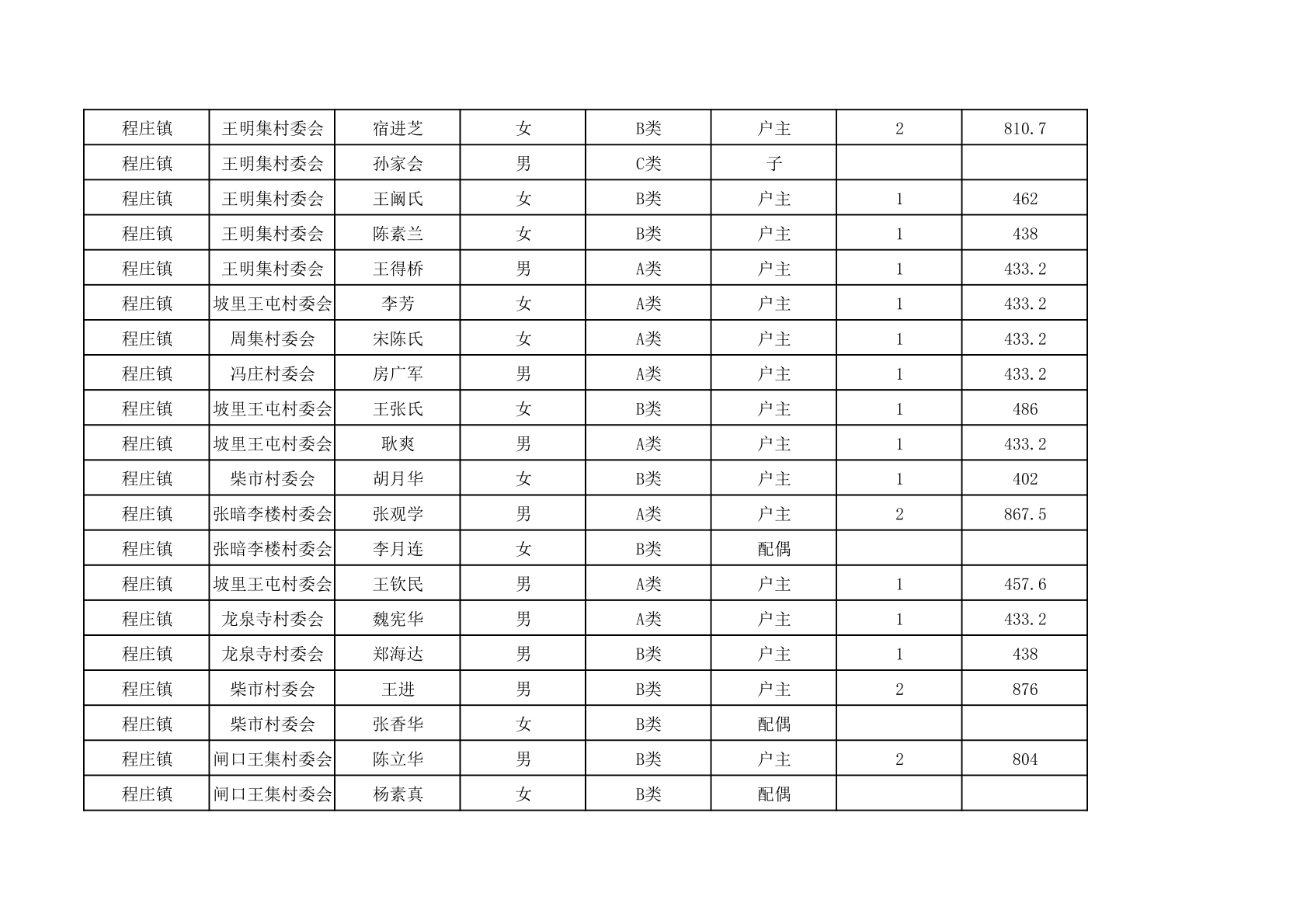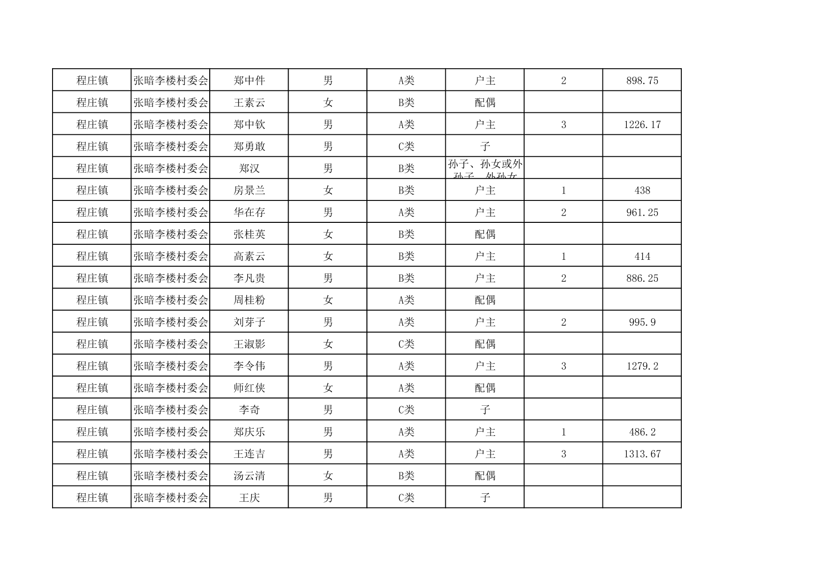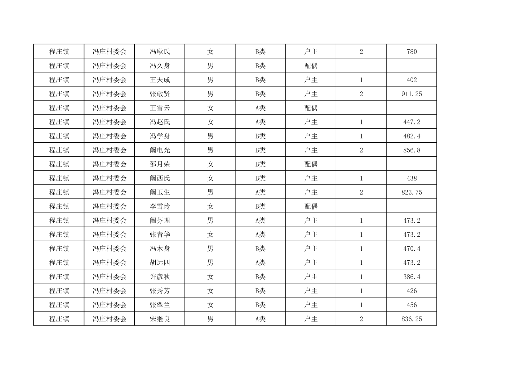 程庄镇2025年9月农保资金发放名册