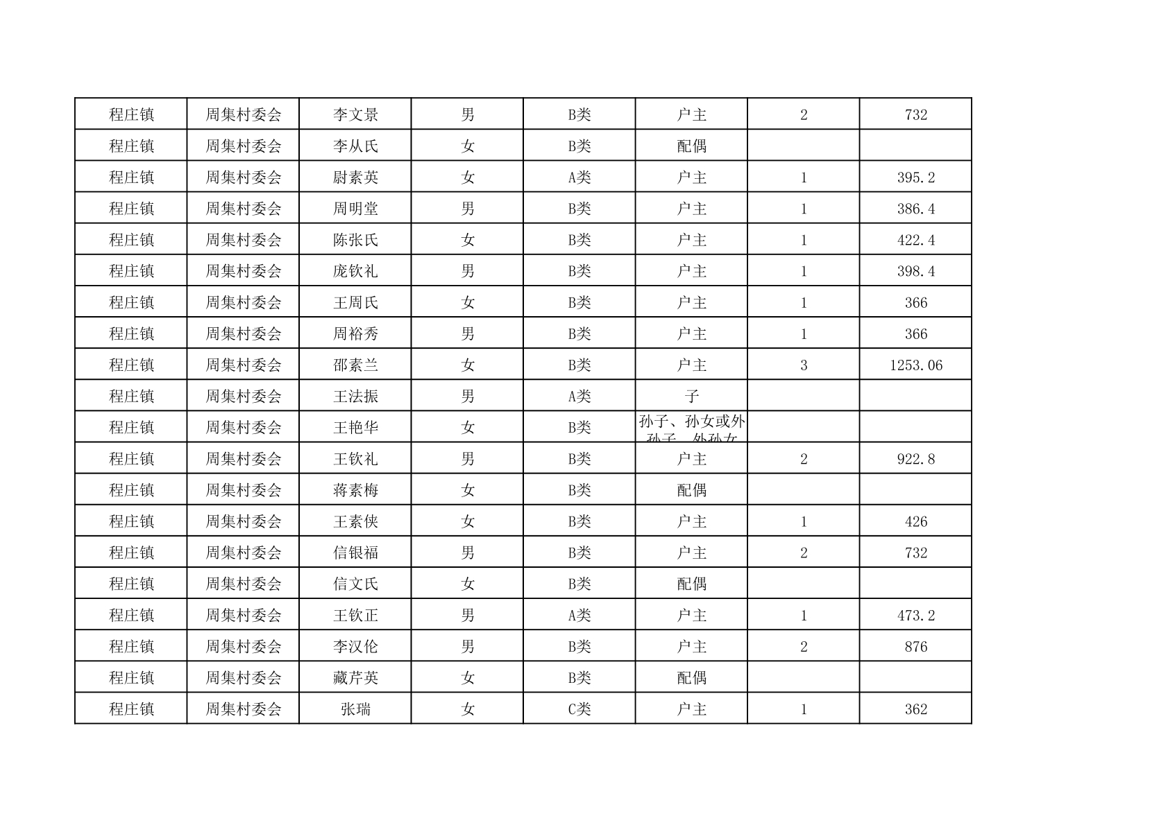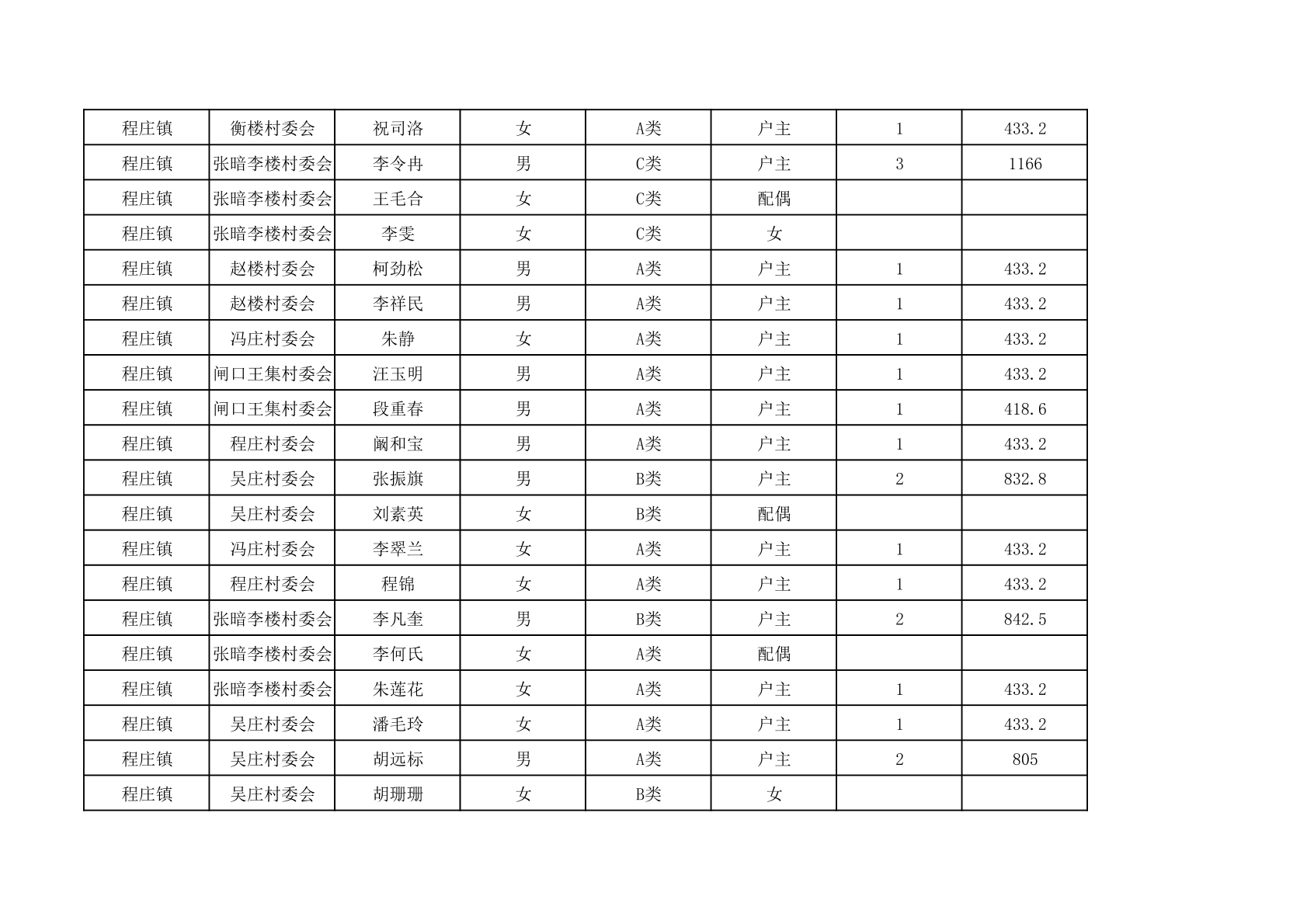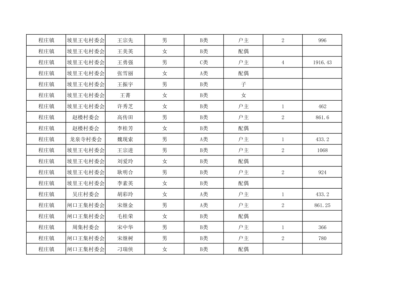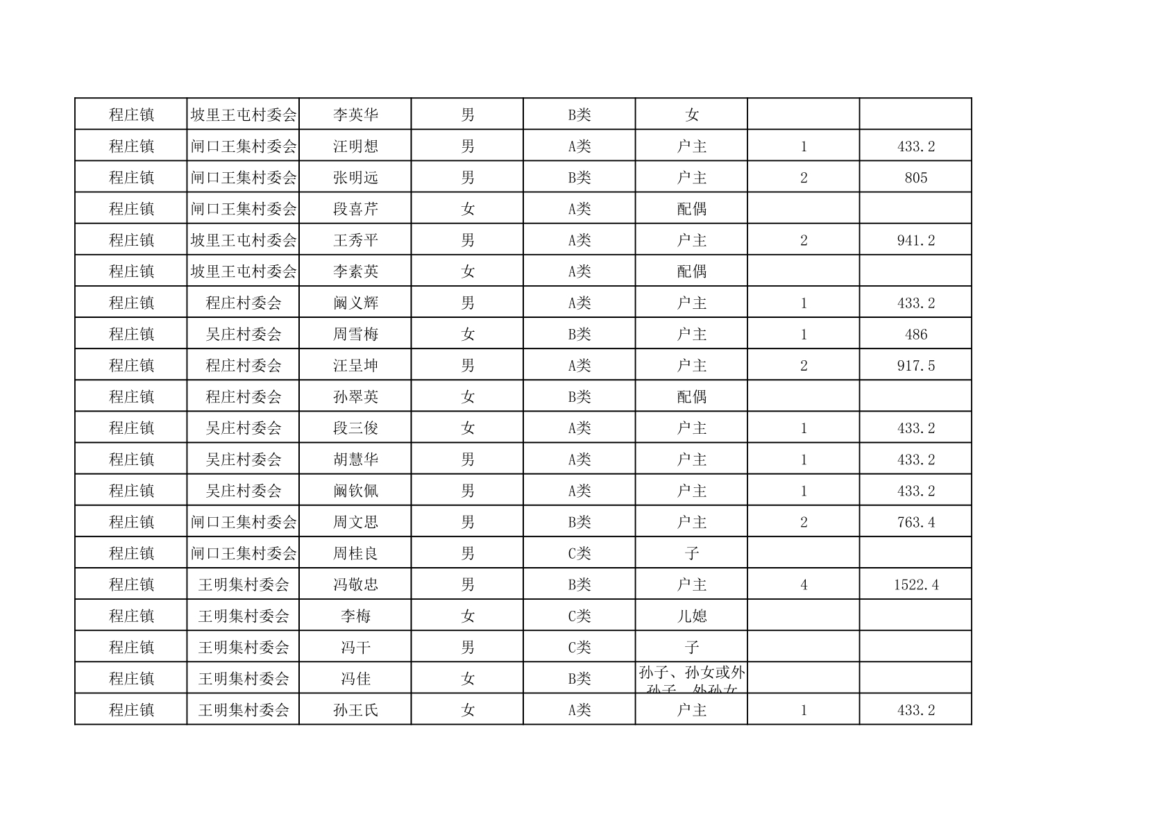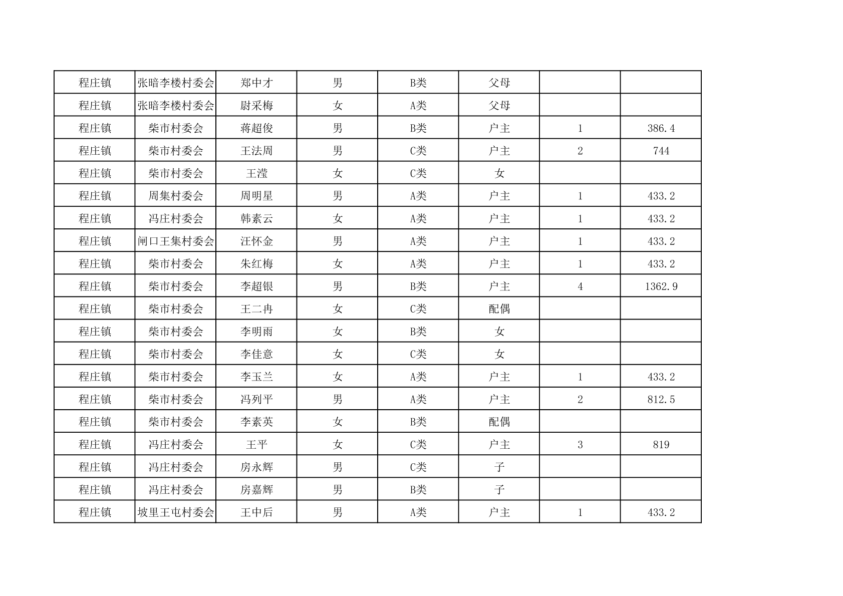 程庄镇2025年9月农保资金发放名册