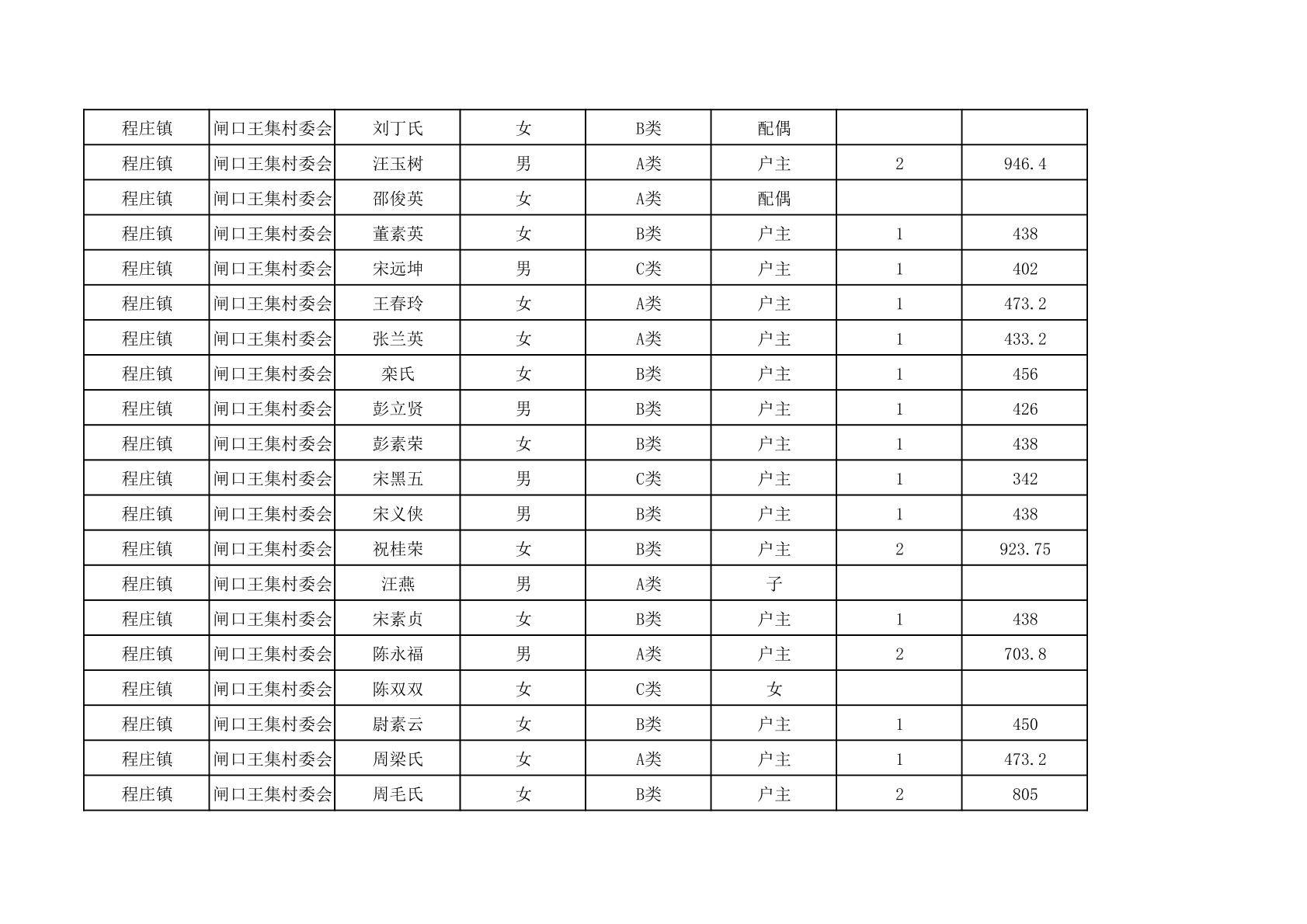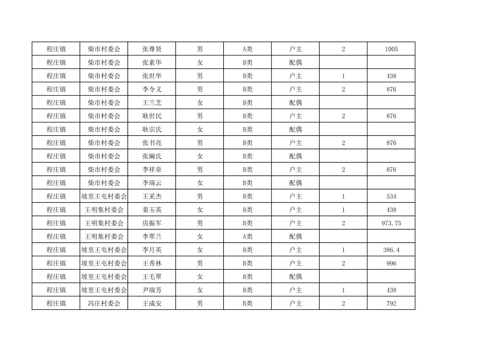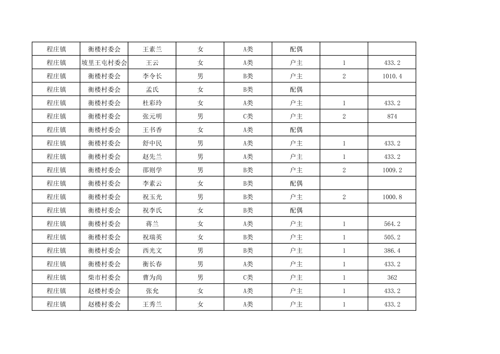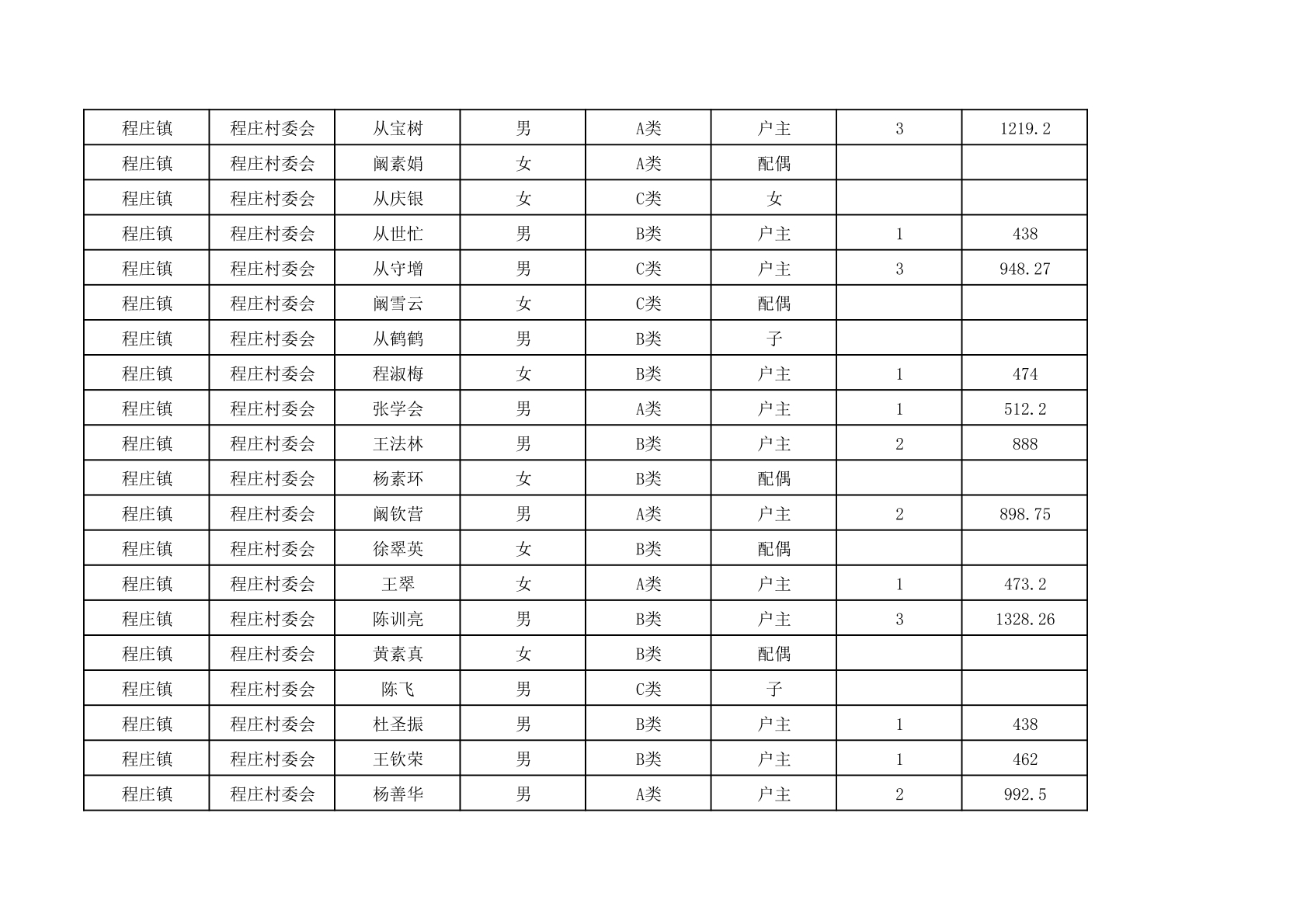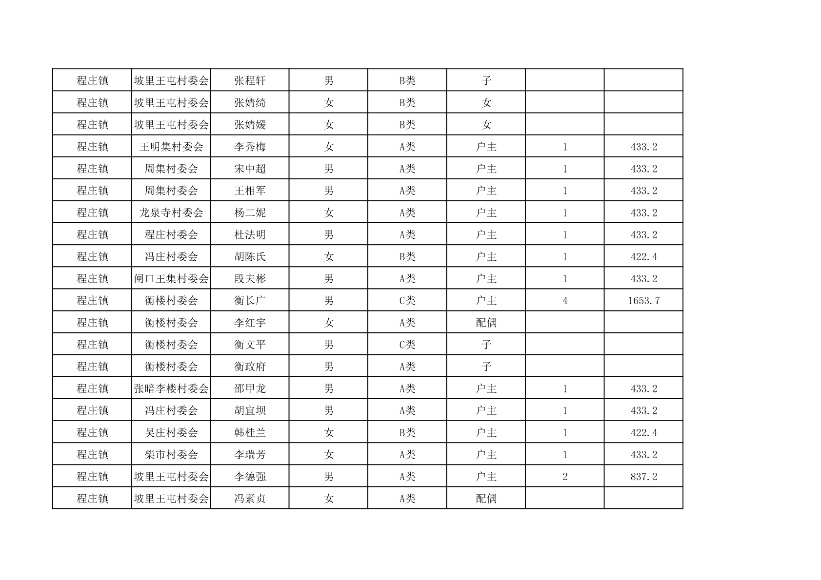 程庄镇2025年9月农保资金发放名册
