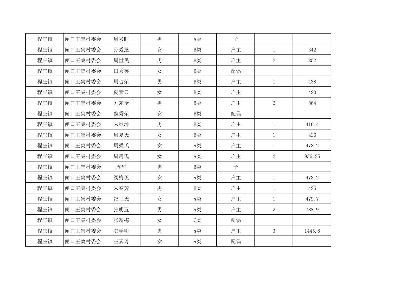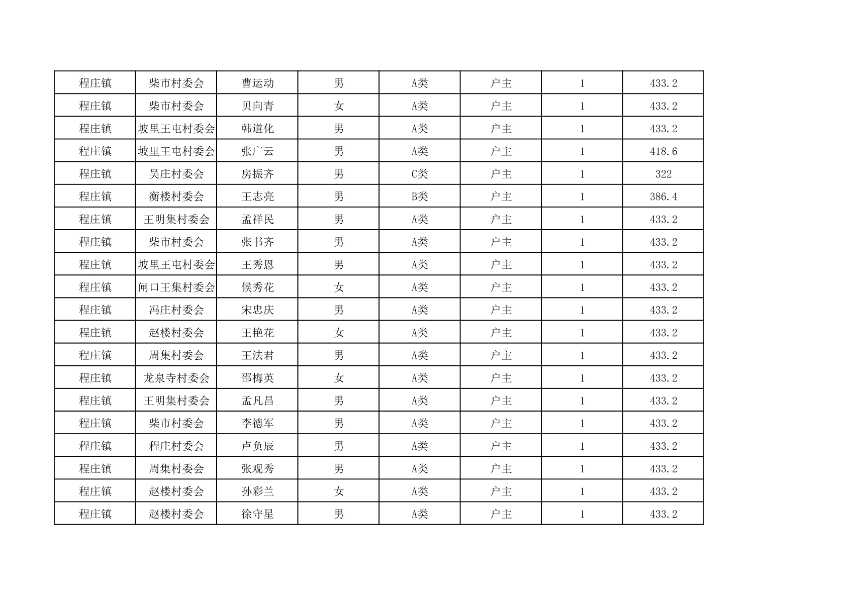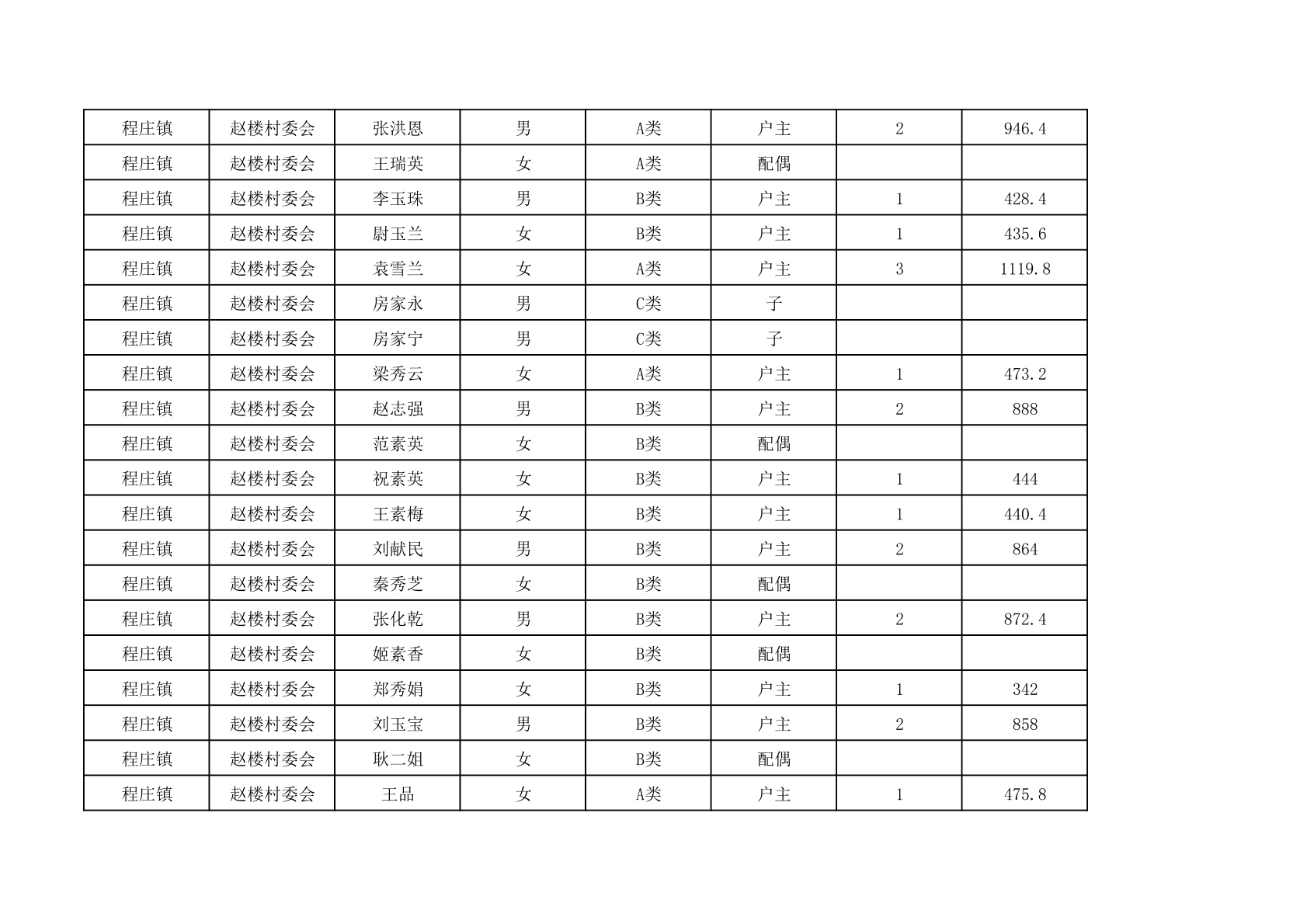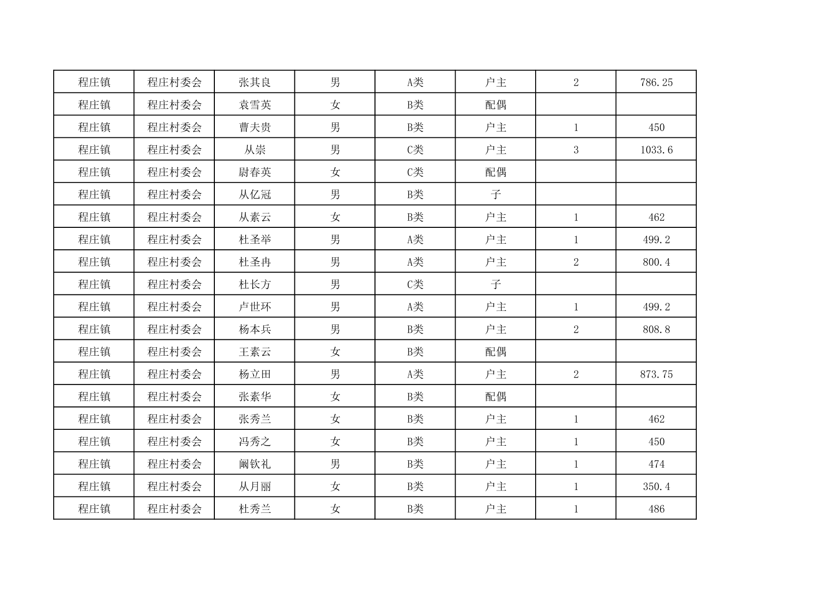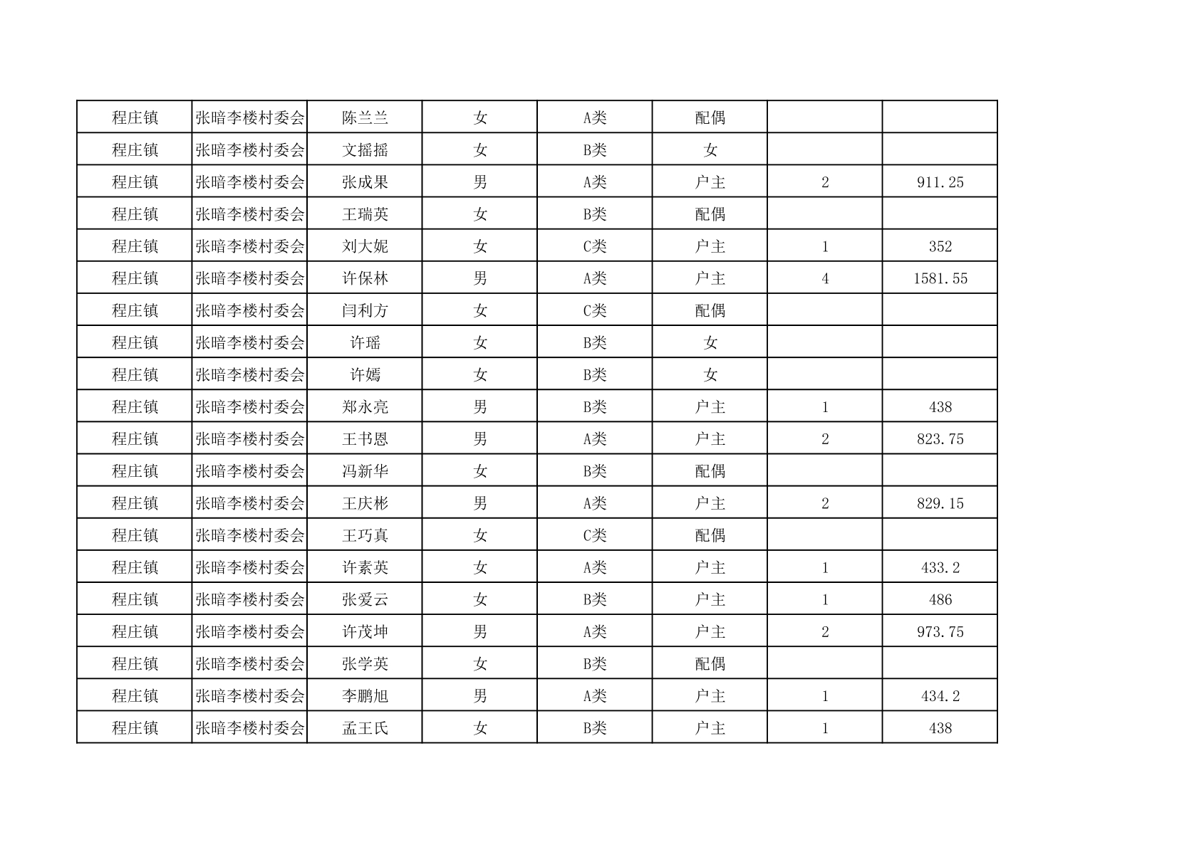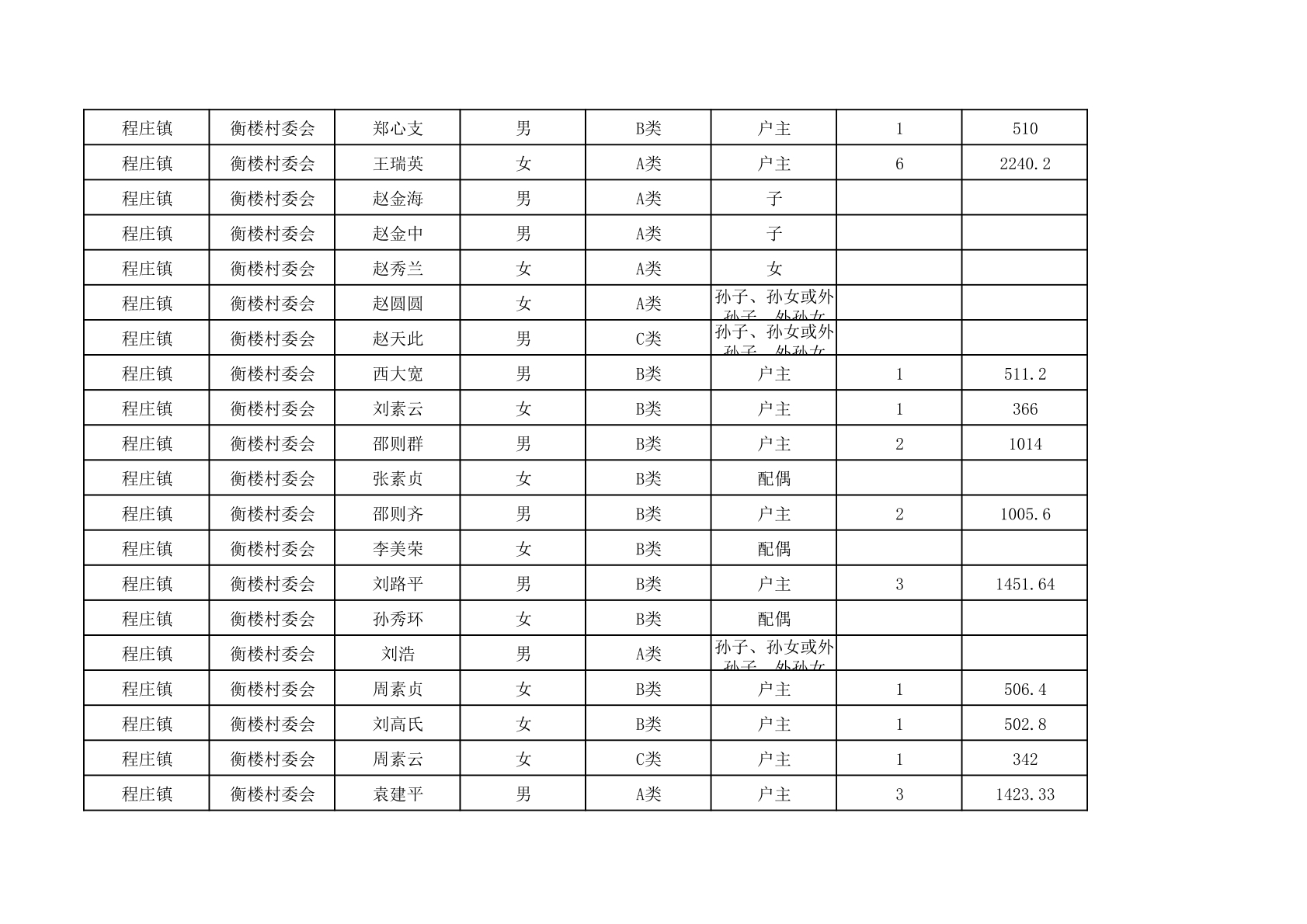 程庄镇2025年9月农保资金发放名册