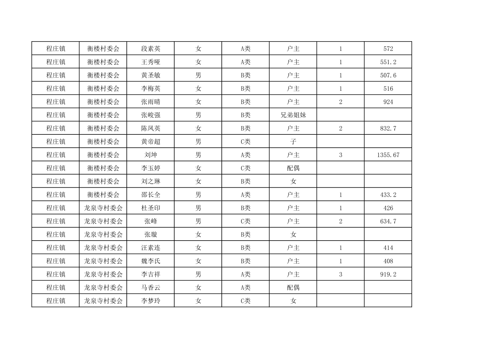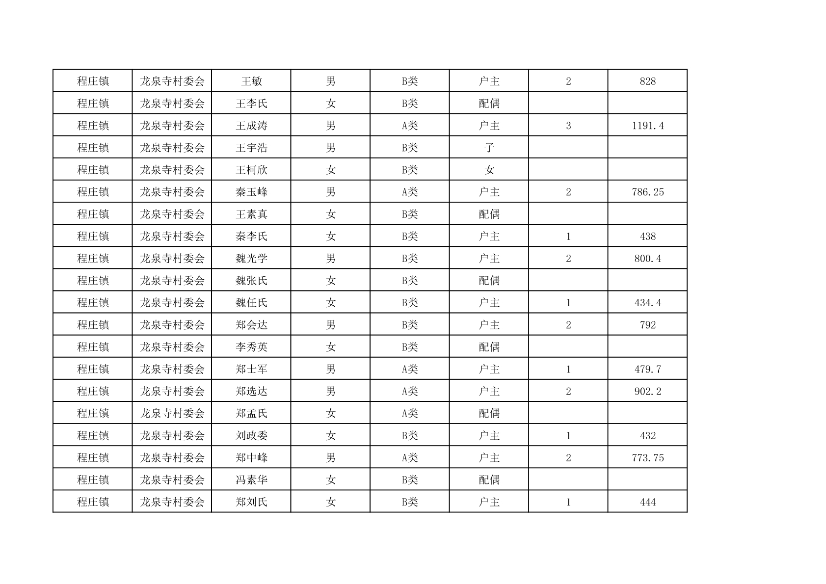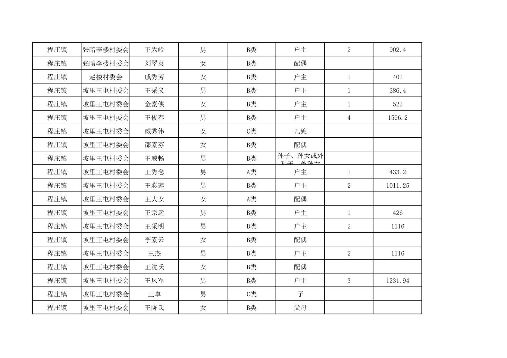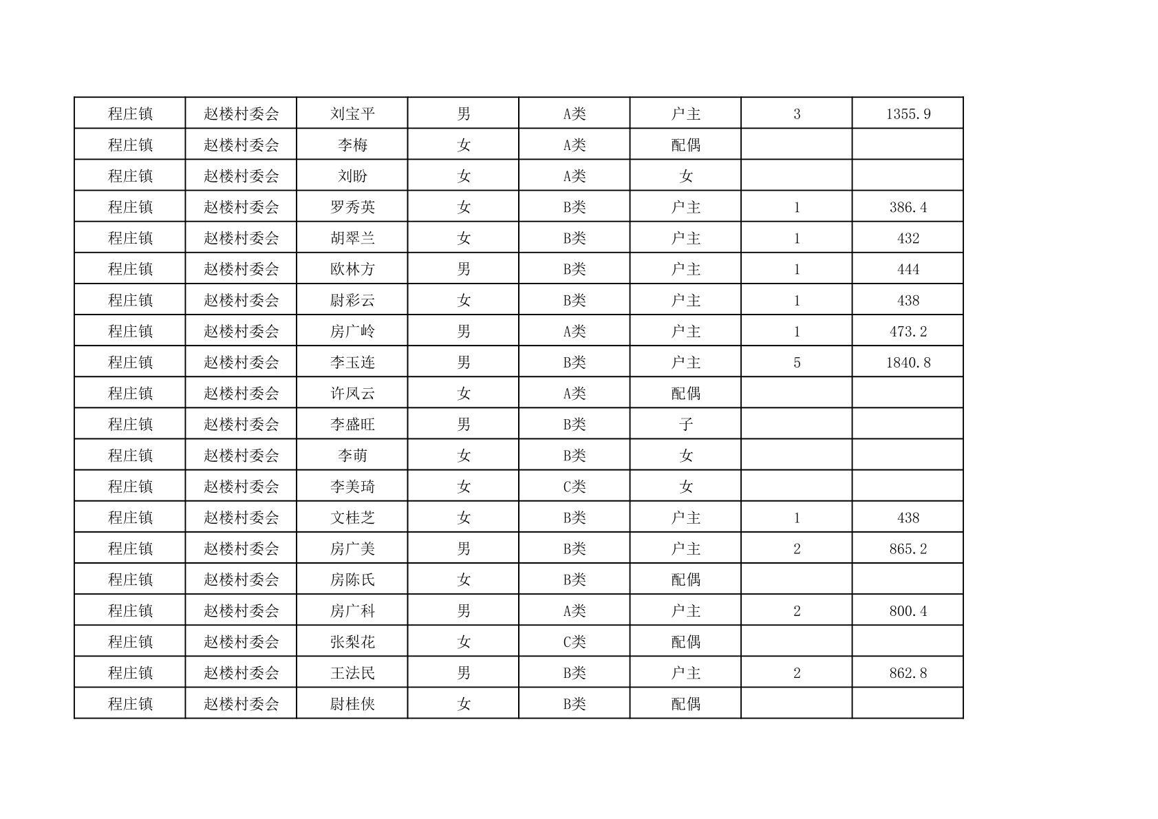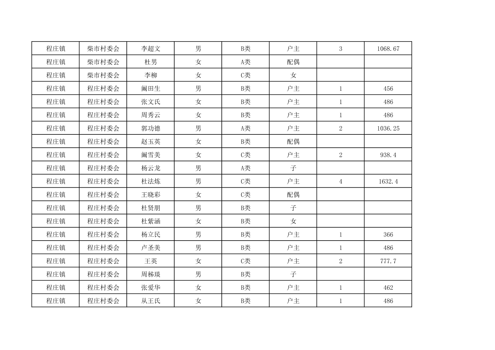 程庄镇2025年9月农保资金发放名册
