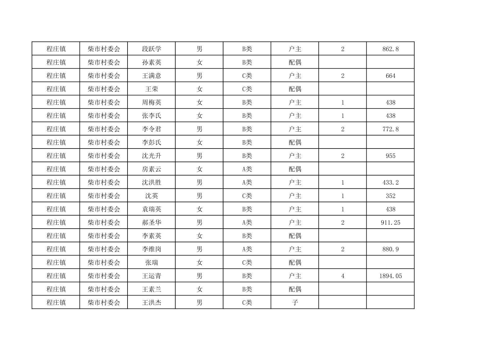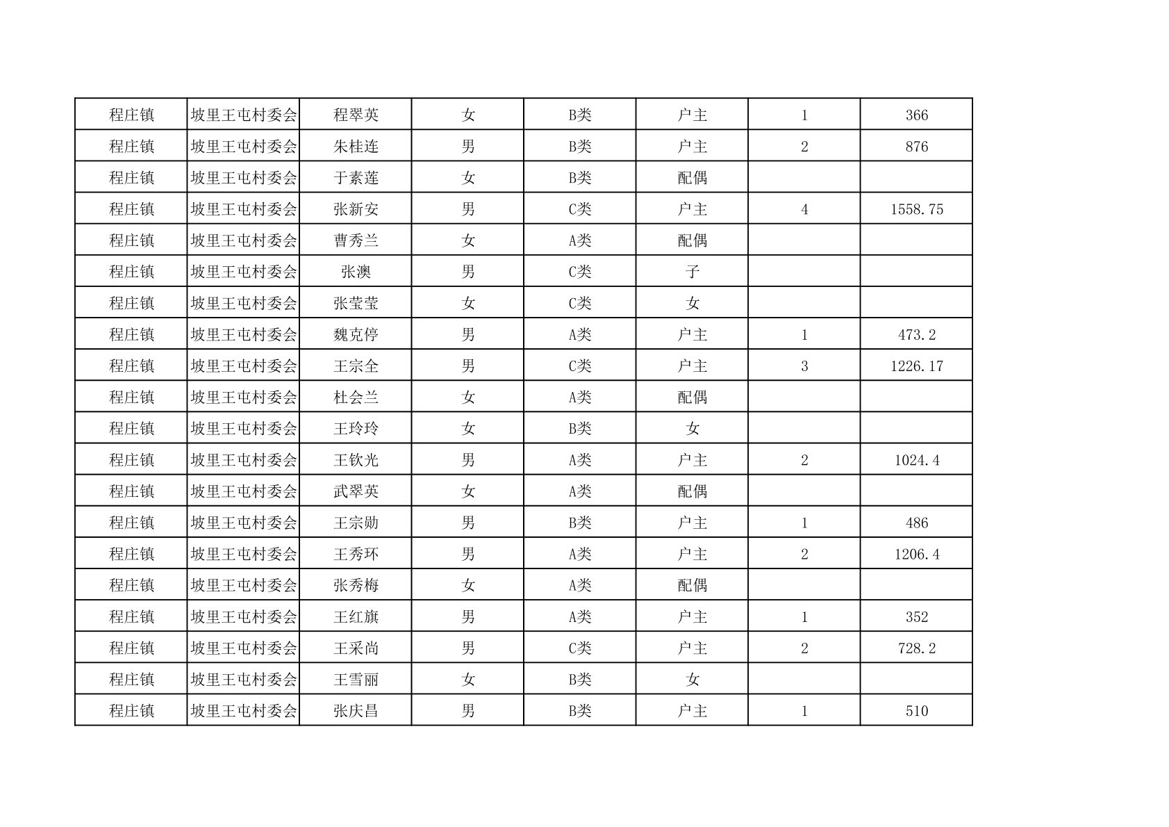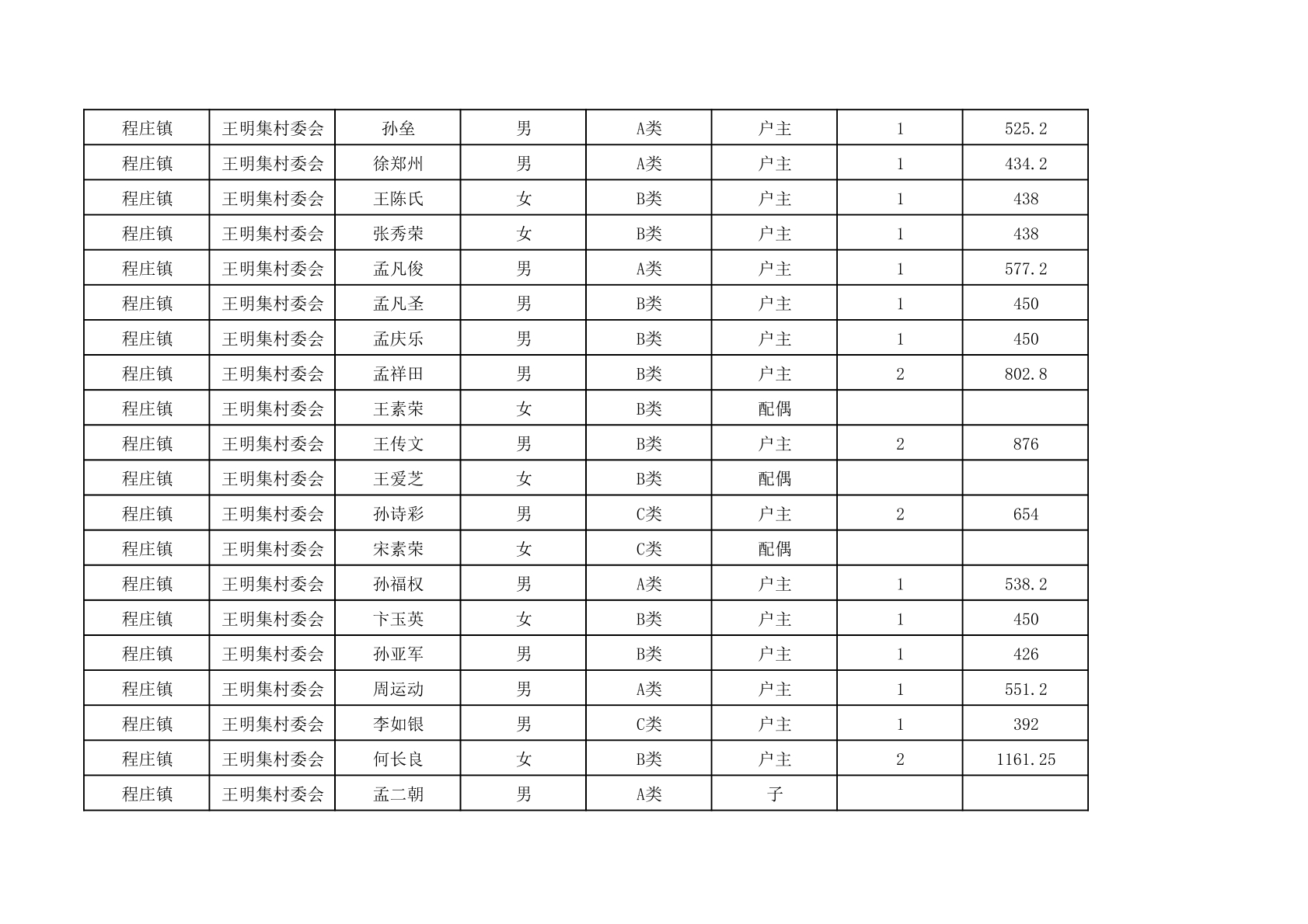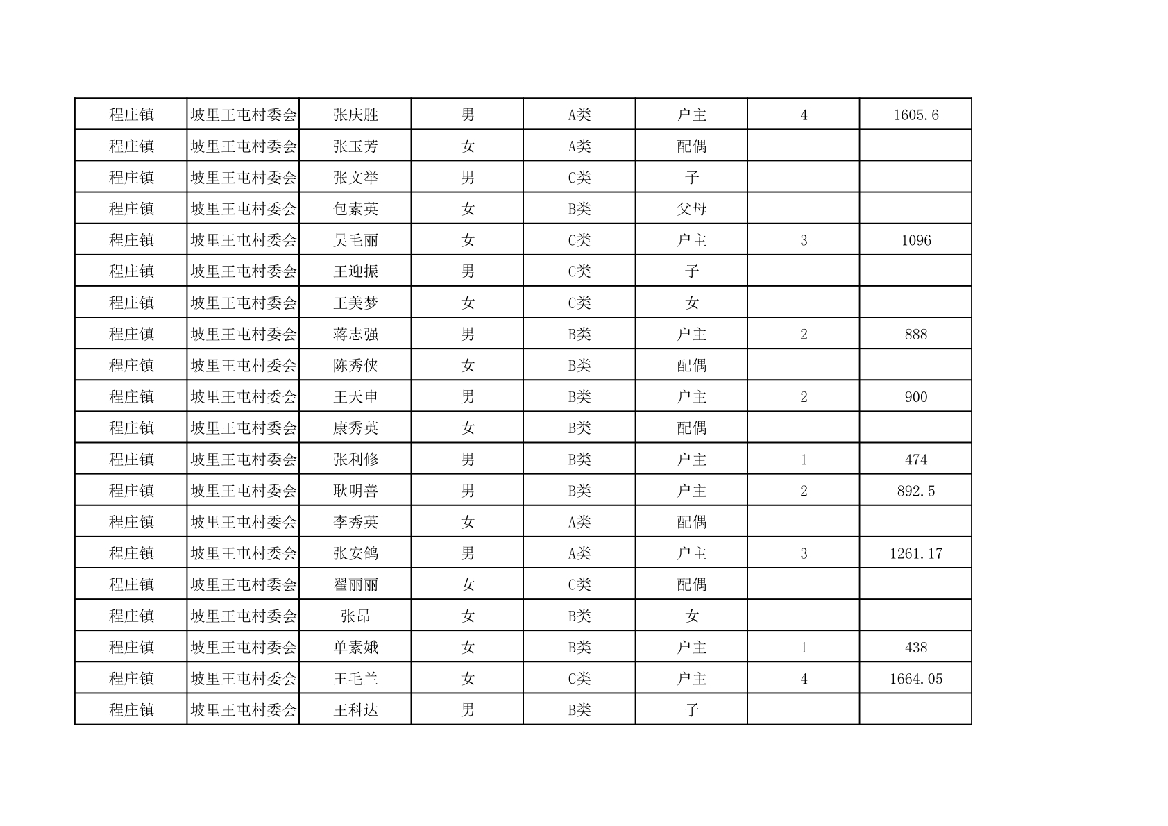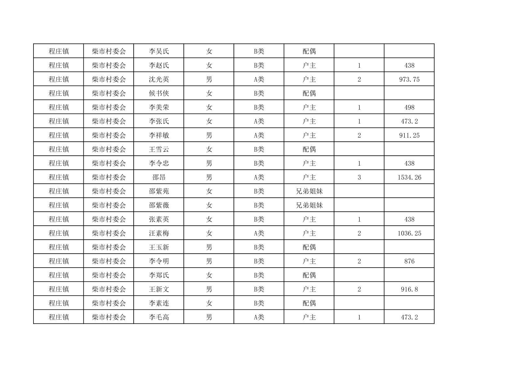 程庄镇2025年9月农保资金发放名册