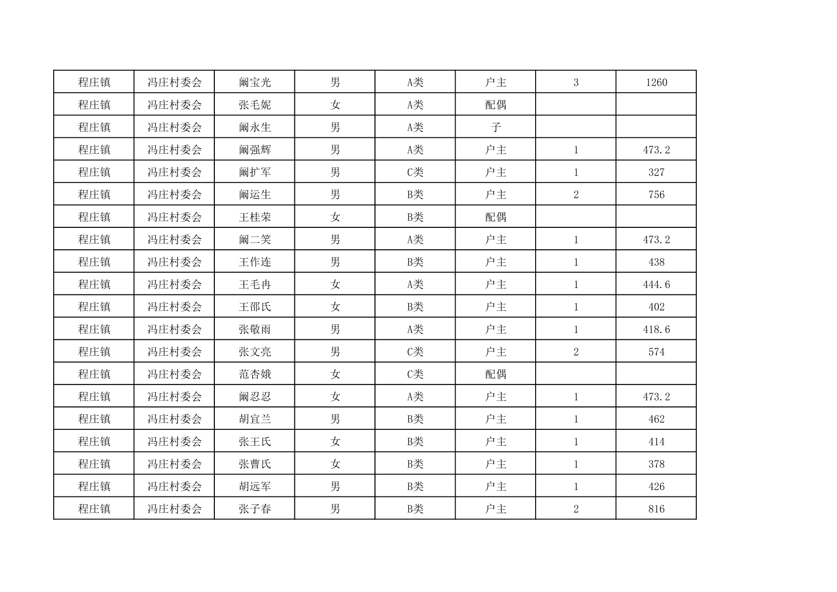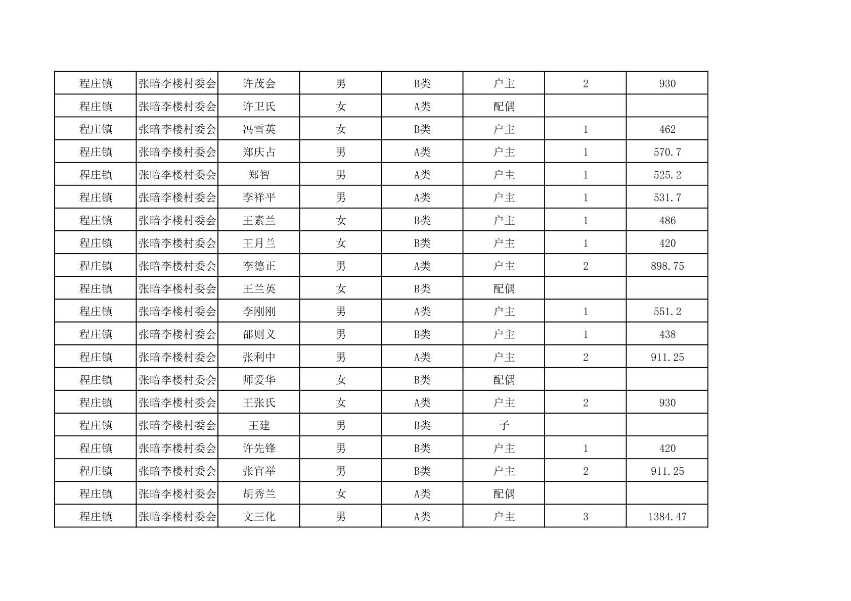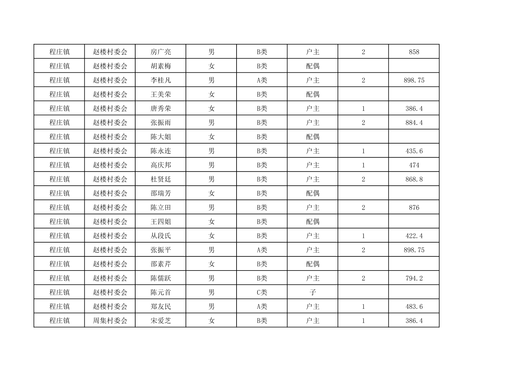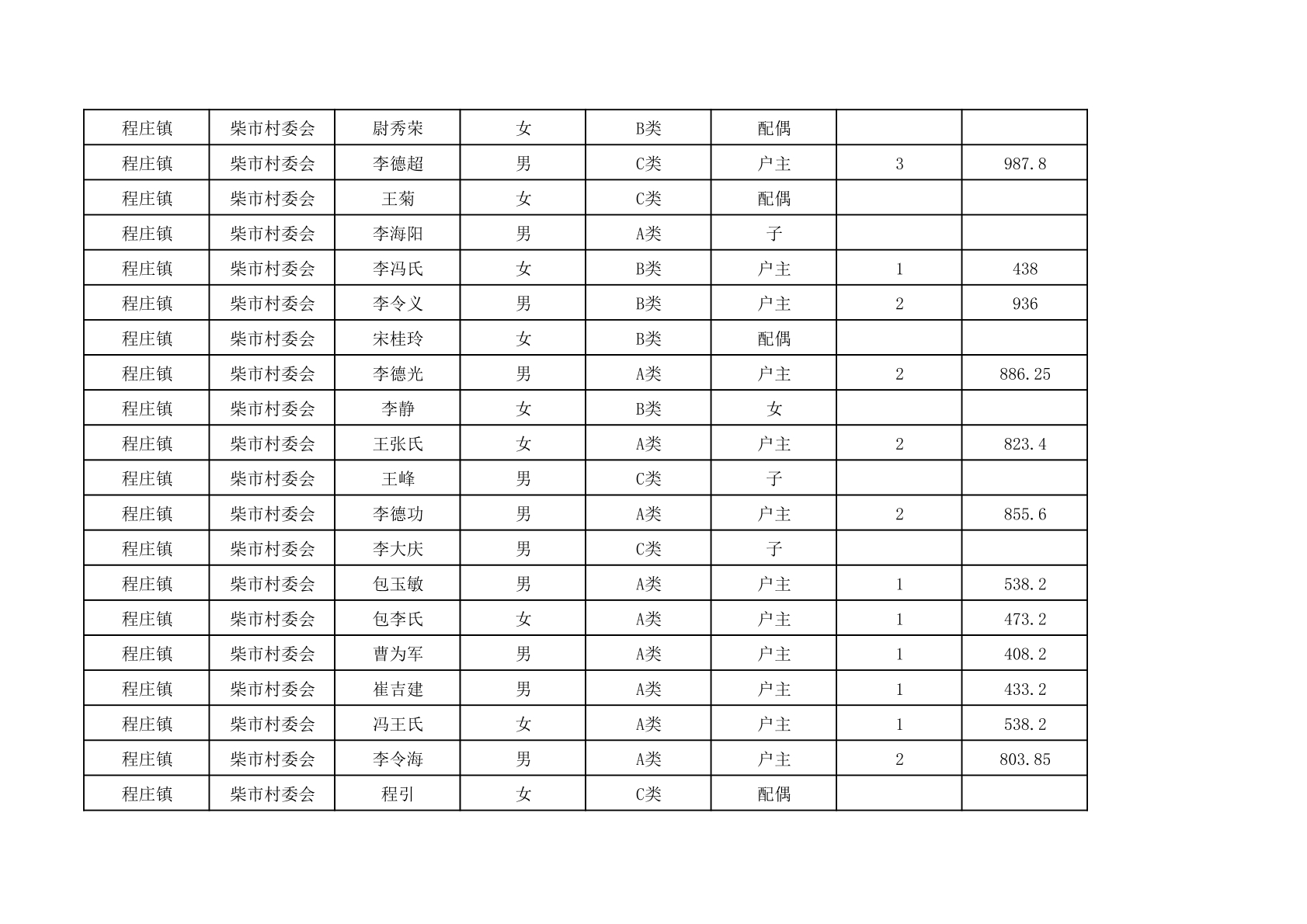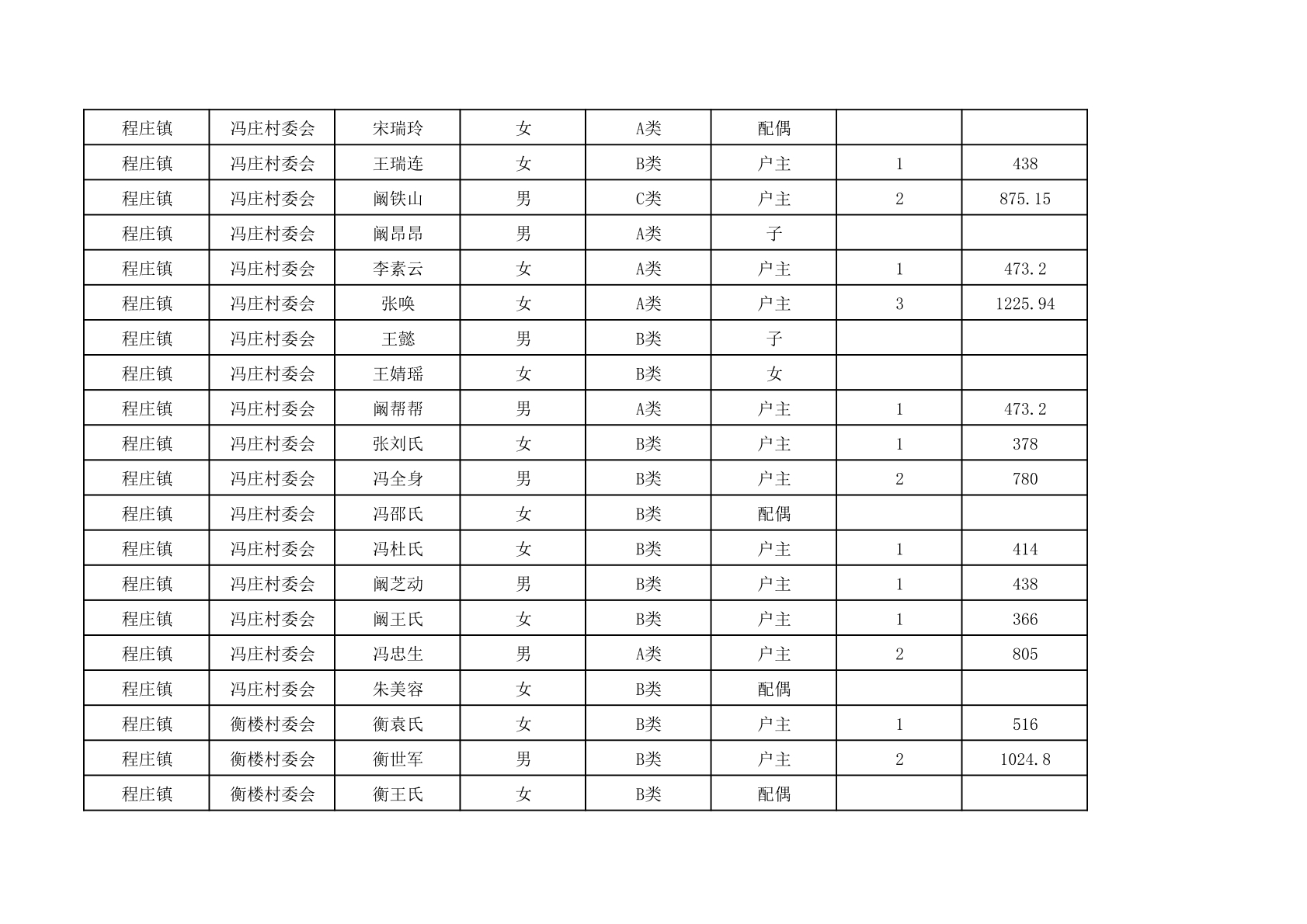 程庄镇2025年9月农保资金发放名册