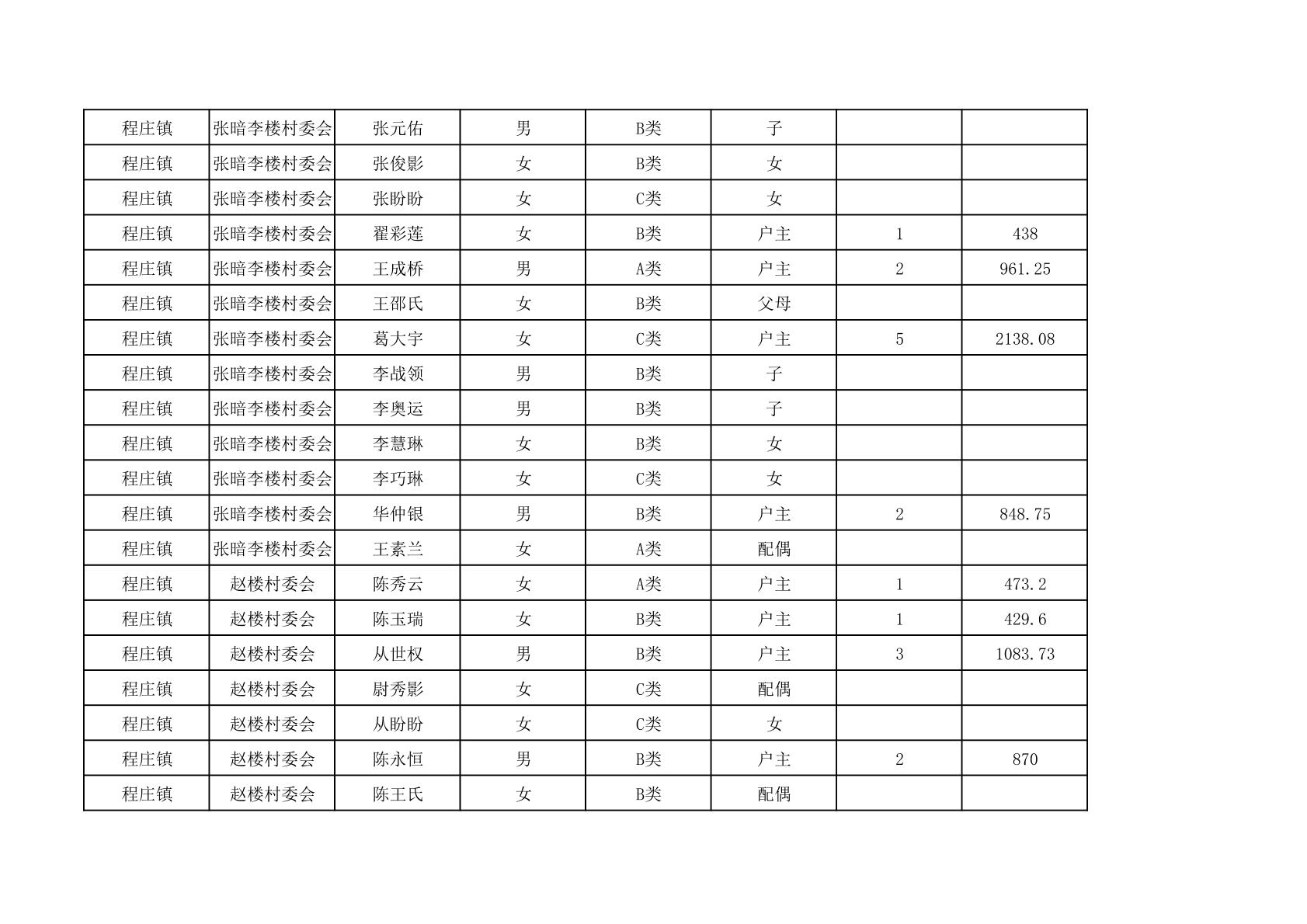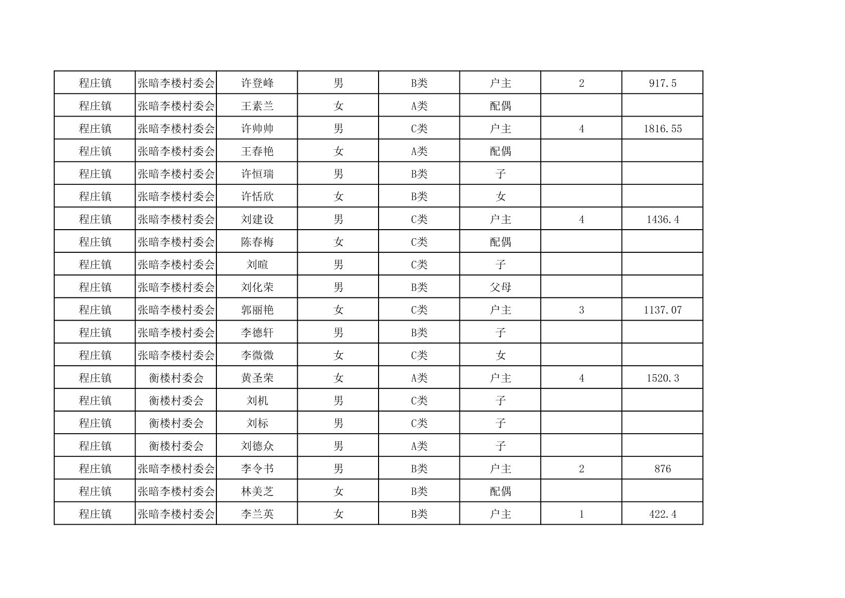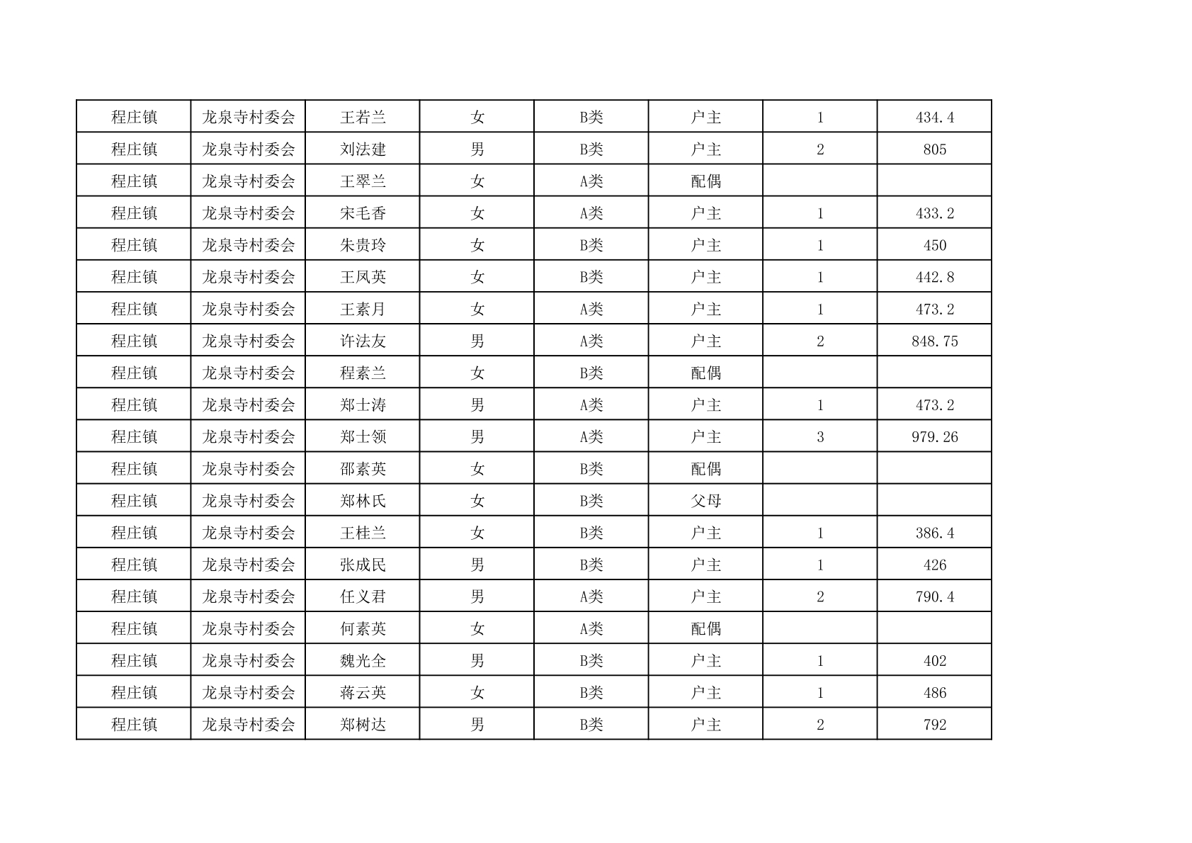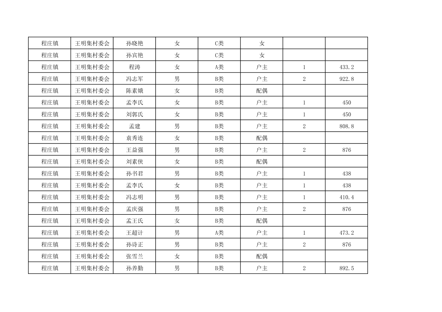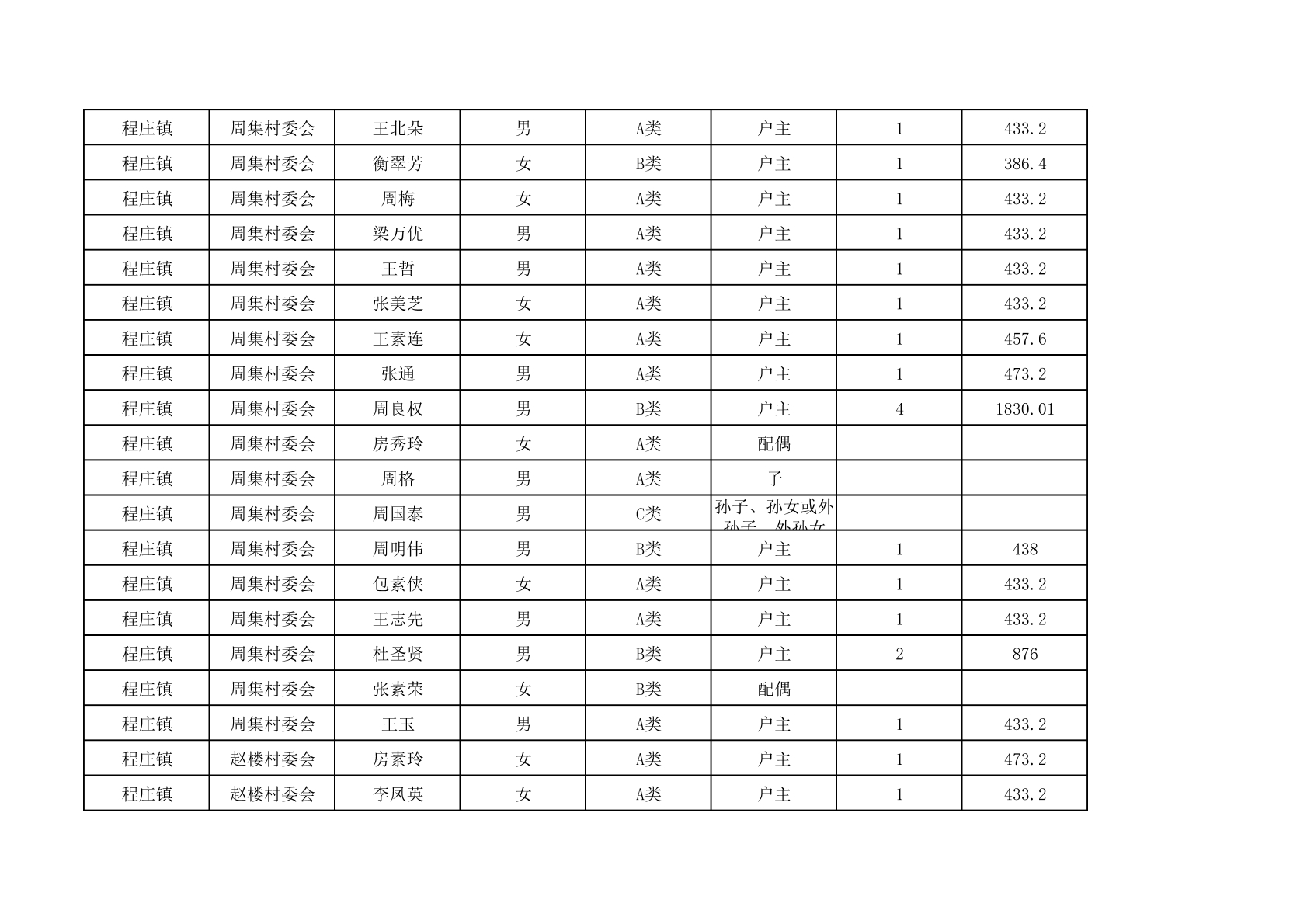 程庄镇2025年9月农保资金发放名册