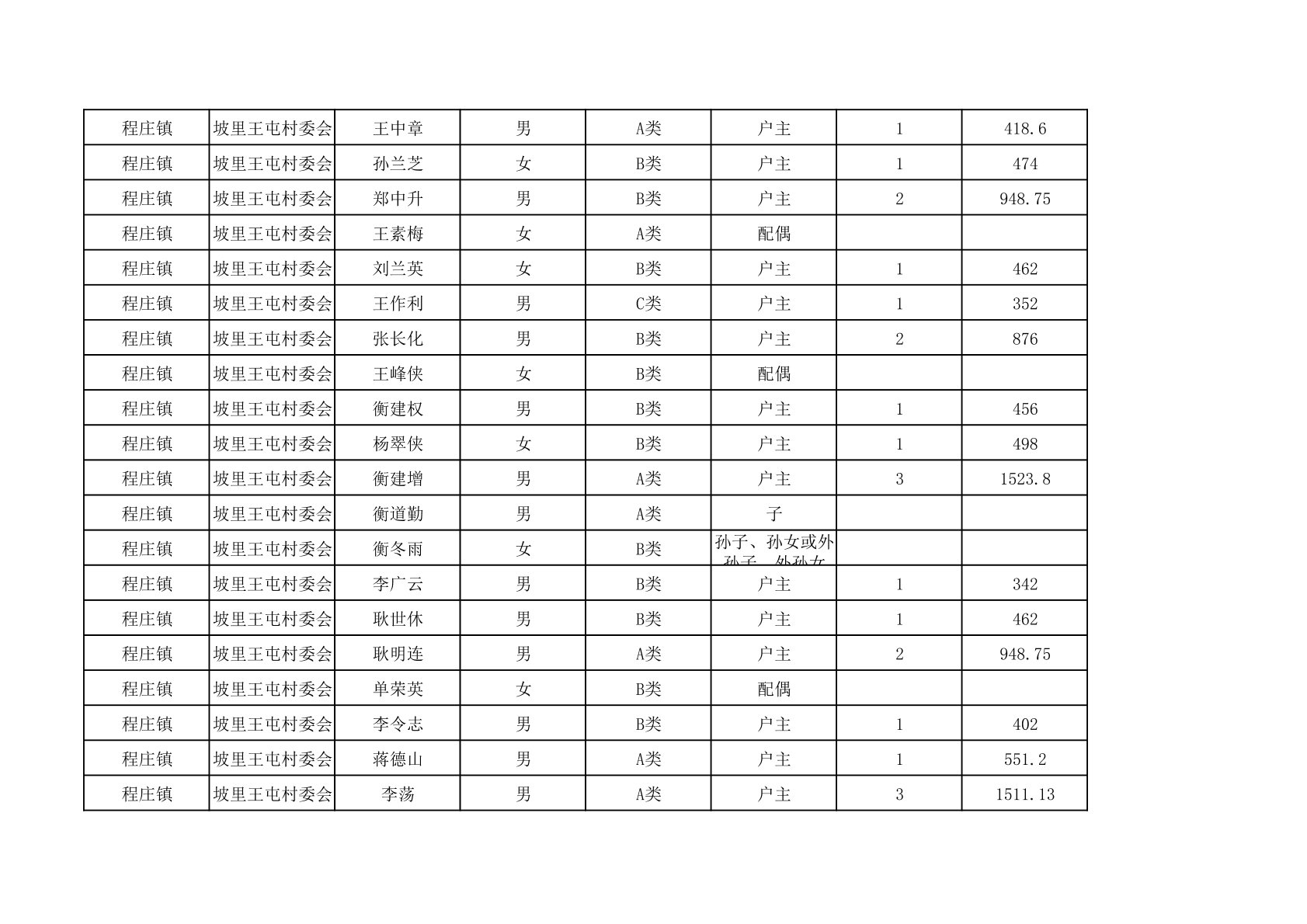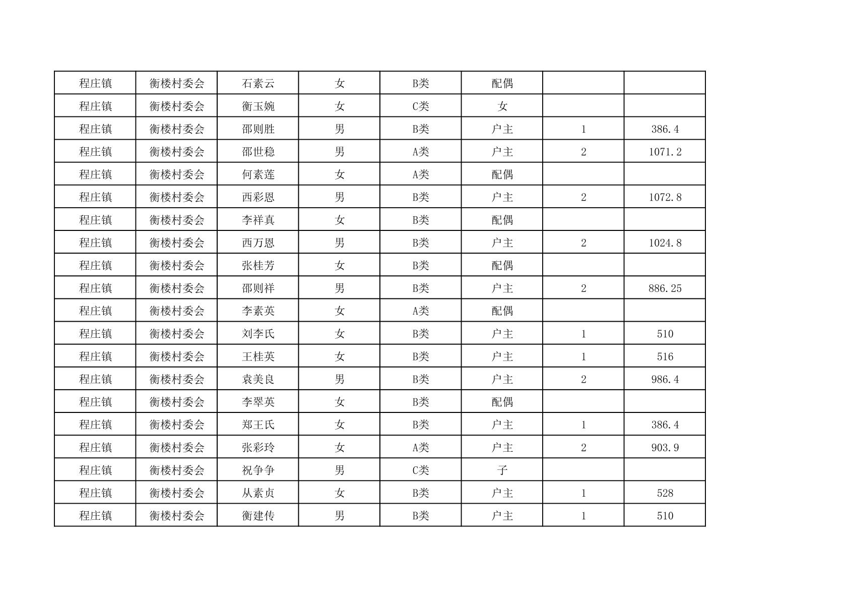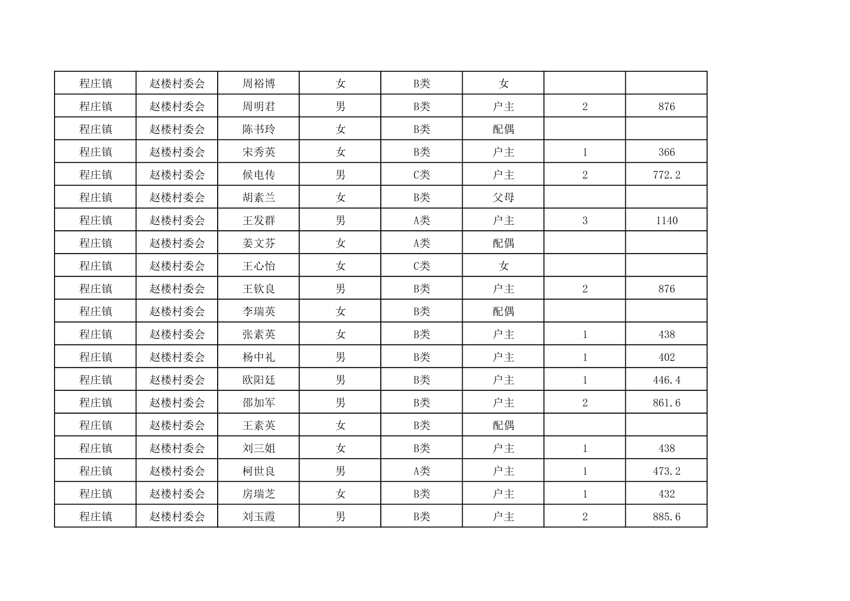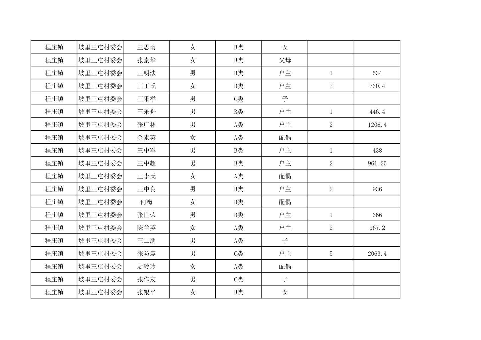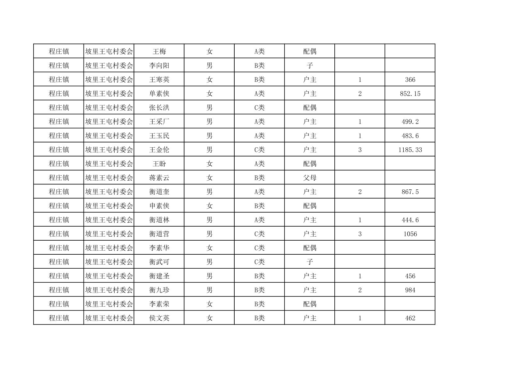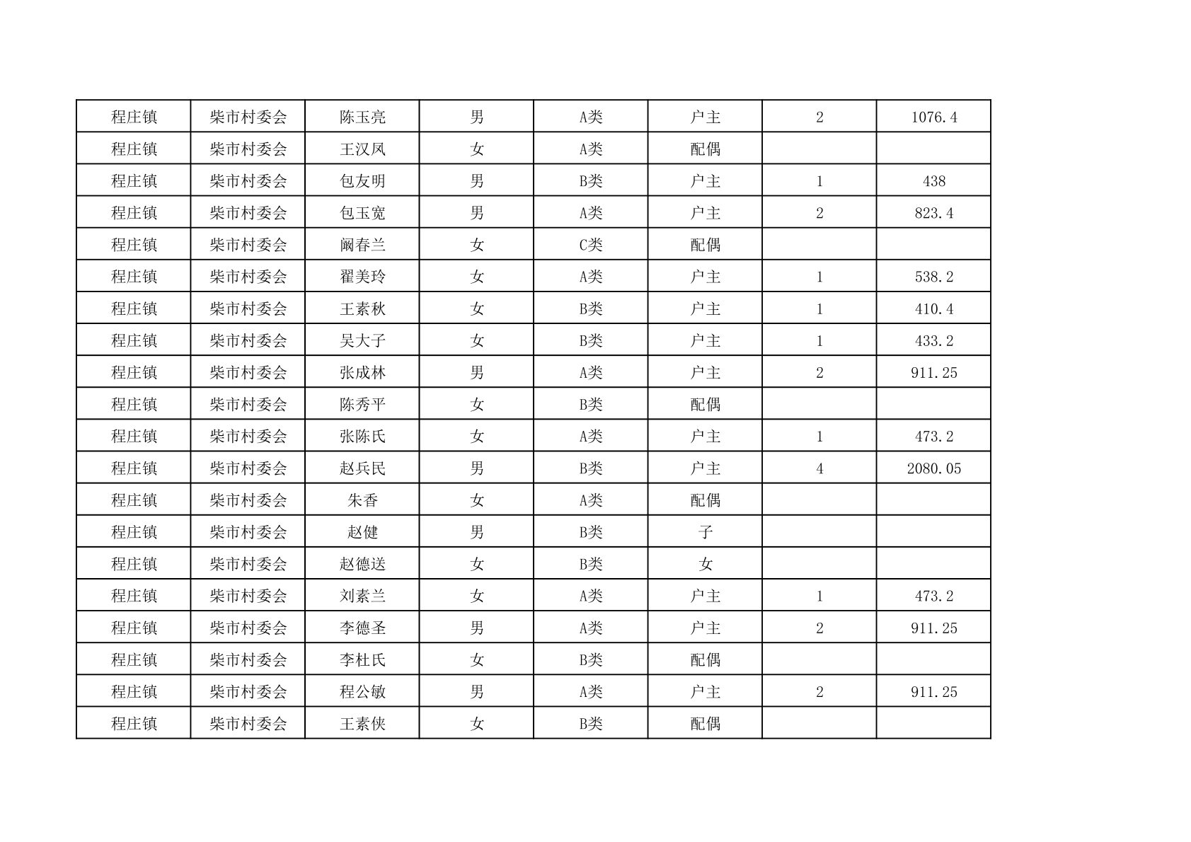 程庄镇2025年9月农保资金发放名册