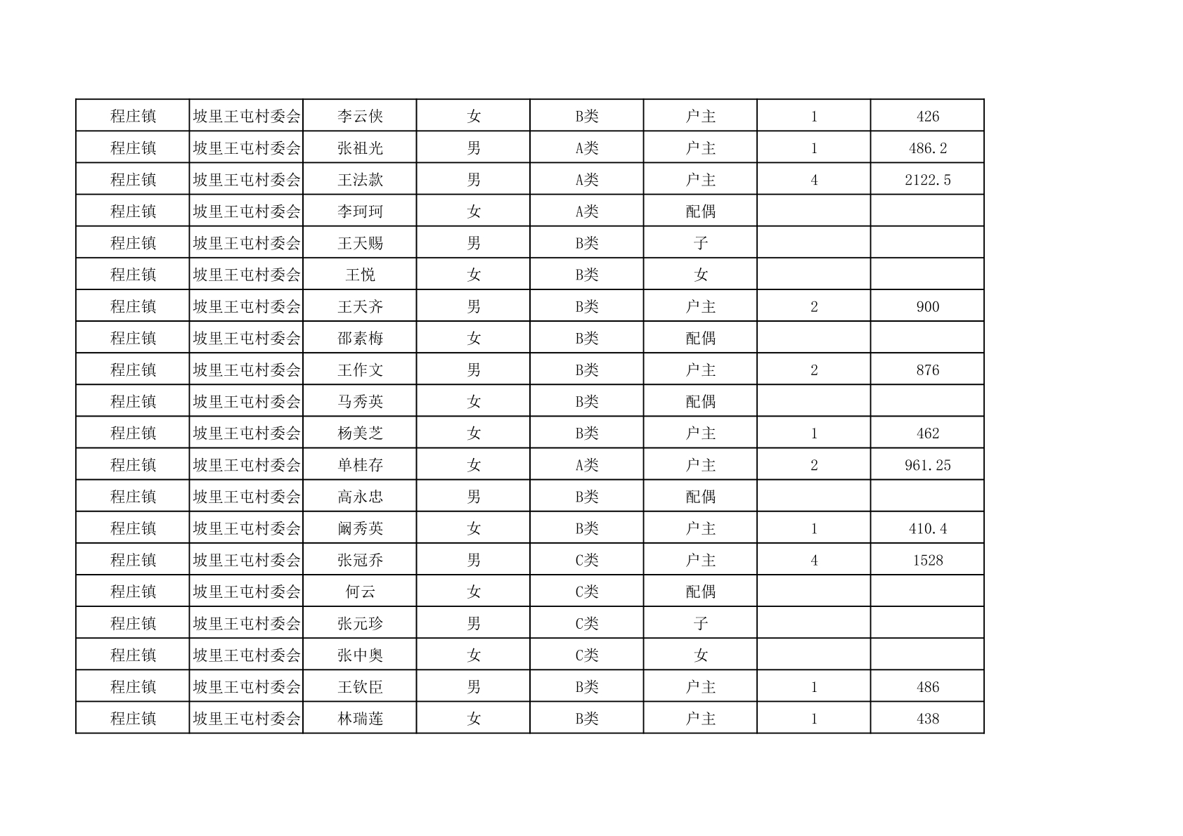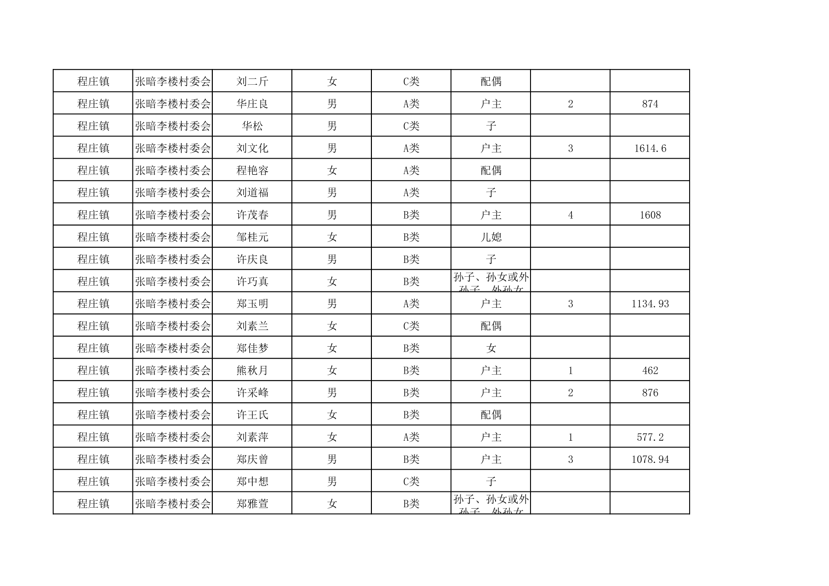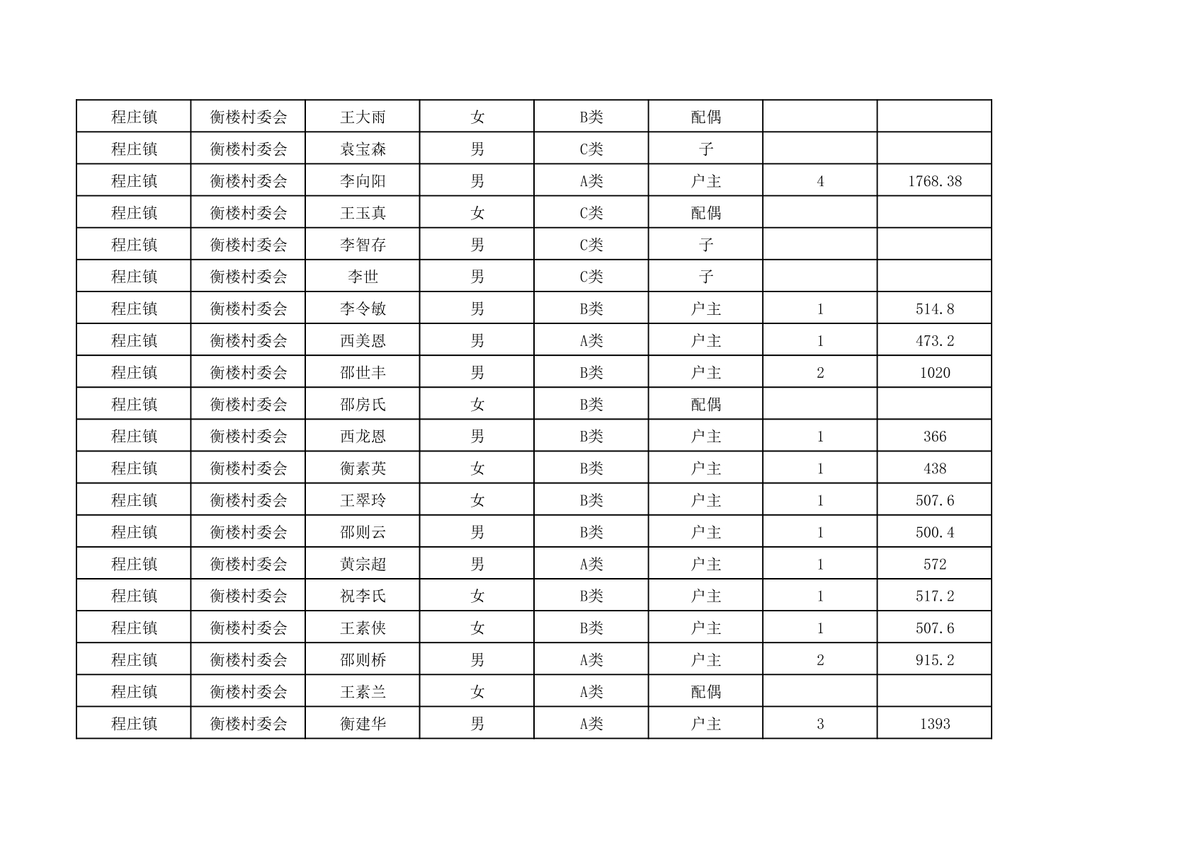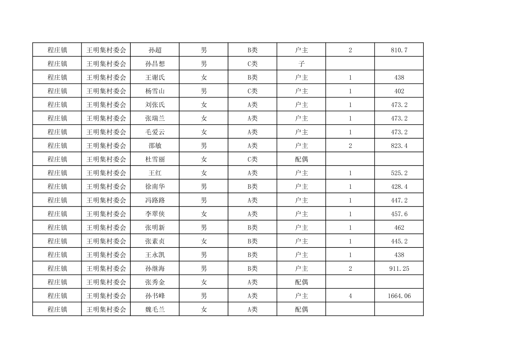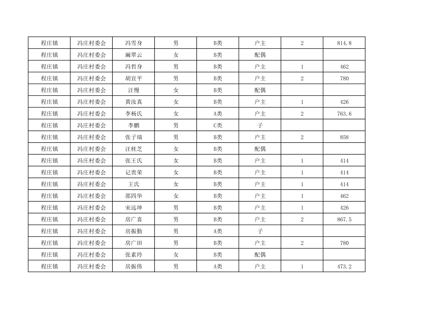 程庄镇2025年9月农保资金发放名册