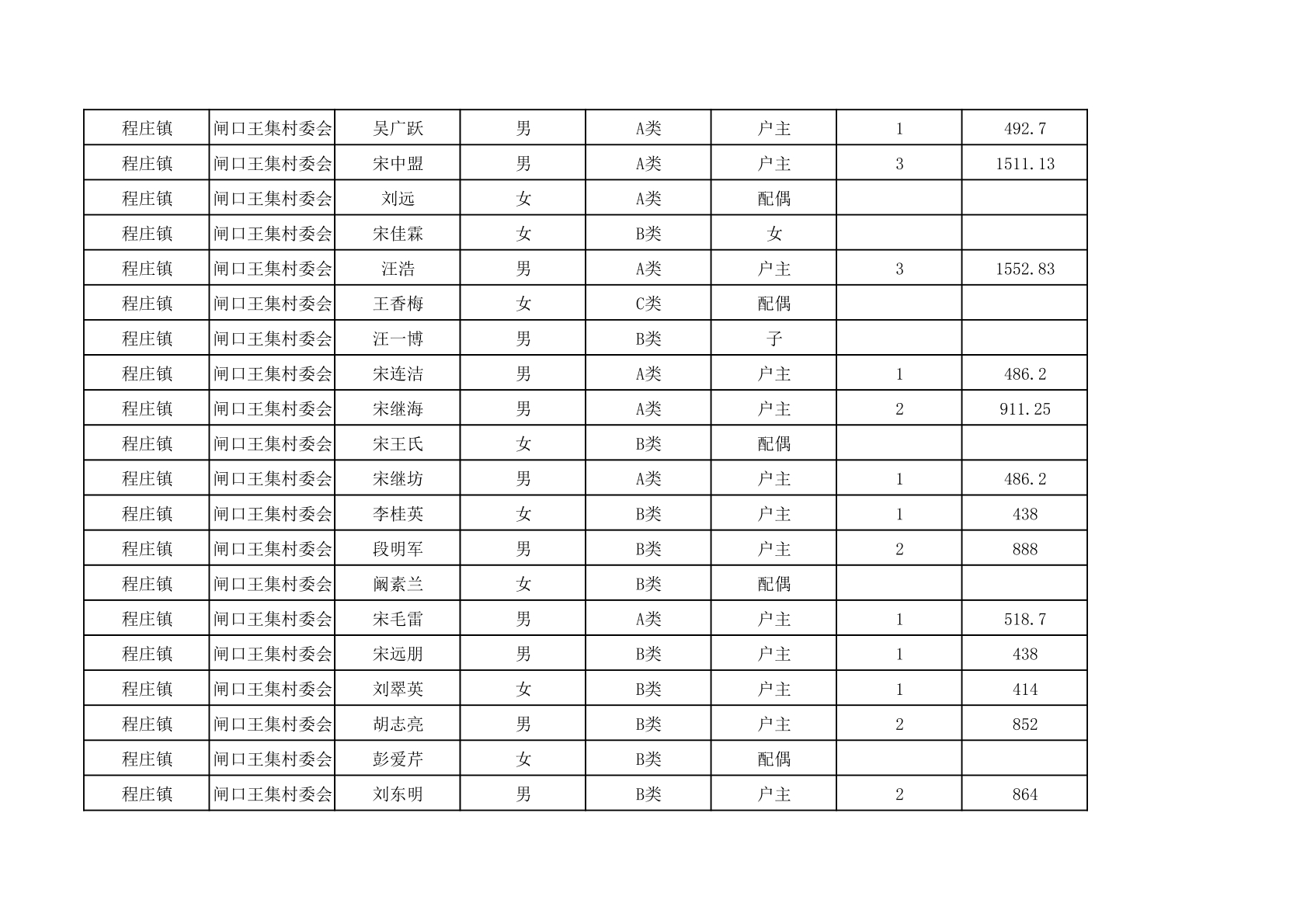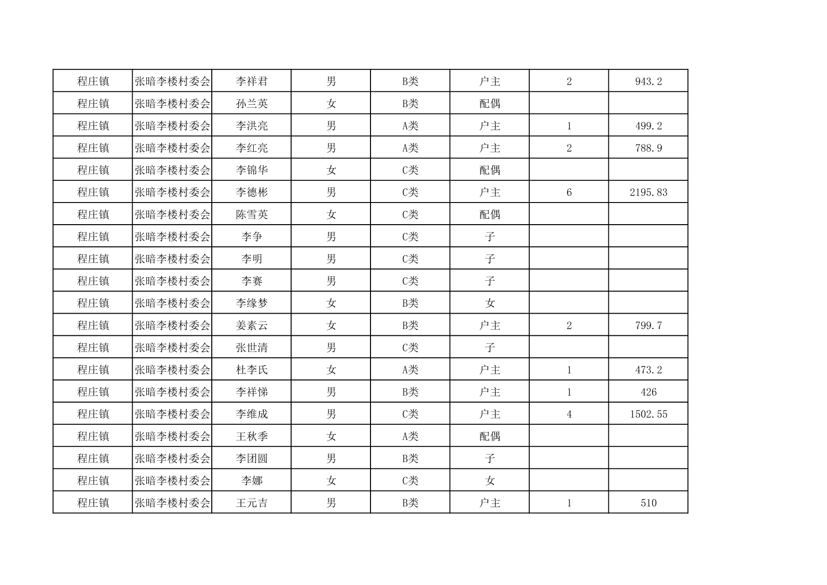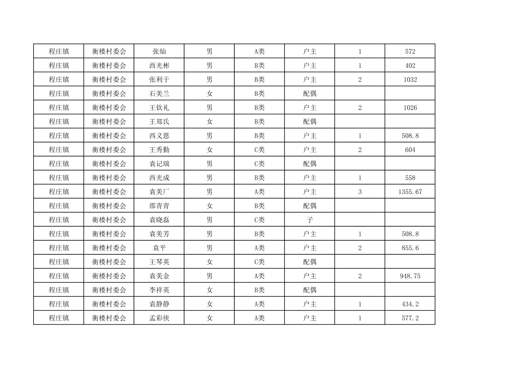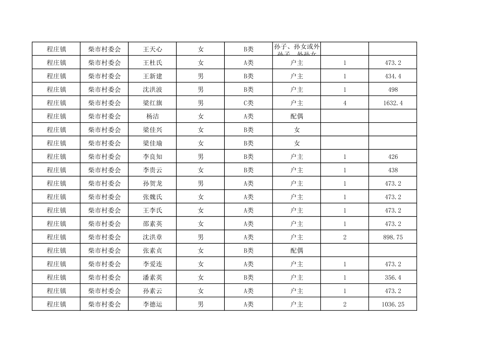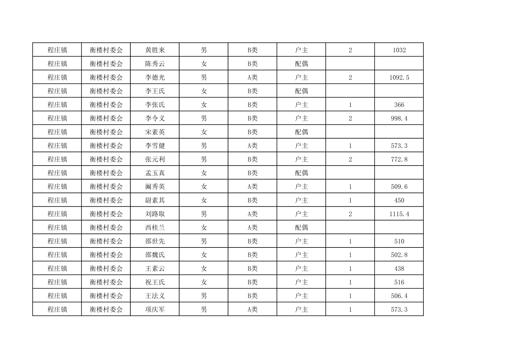 程庄镇2025年9月农保资金发放名册