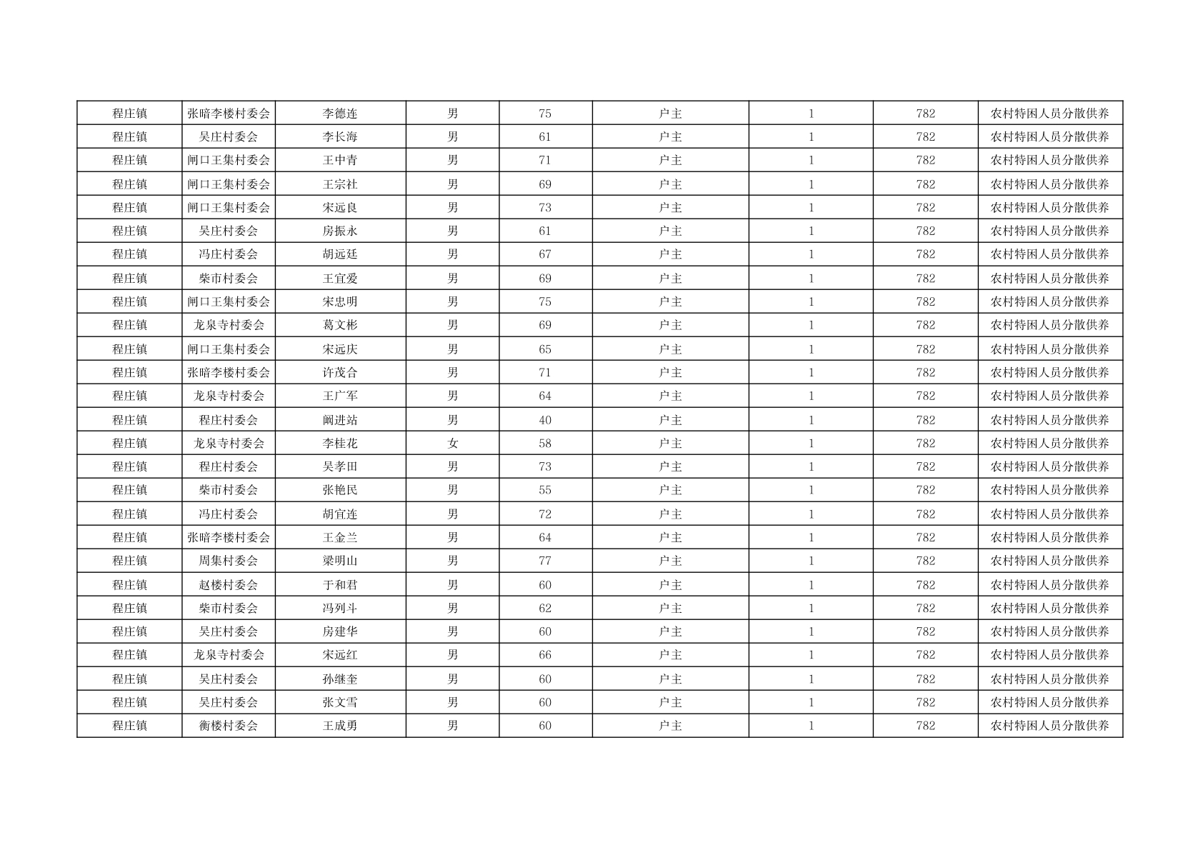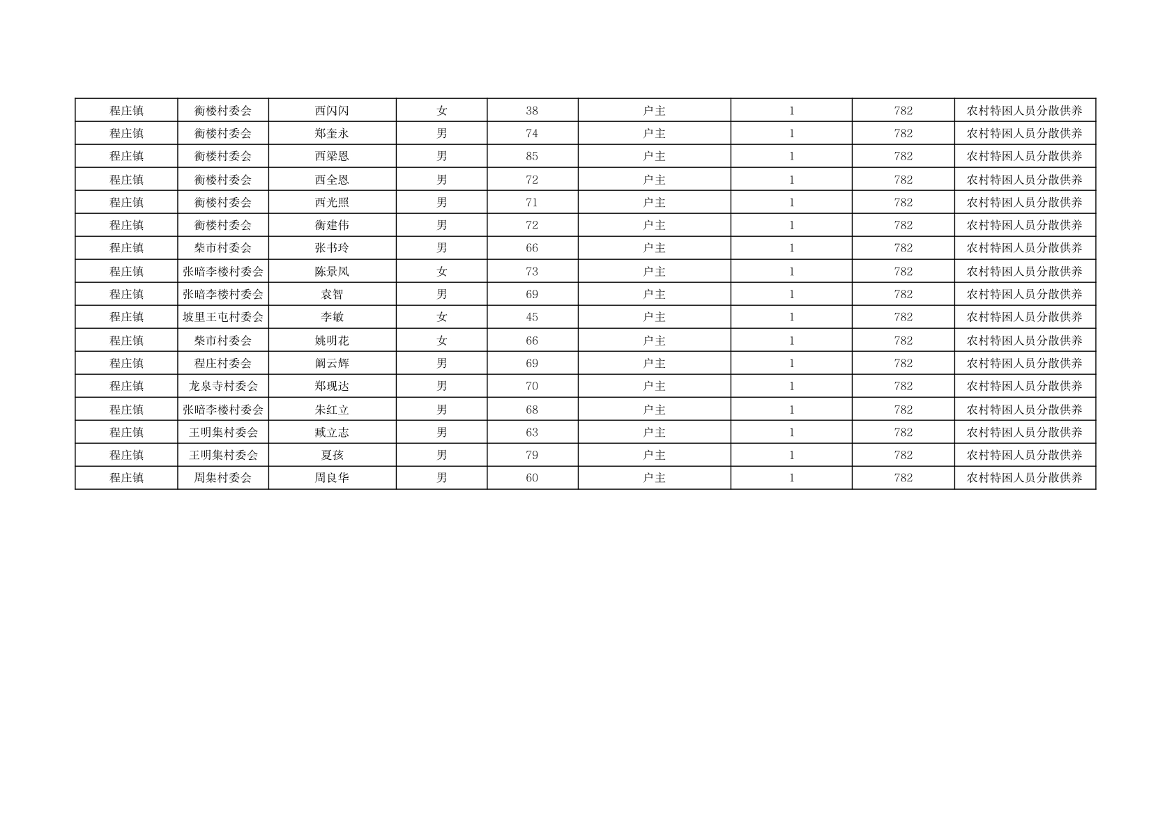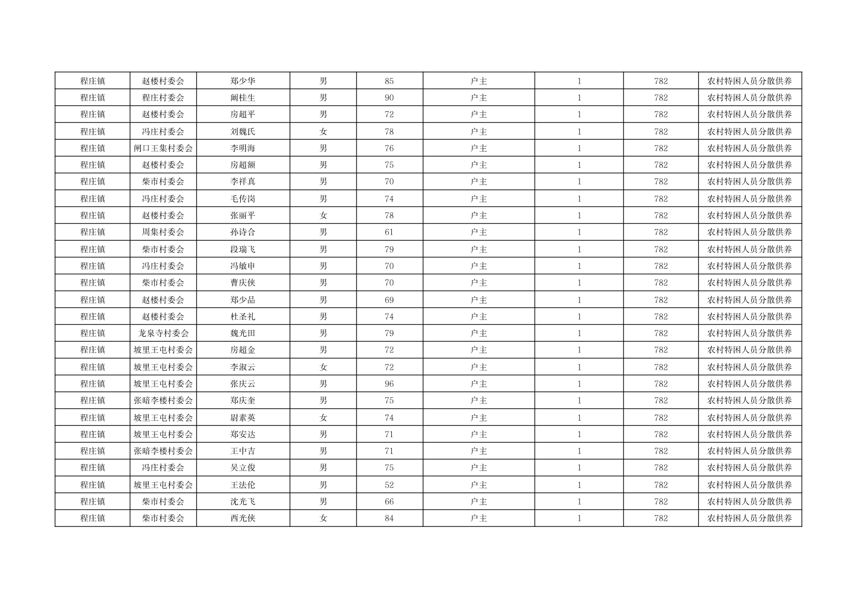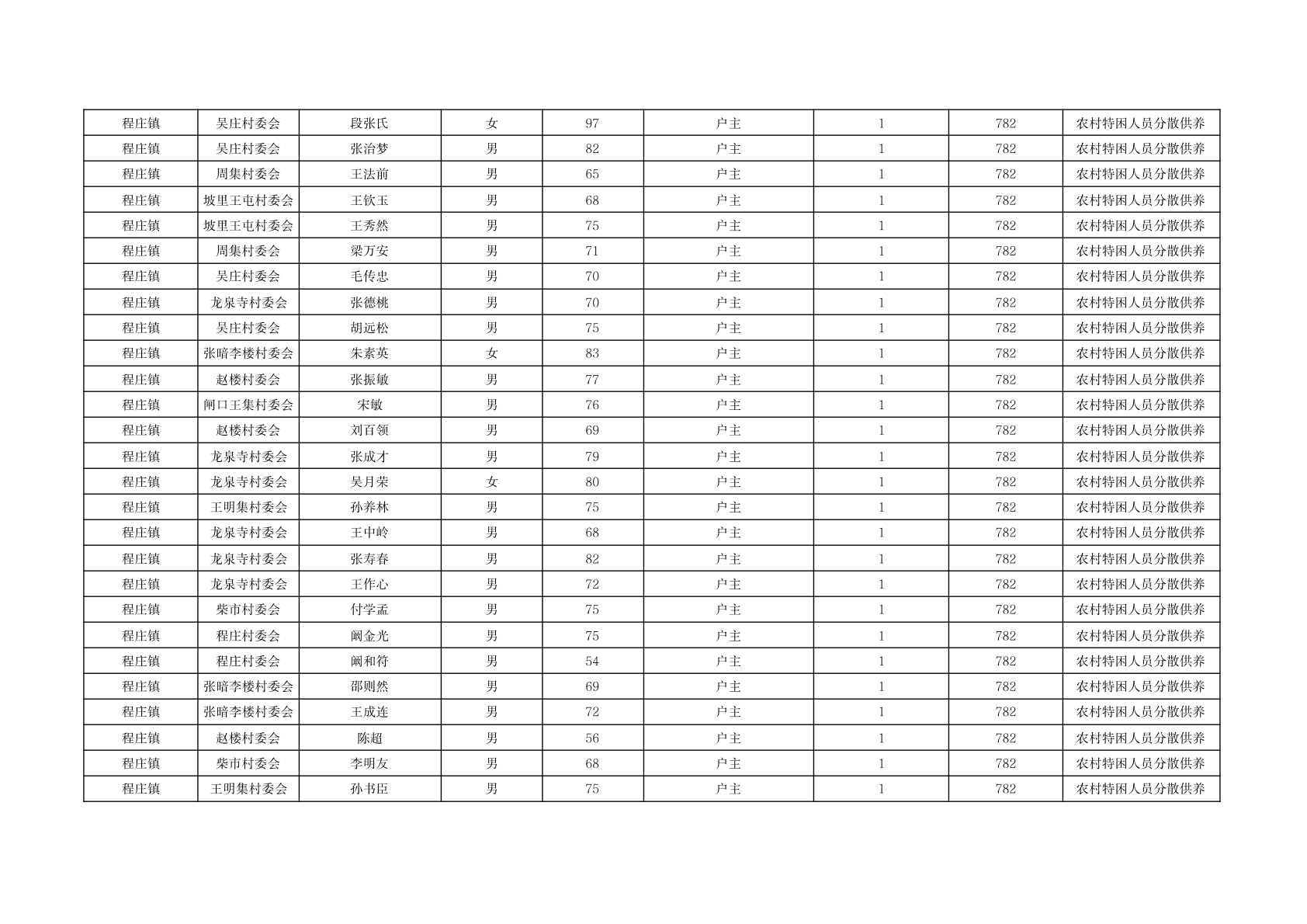程庄镇2025年11月分散供养特困人员资金发放花名册