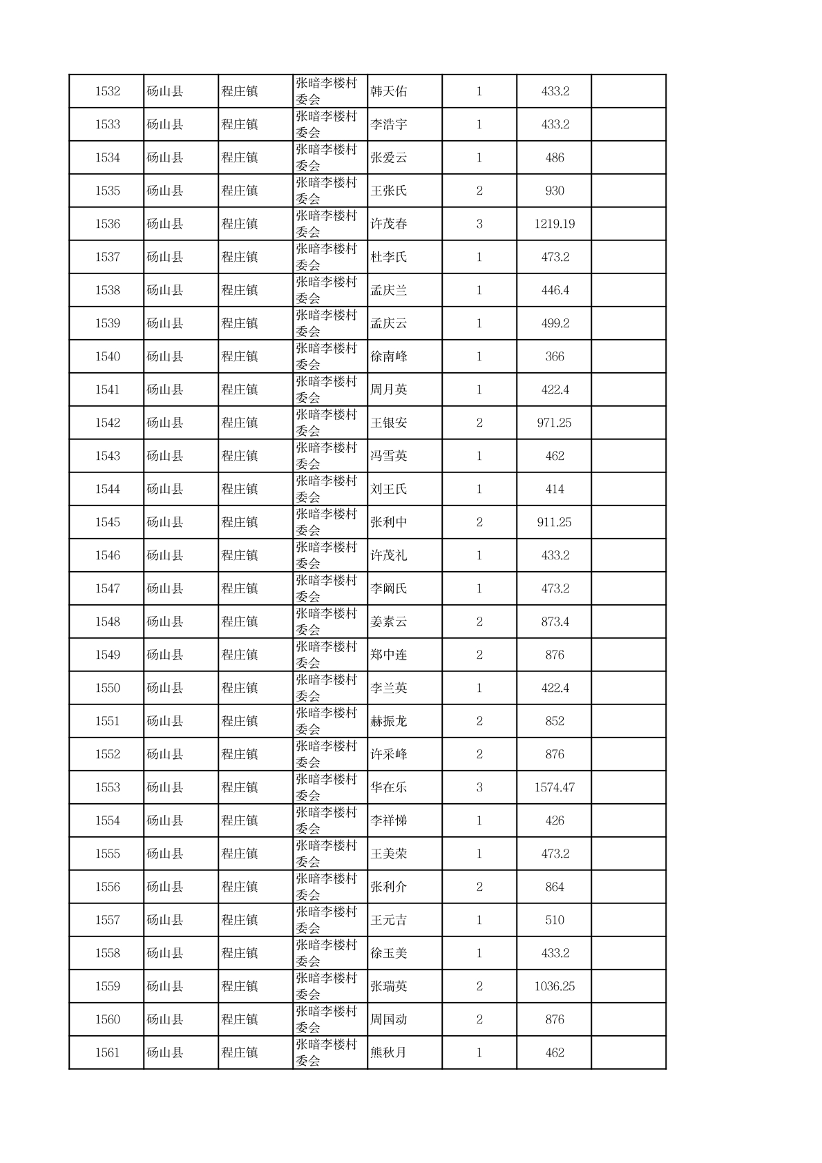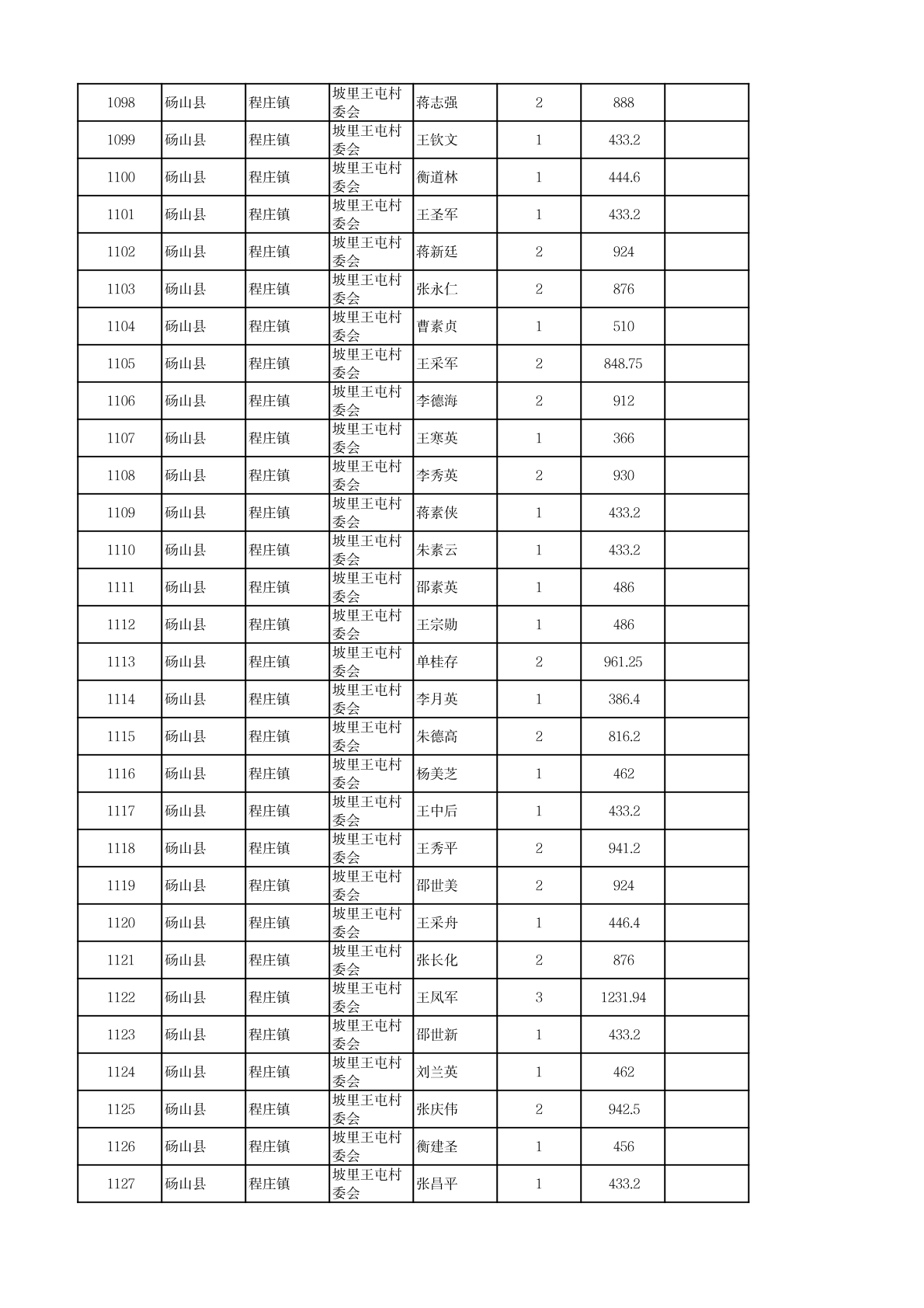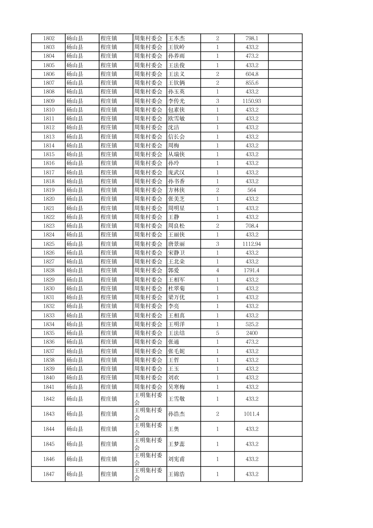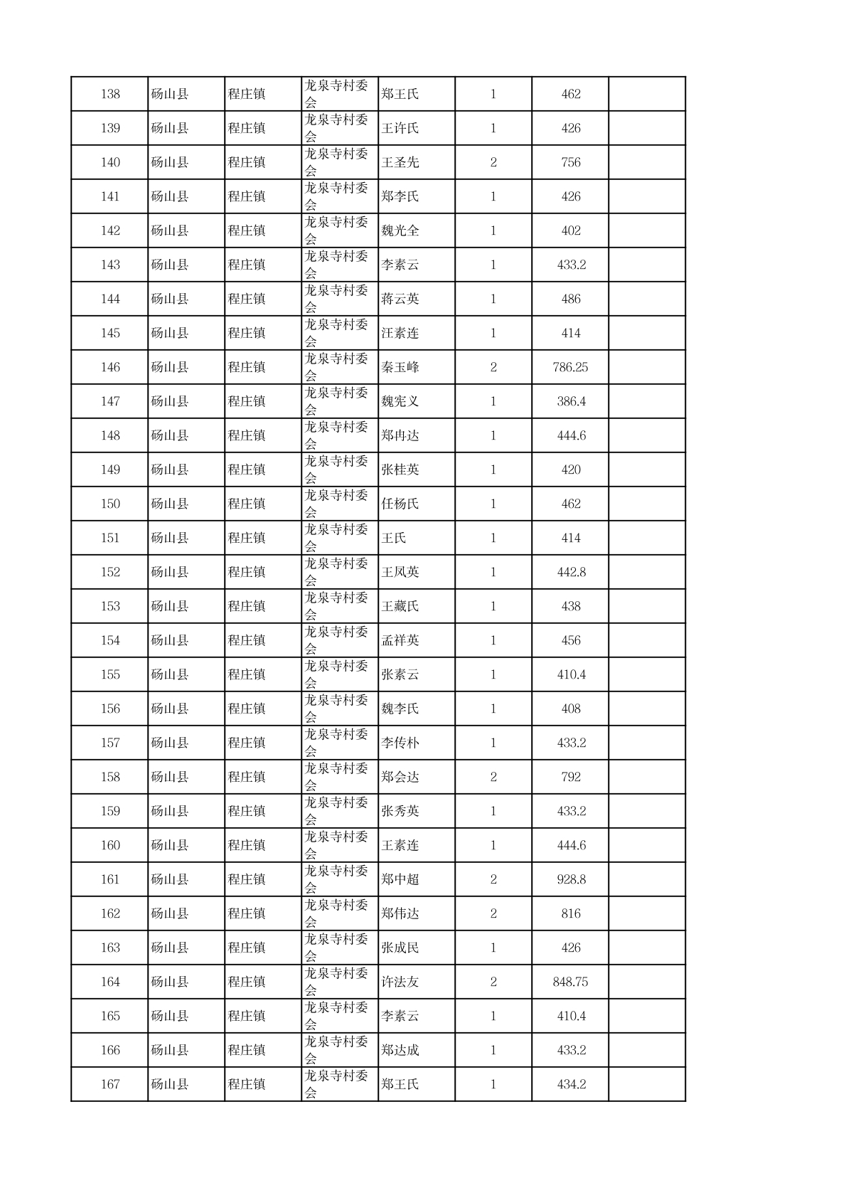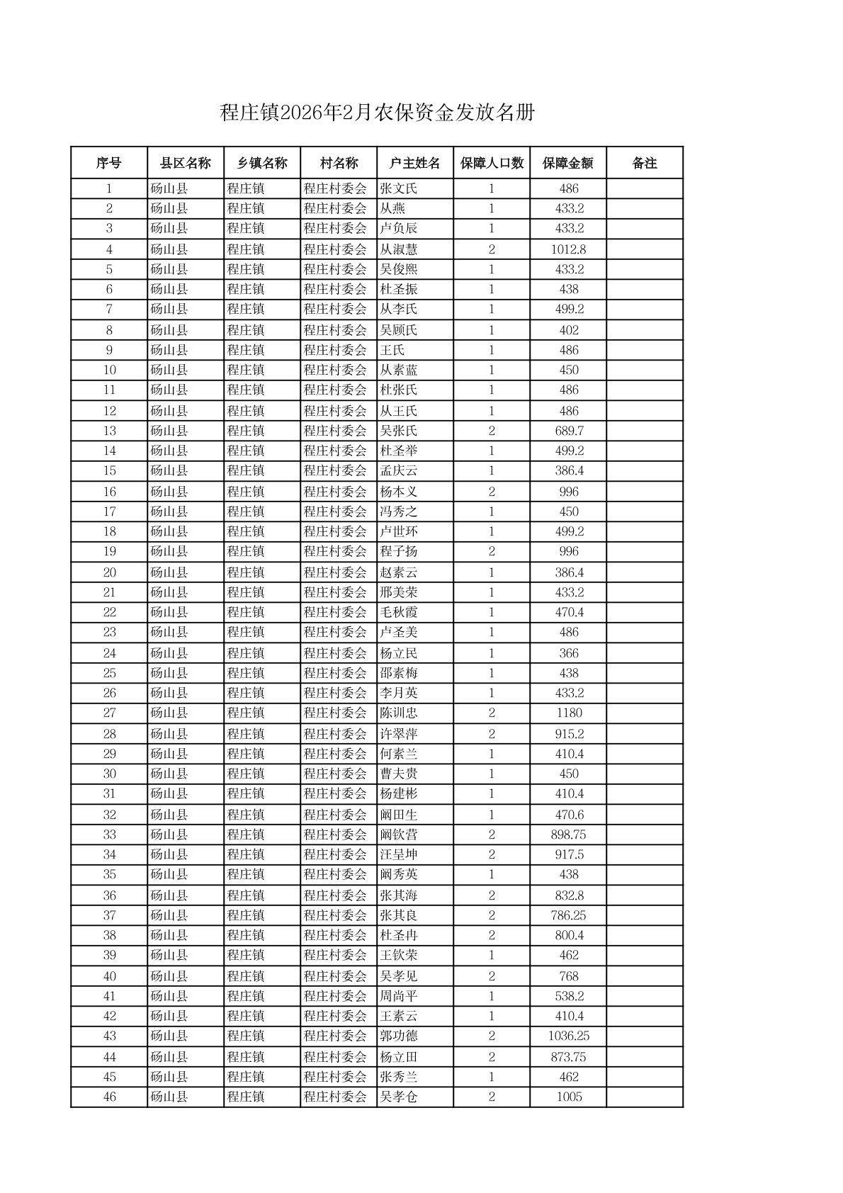 程庄镇2026年2月农保资金发放名册