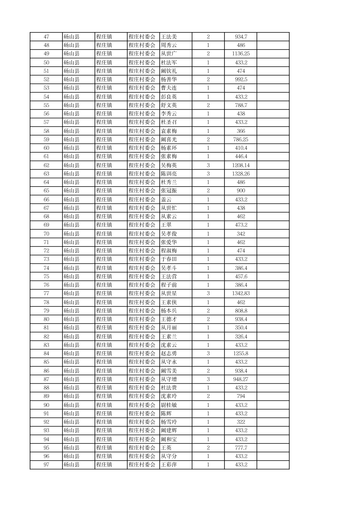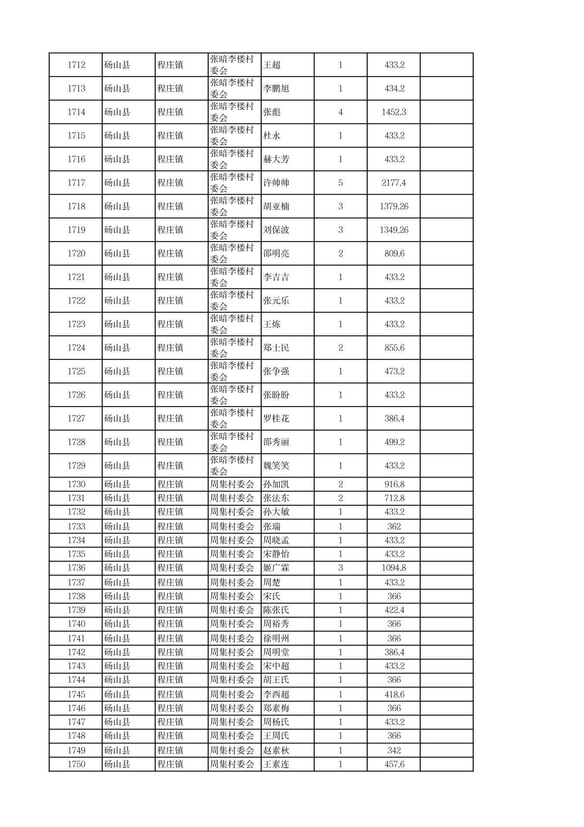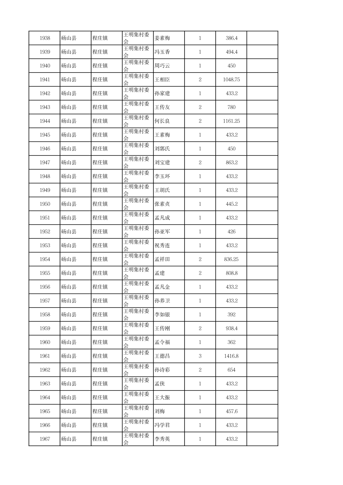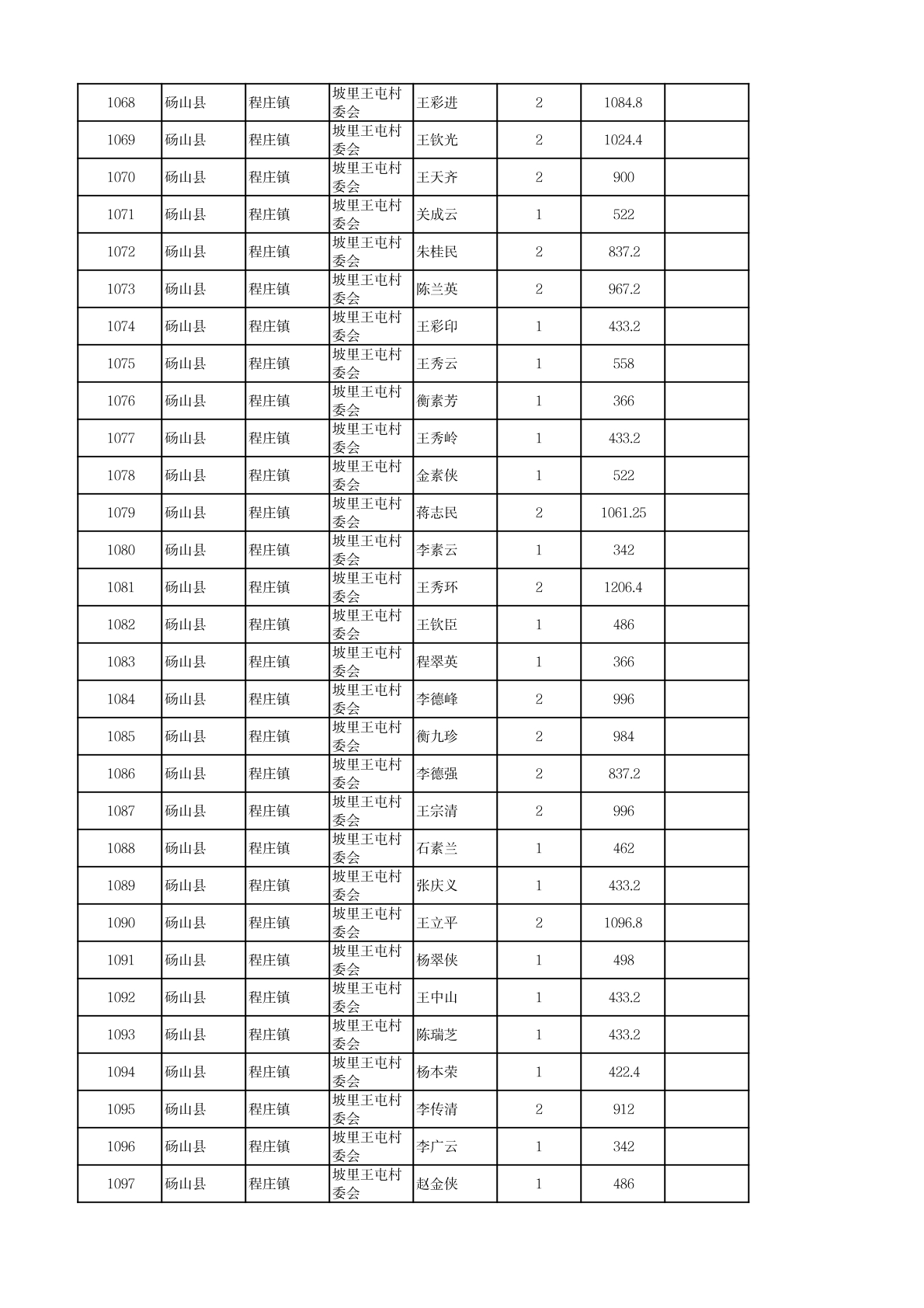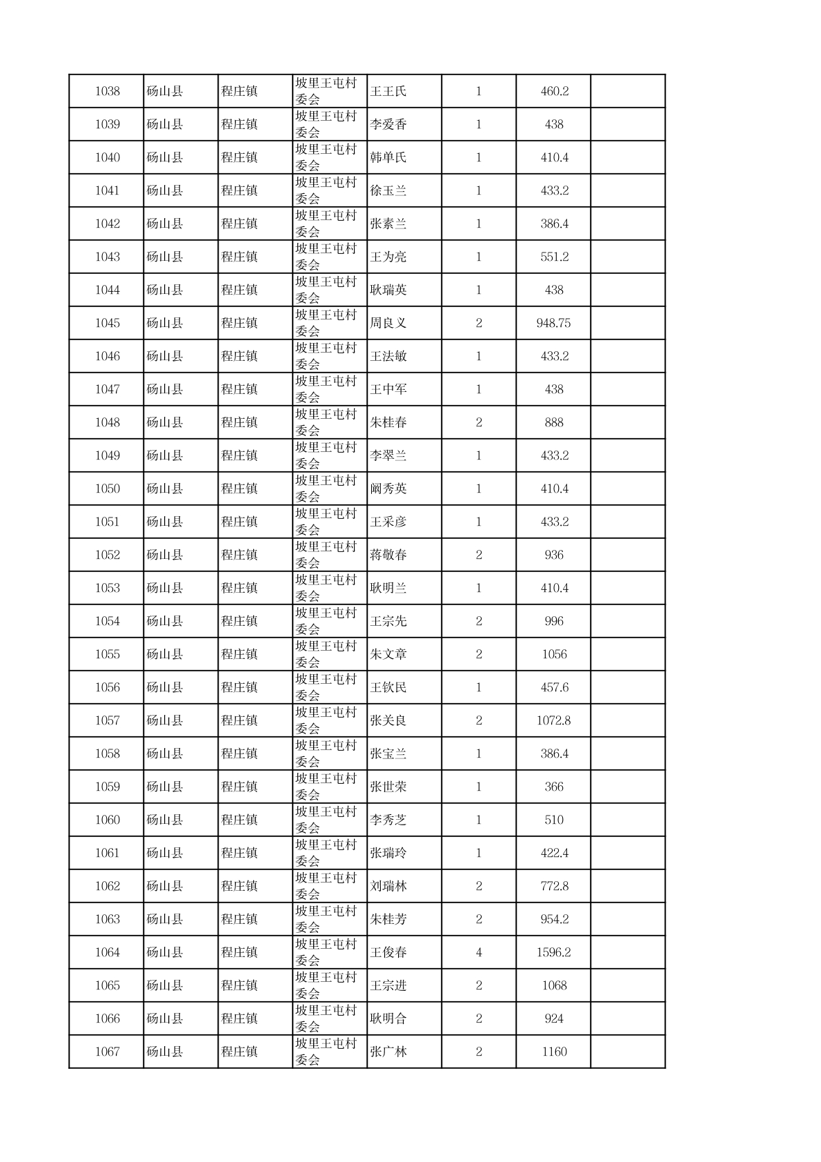 程庄镇2026年2月农保资金发放名册