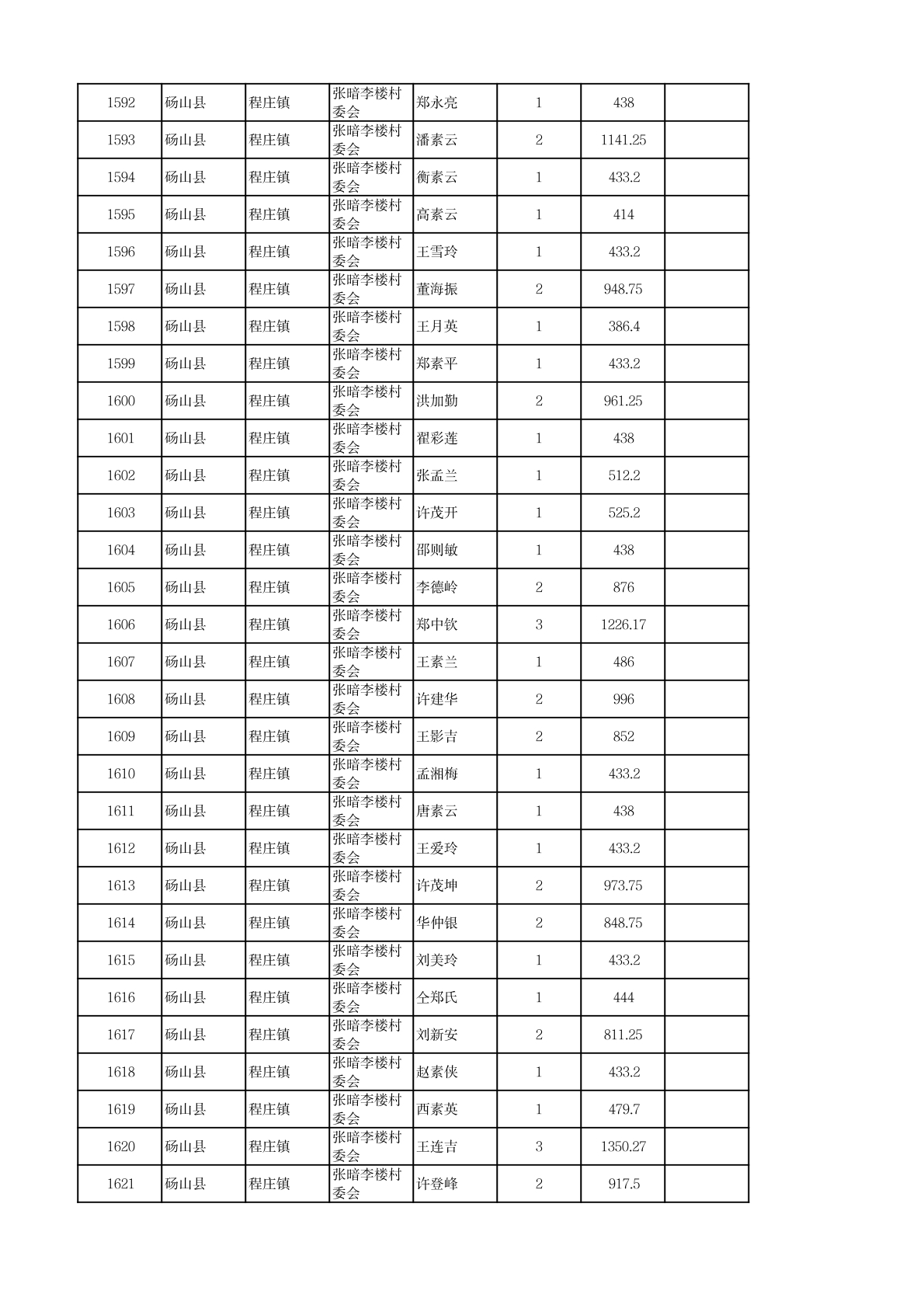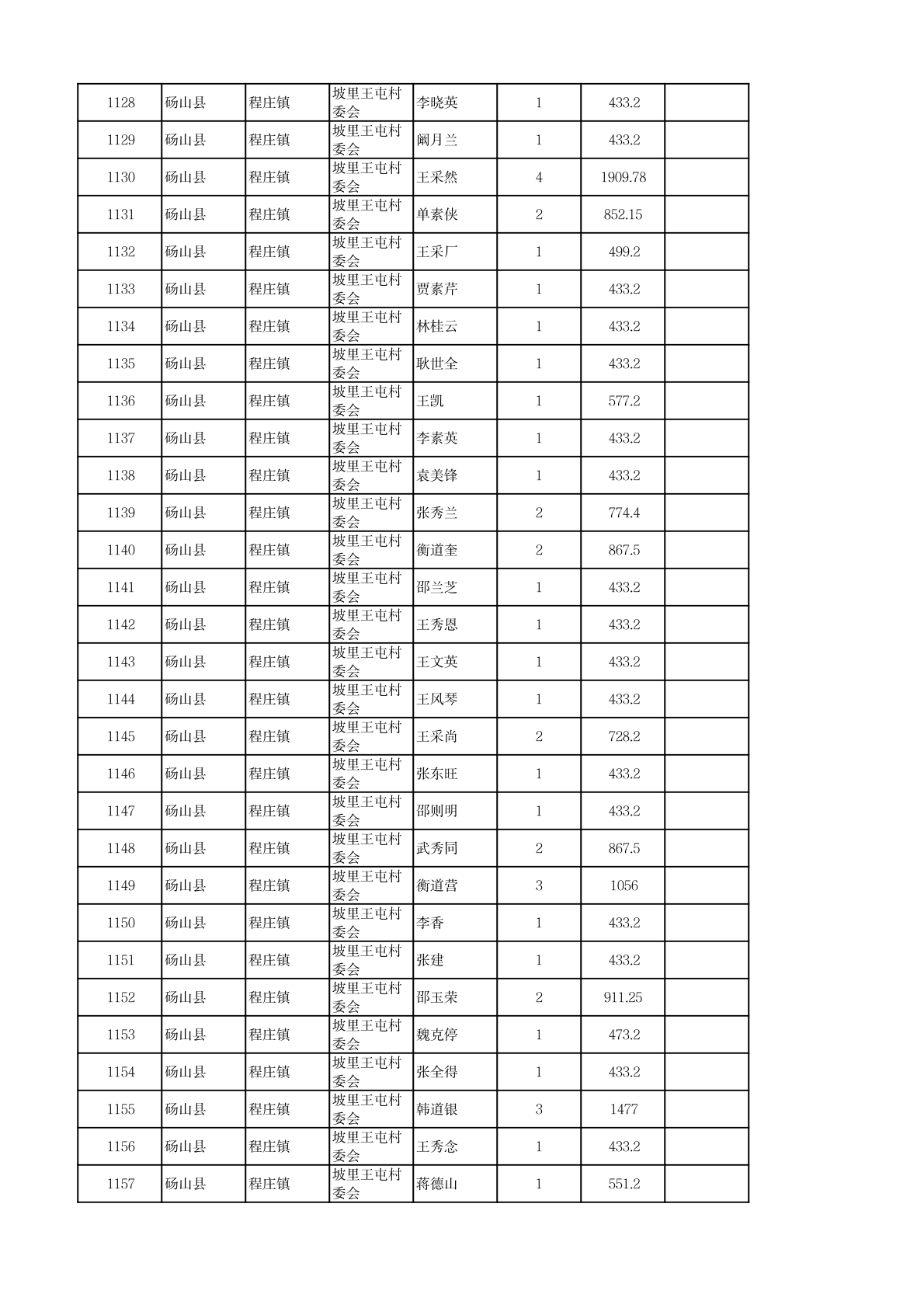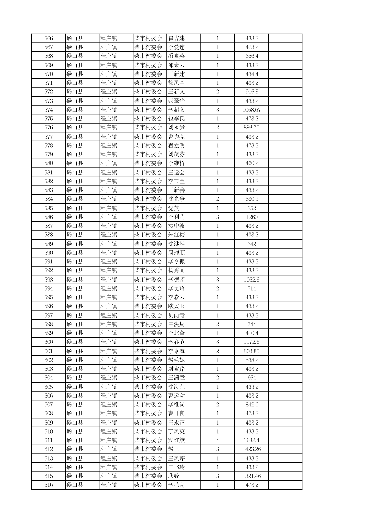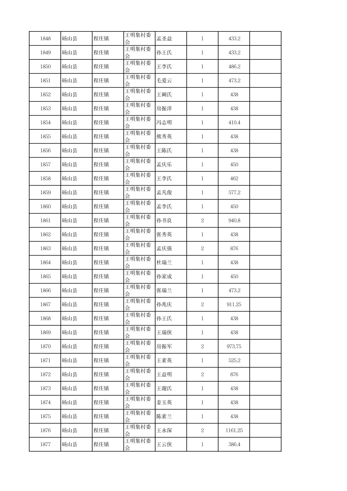 程庄镇2026年2月农保资金发放名册