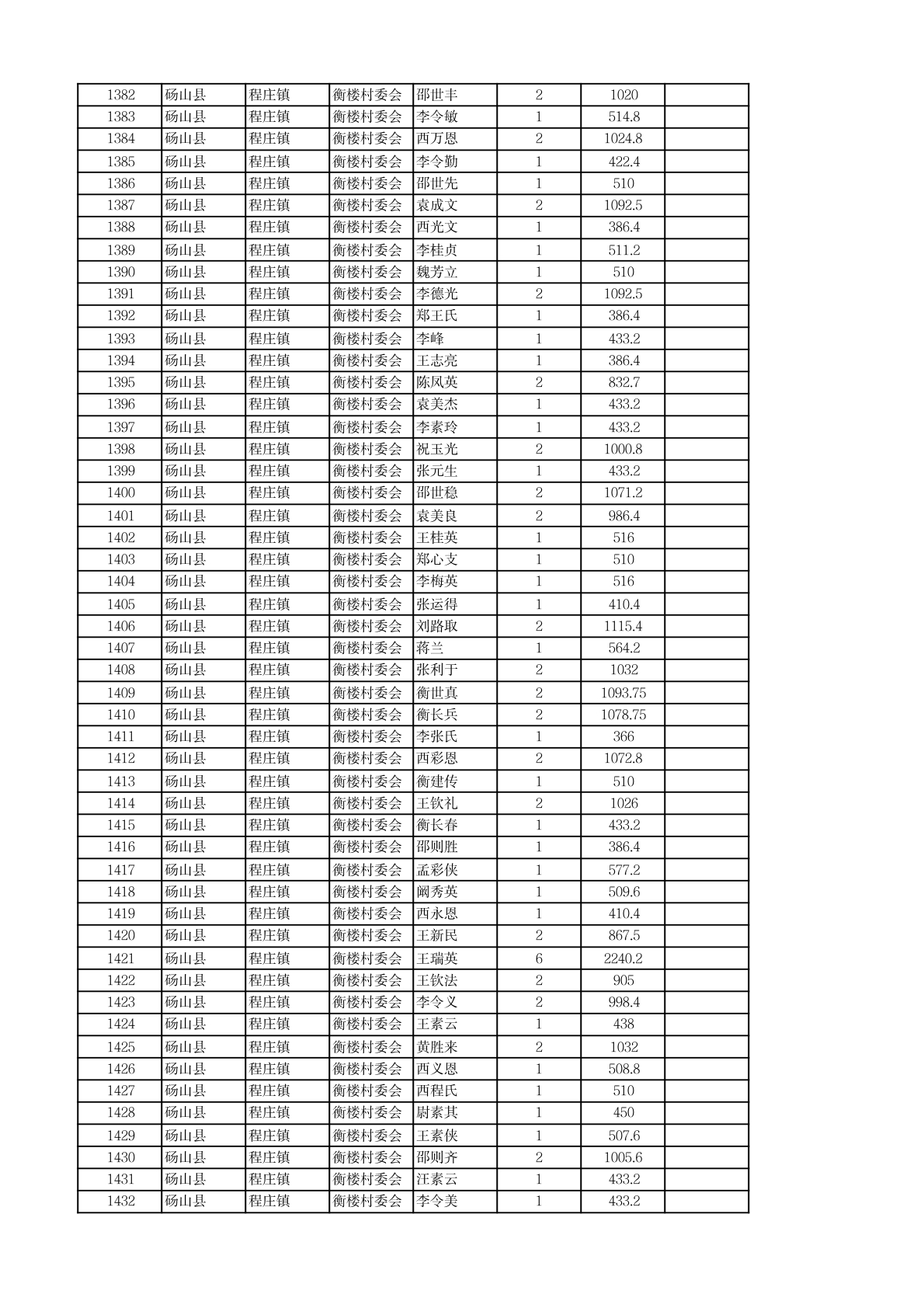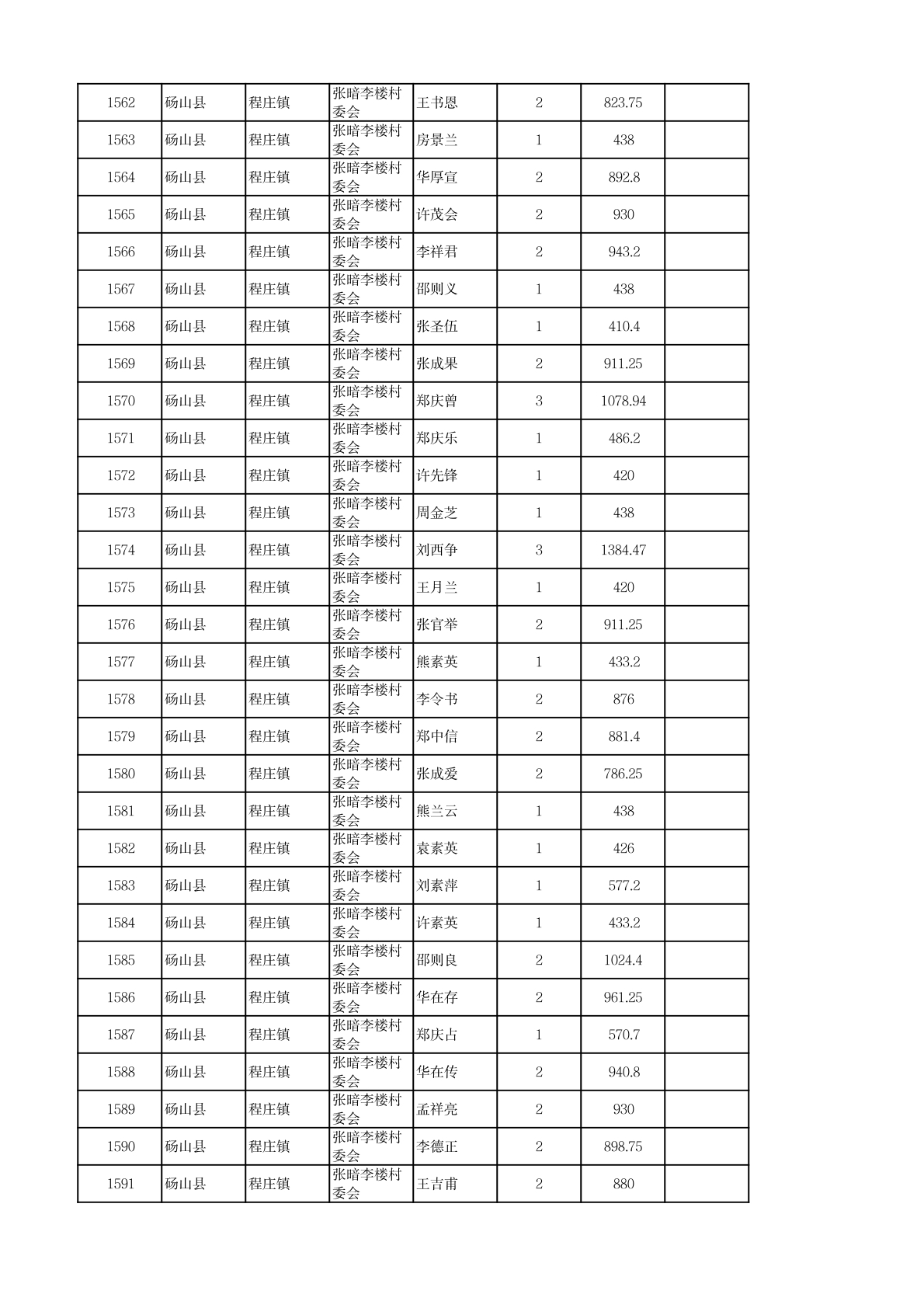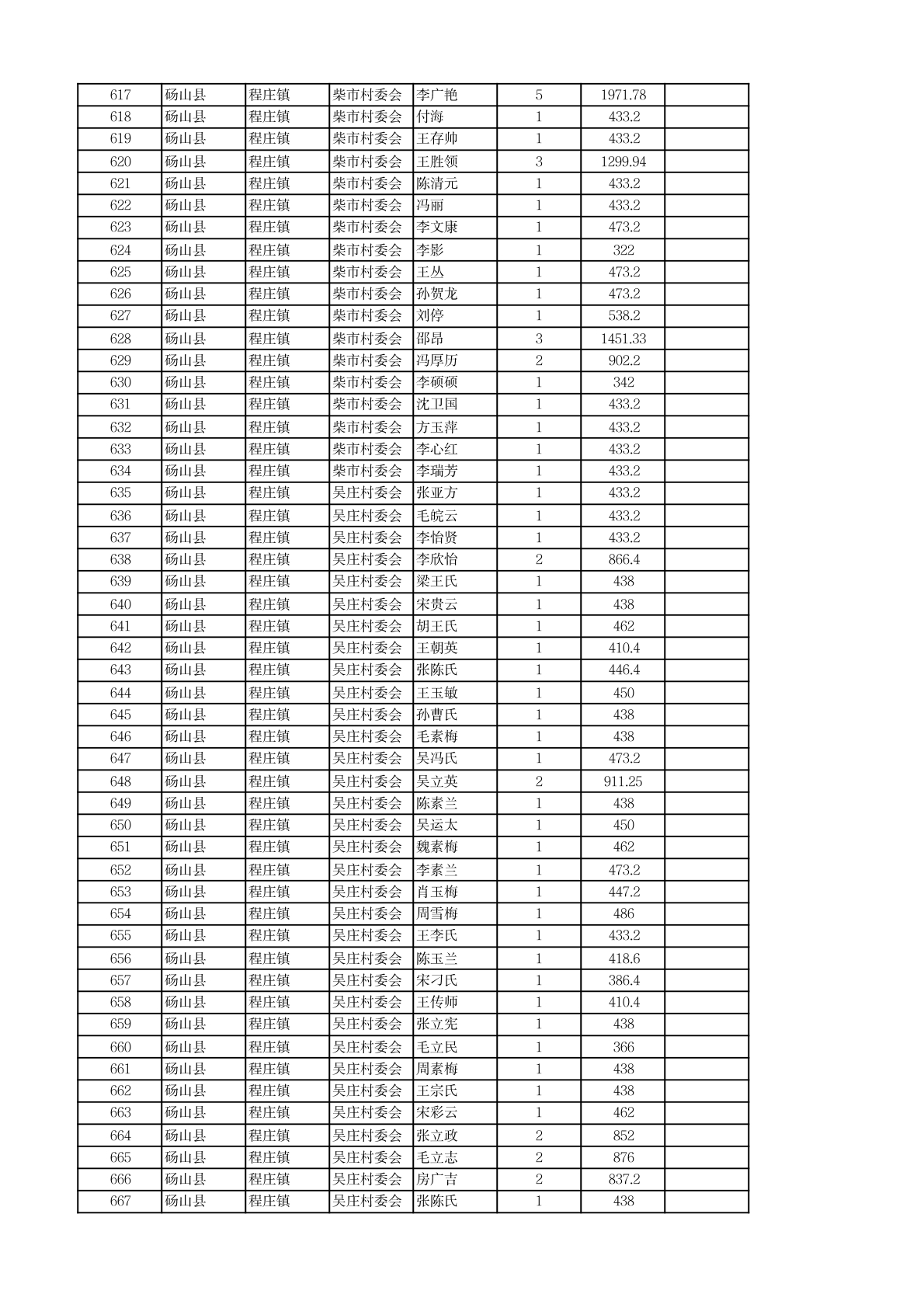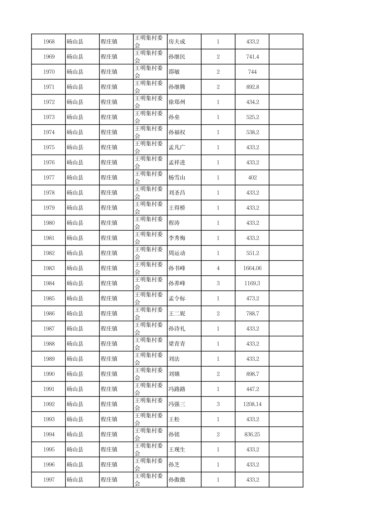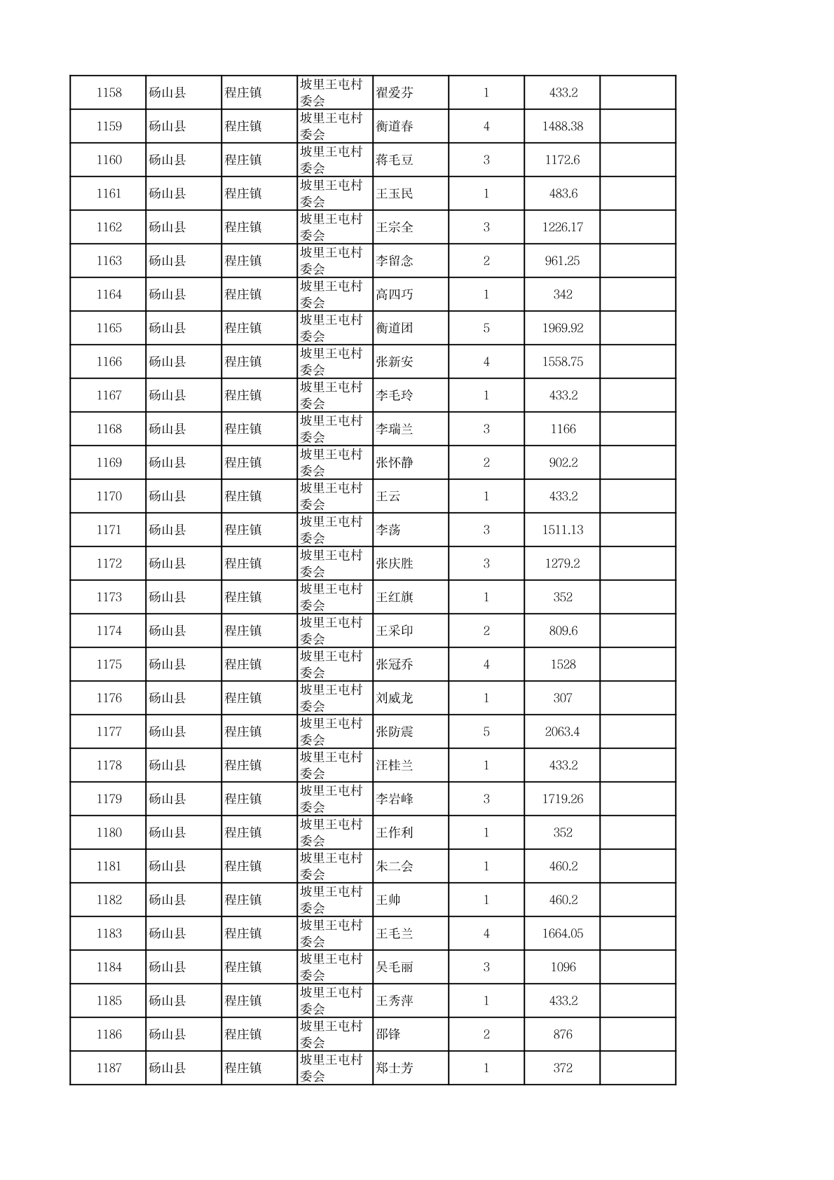 程庄镇2026年2月农保资金发放名册