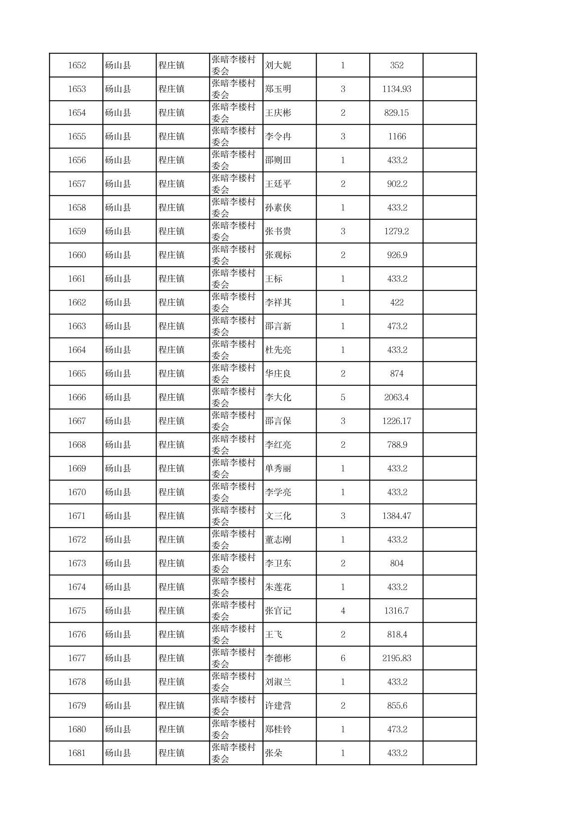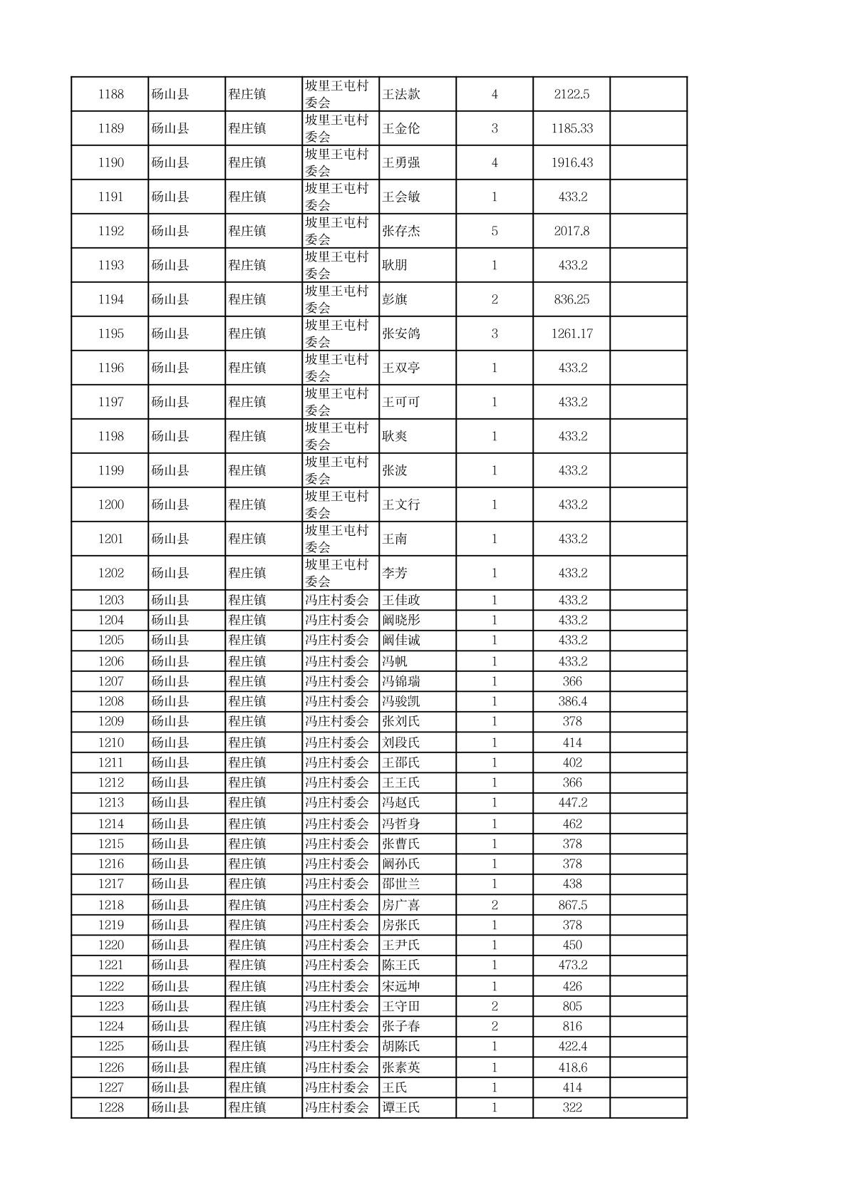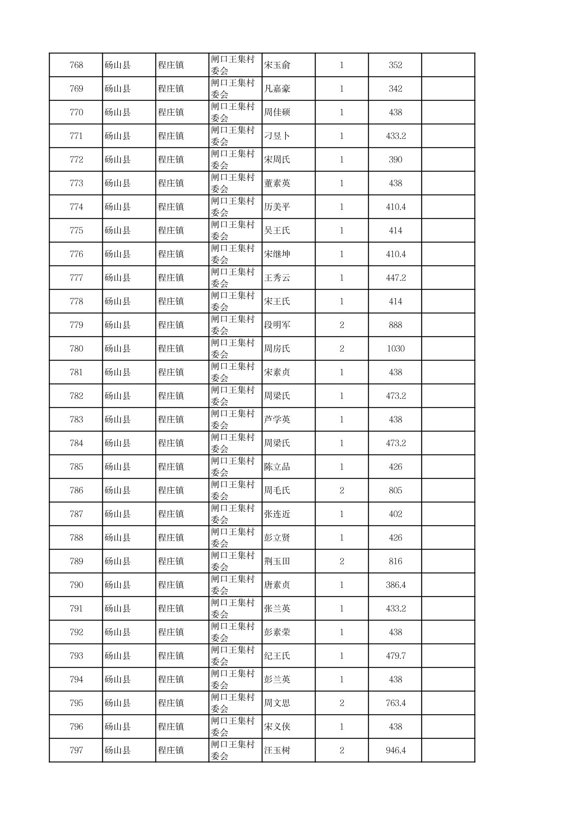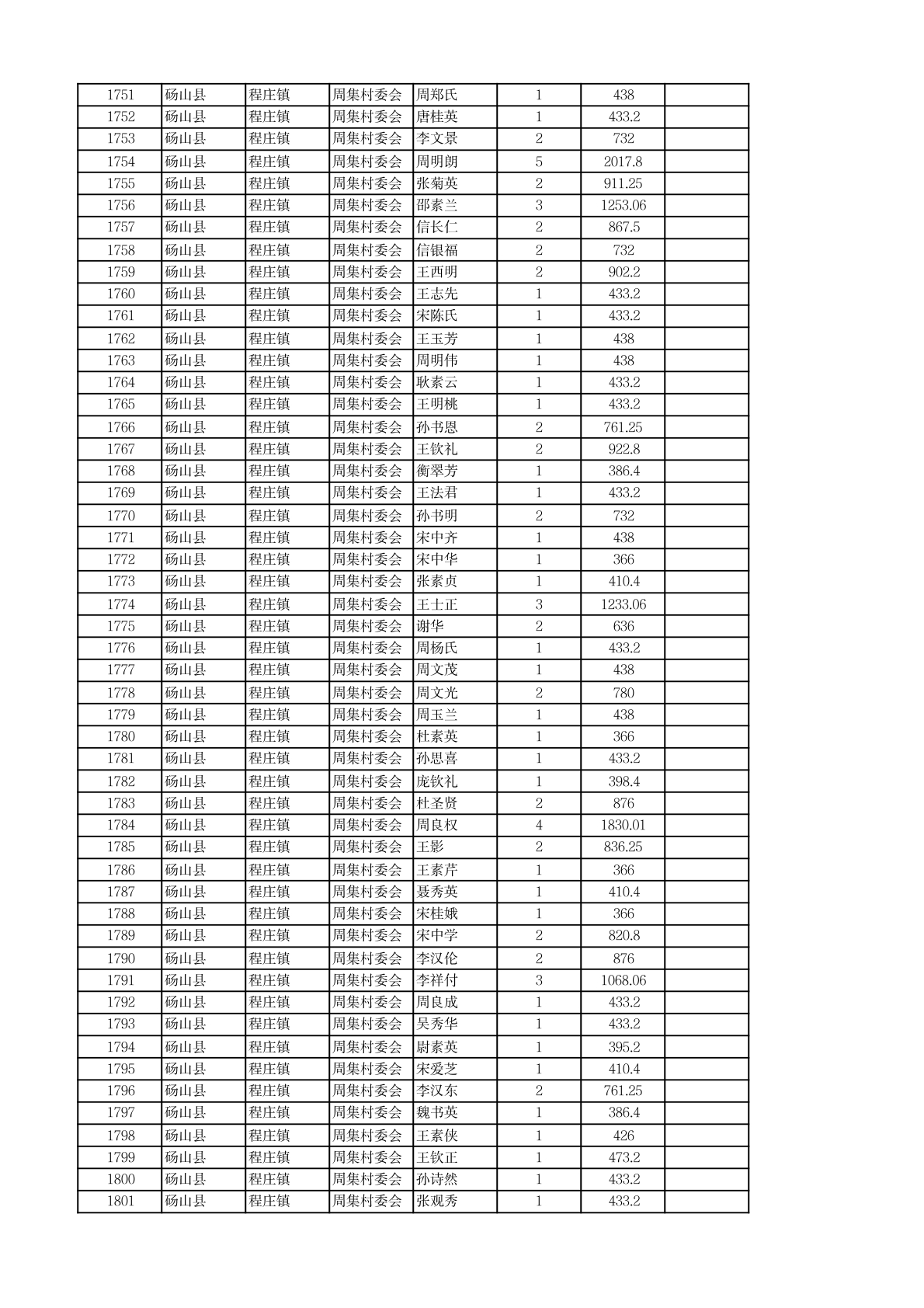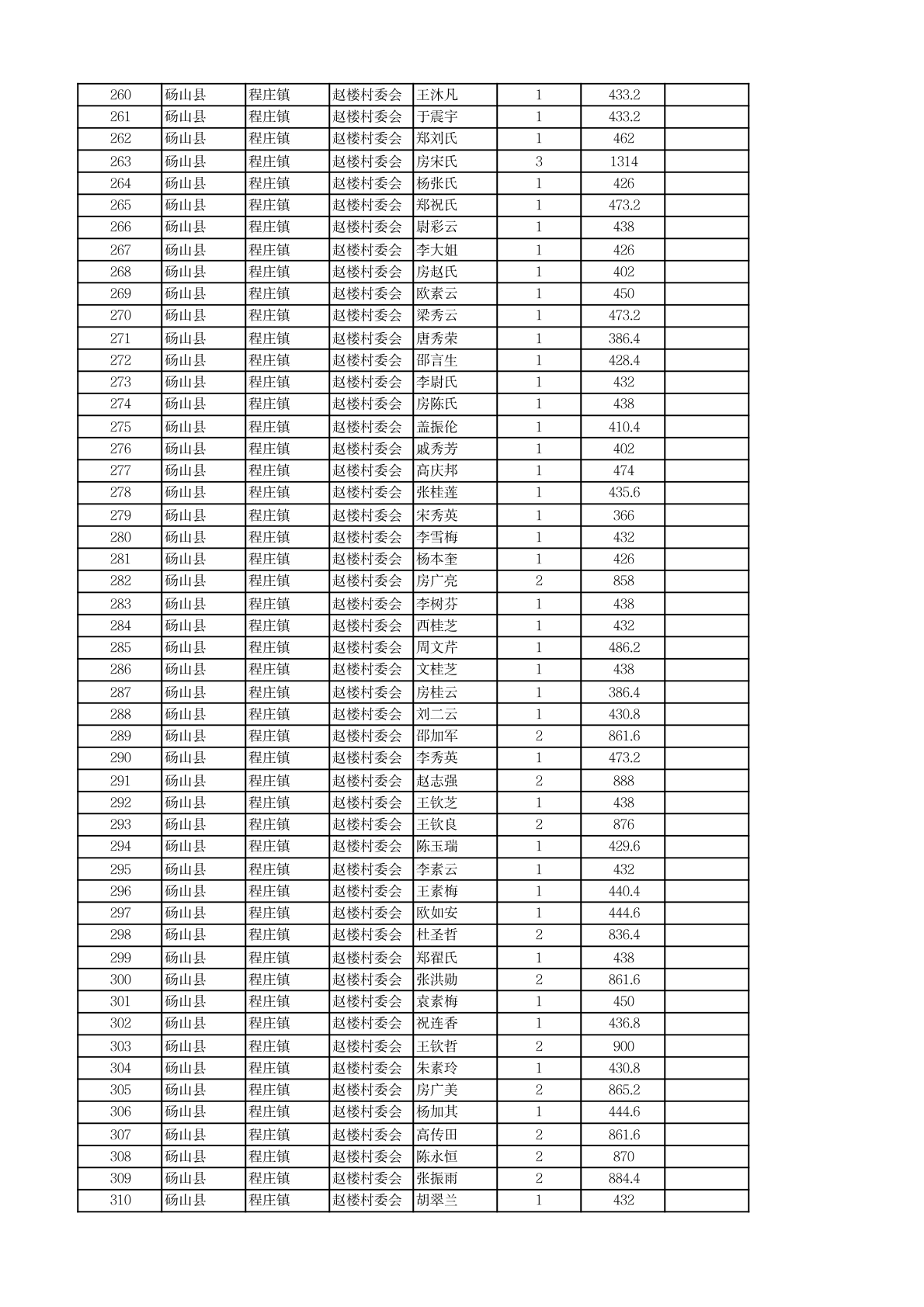 程庄镇2026年2月农保资金发放名册