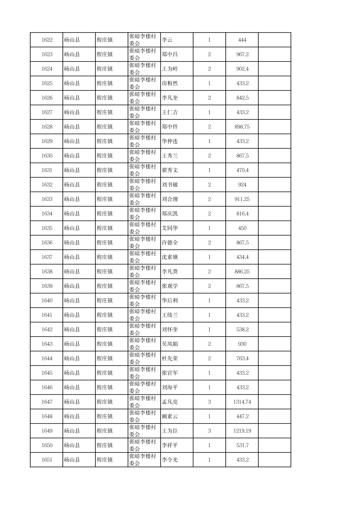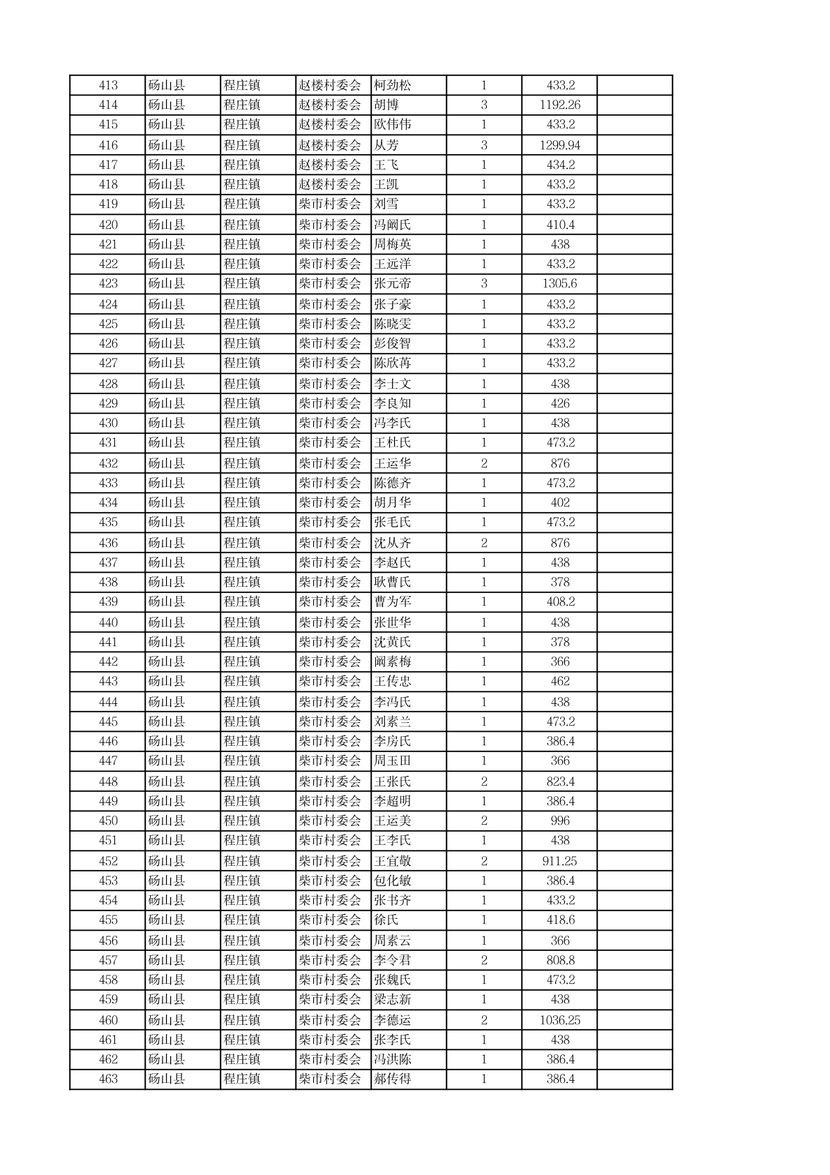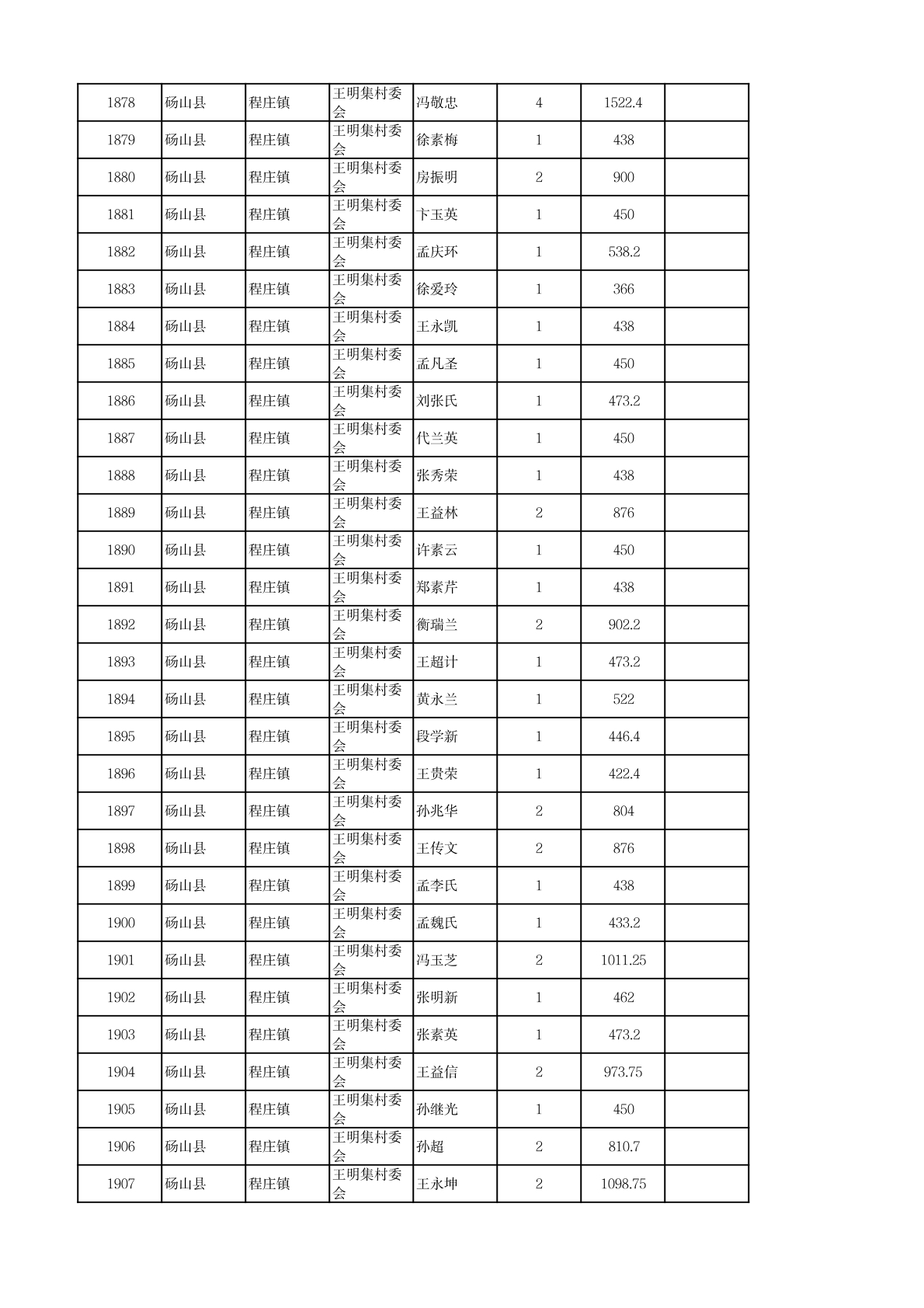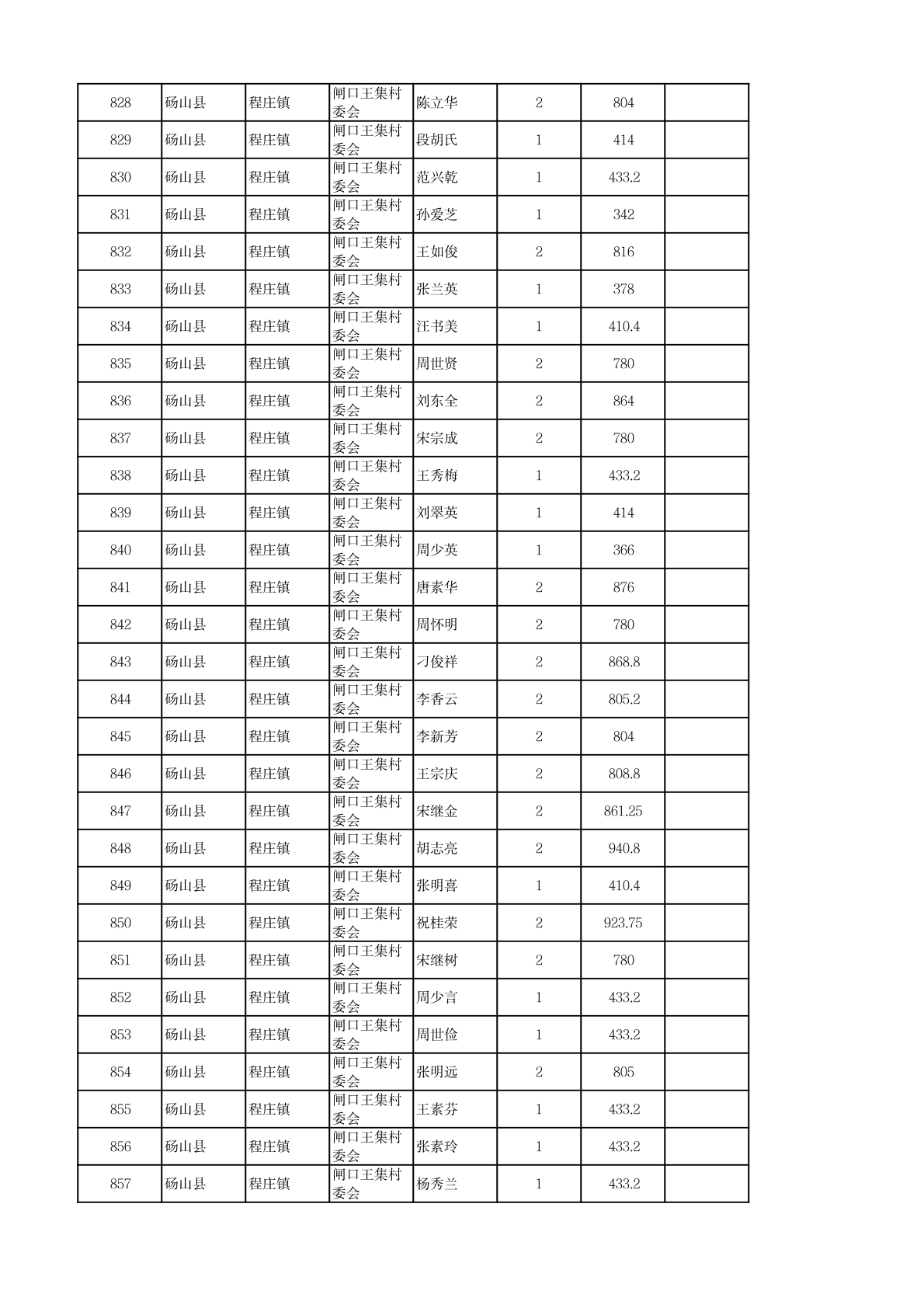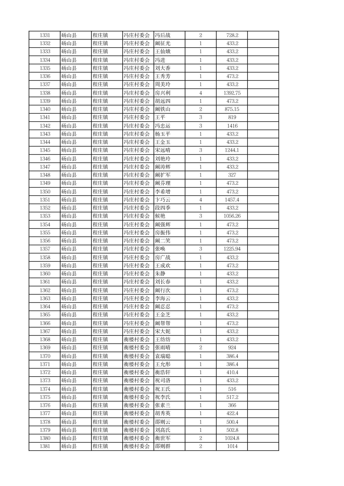 程庄镇2026年2月农保资金发放名册