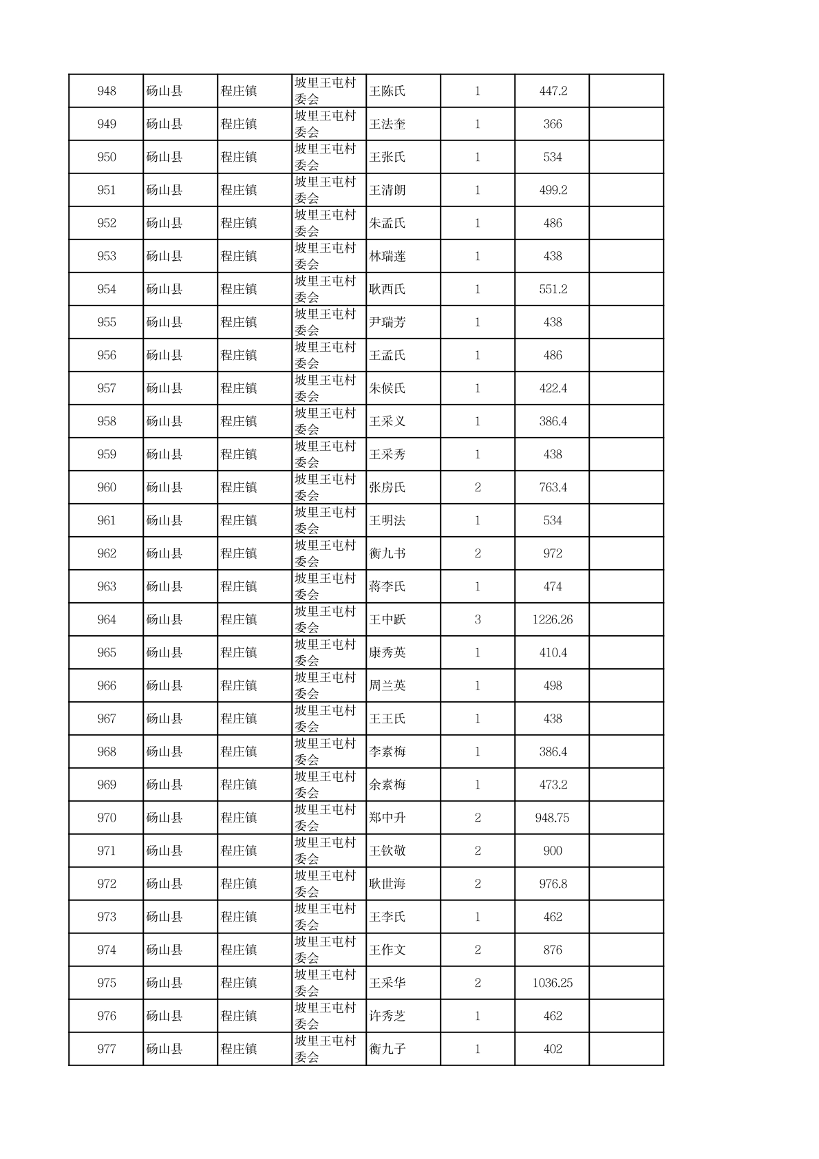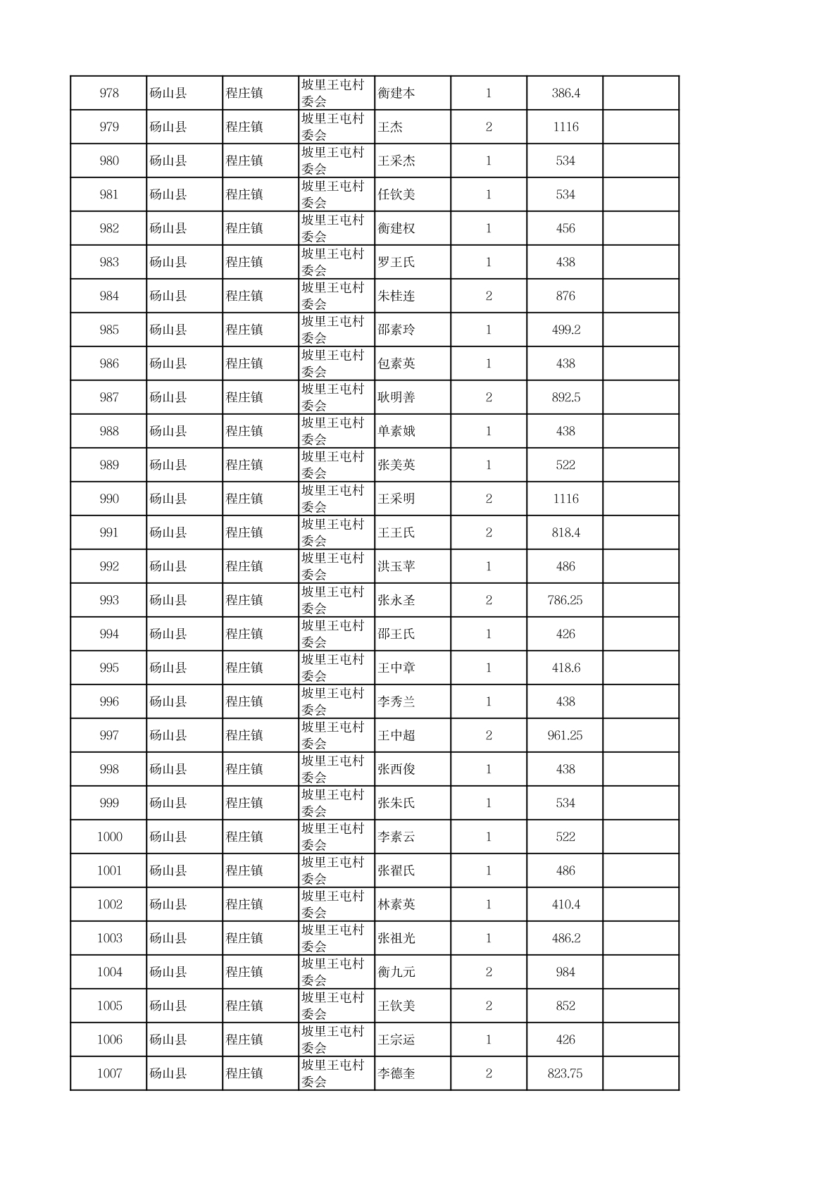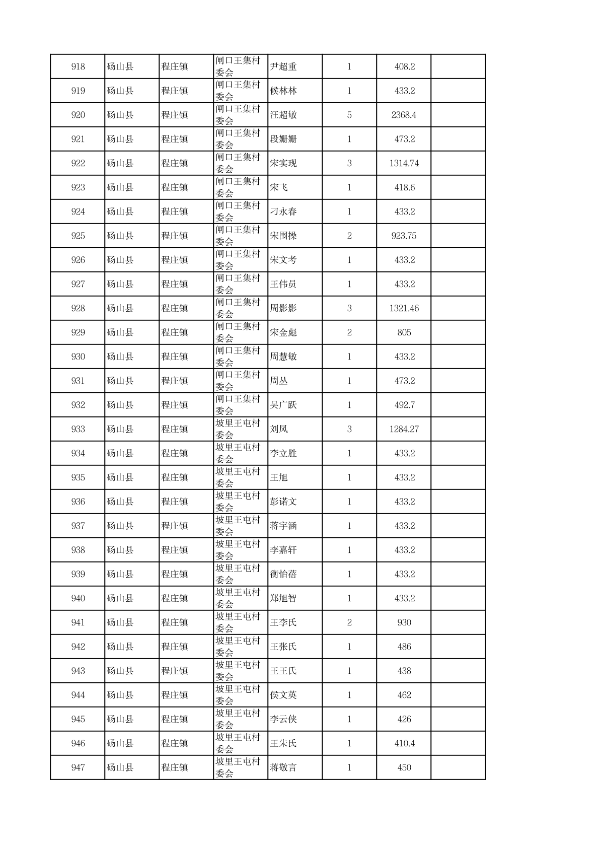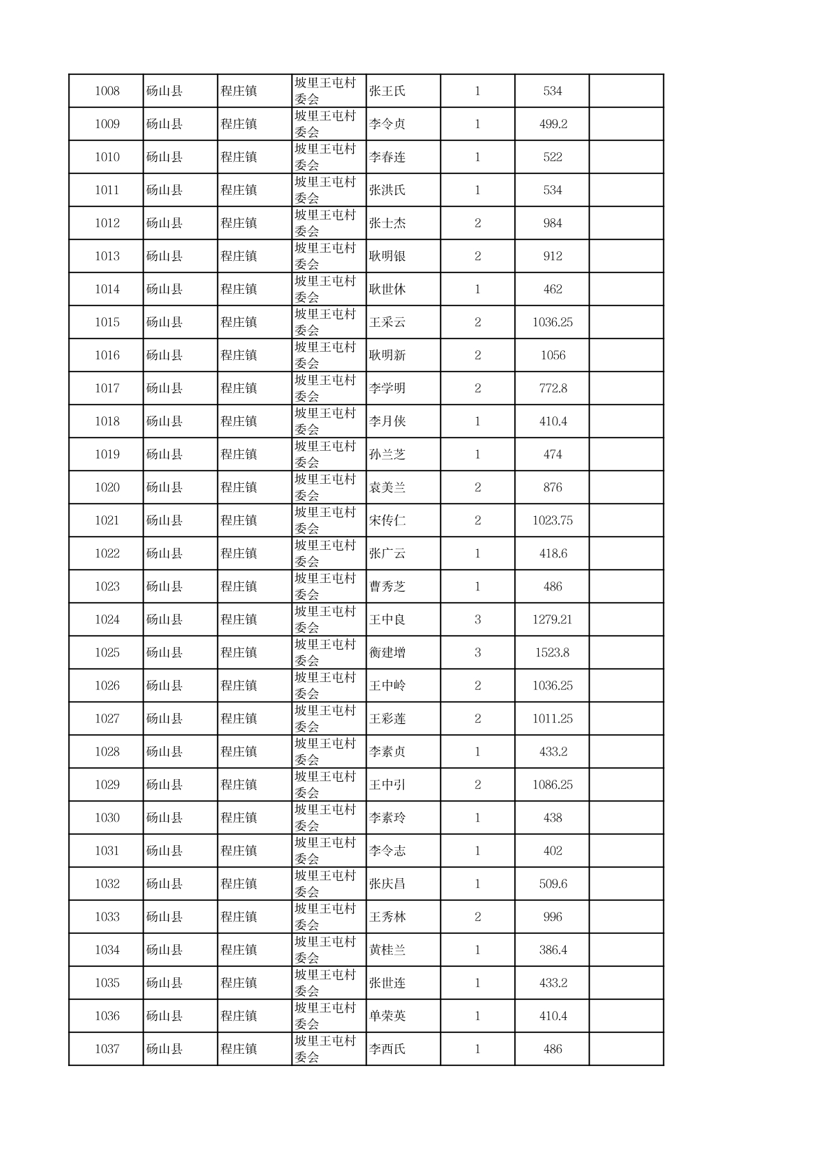 程庄镇2026年2月农保资金发放名册