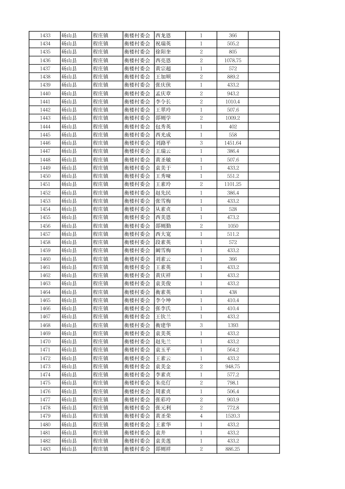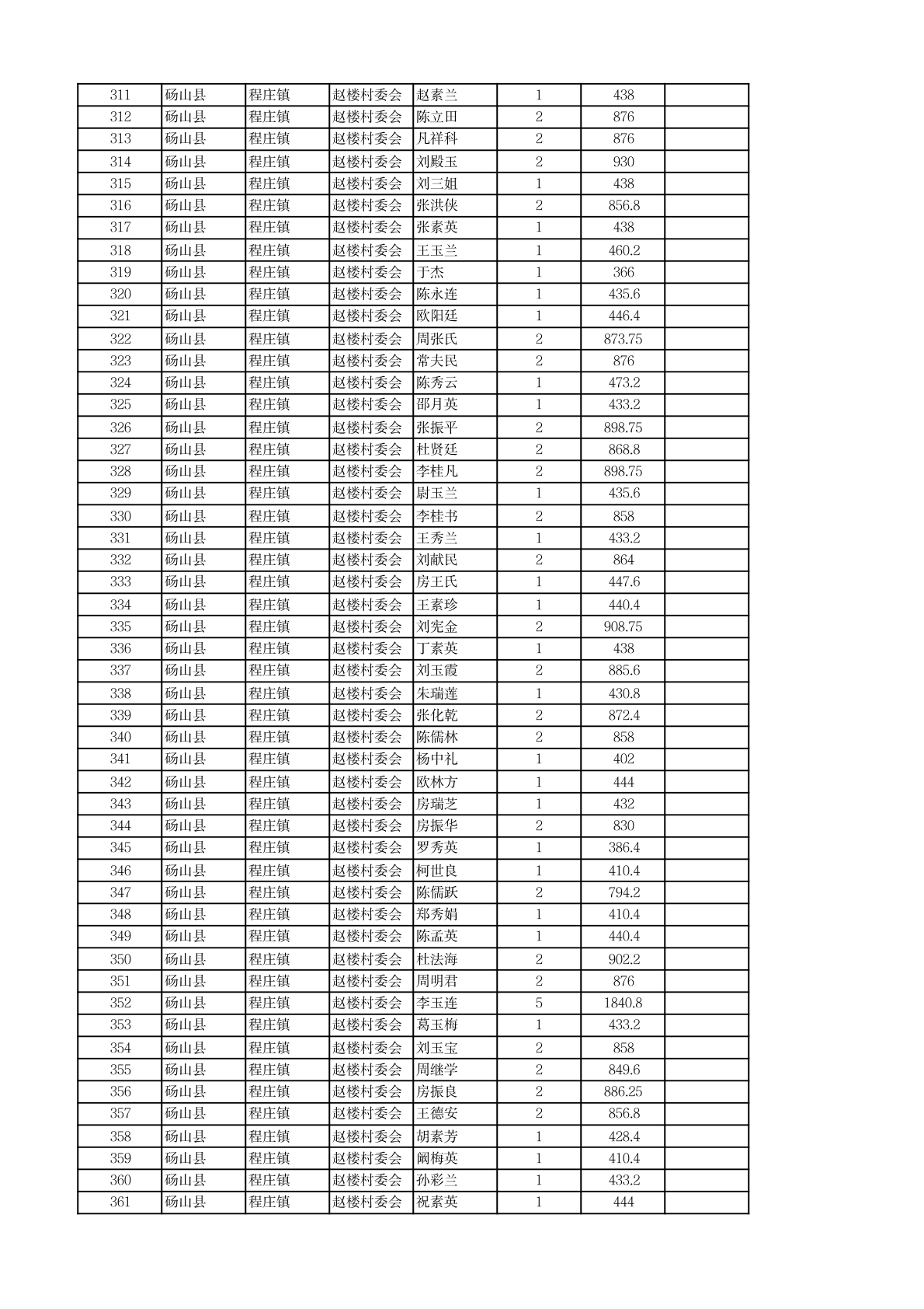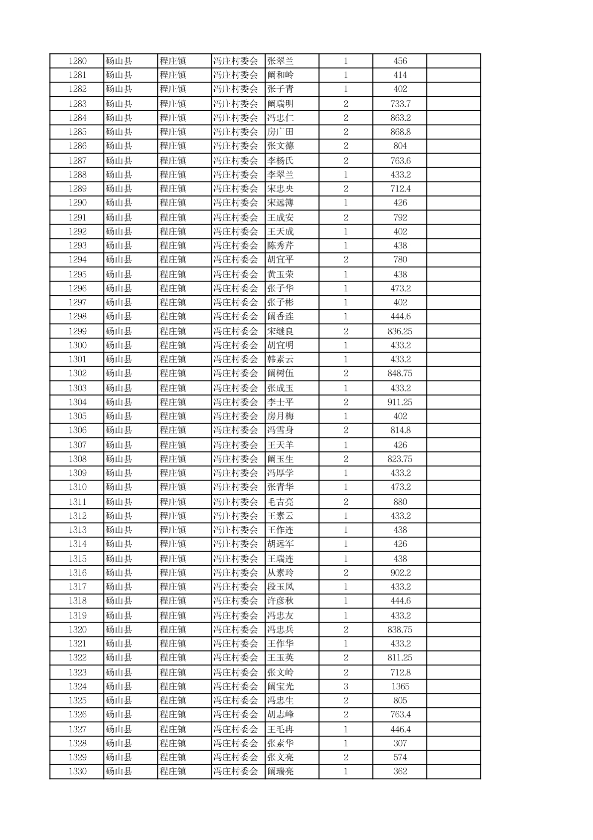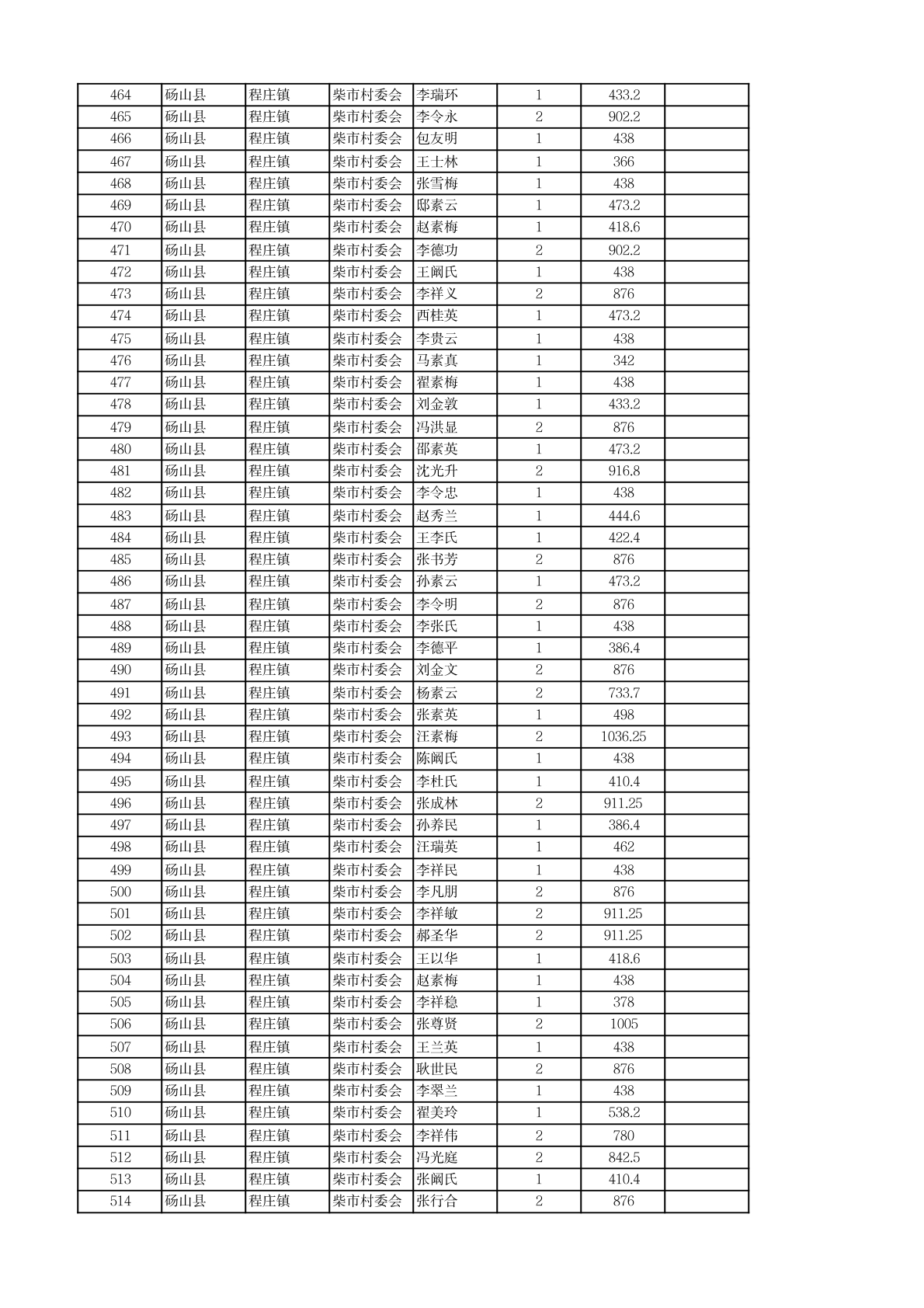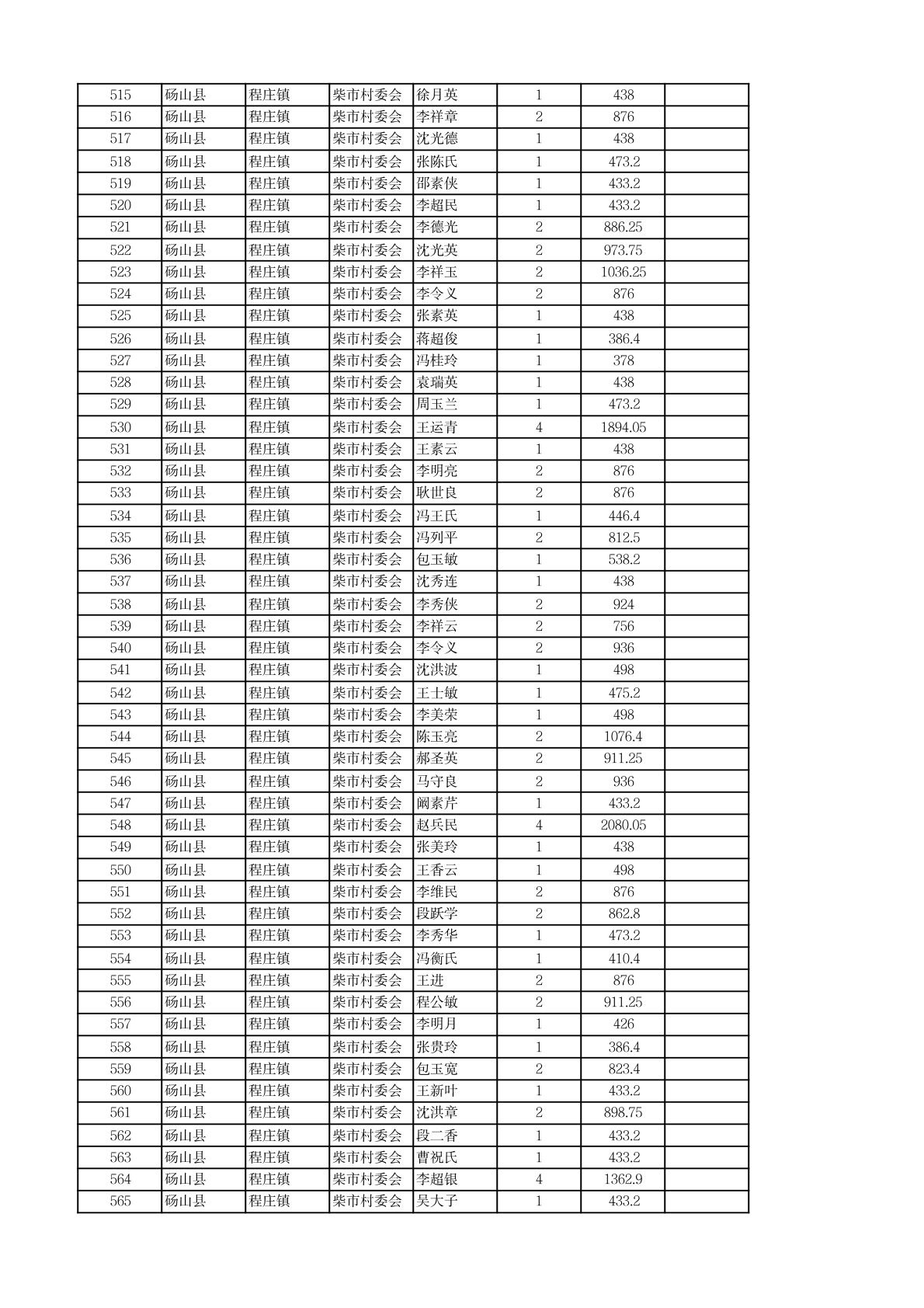 程庄镇2026年2月农保资金发放名册