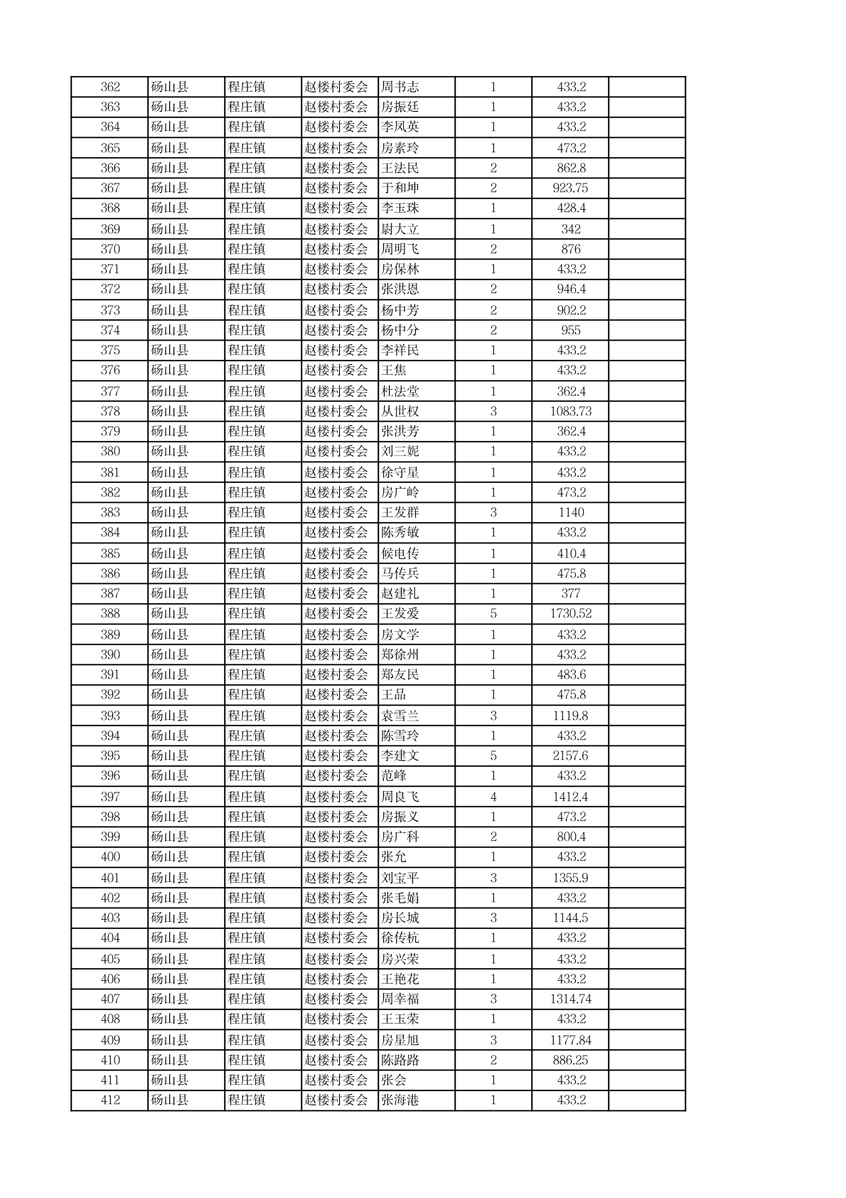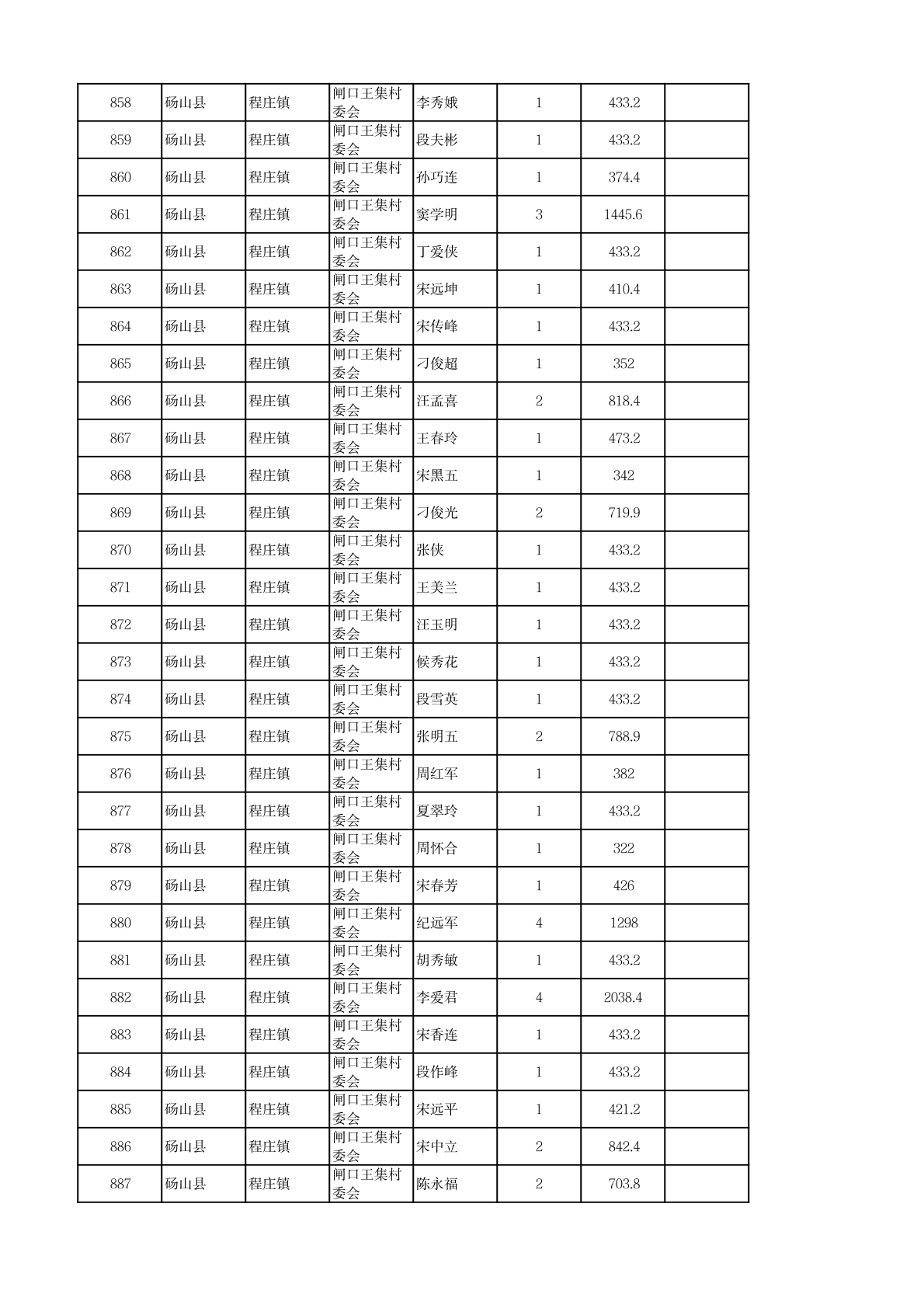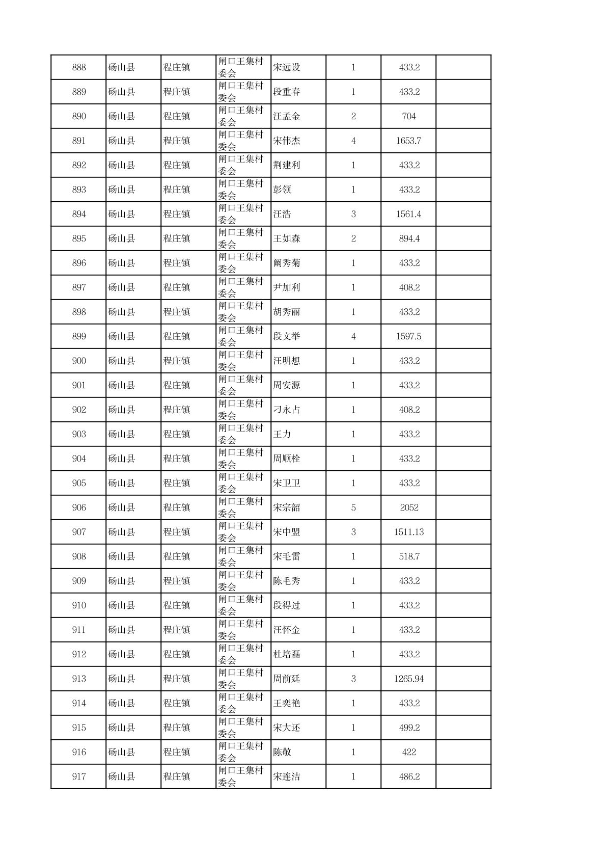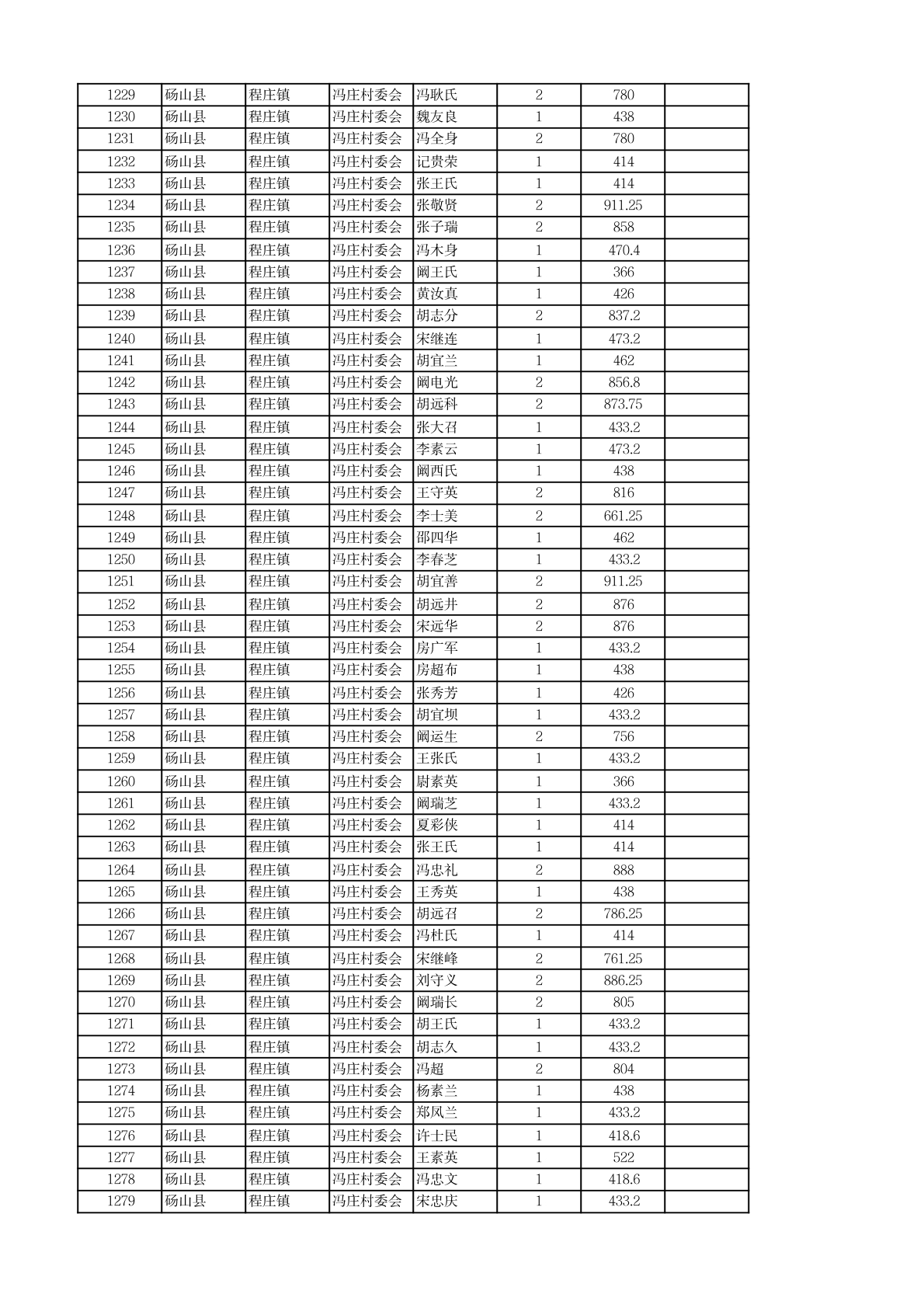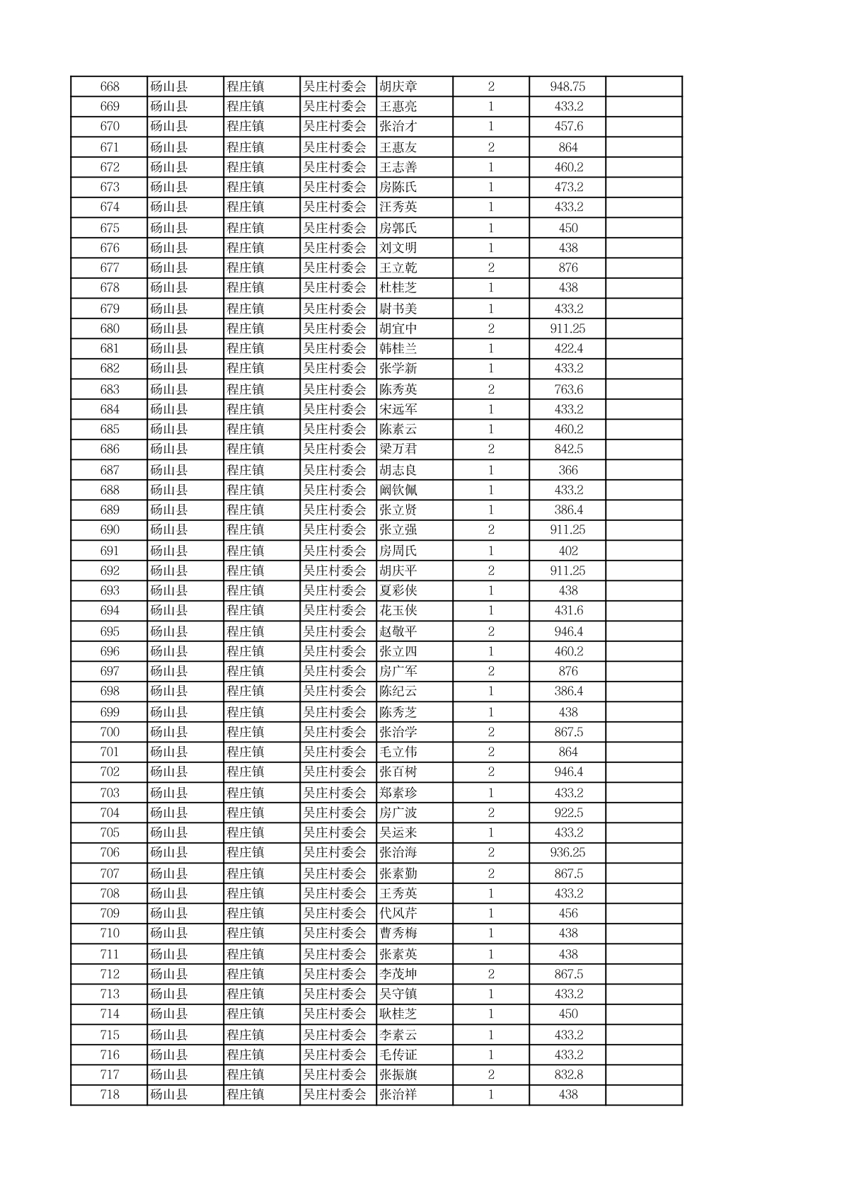 程庄镇2026年2月农保资金发放名册