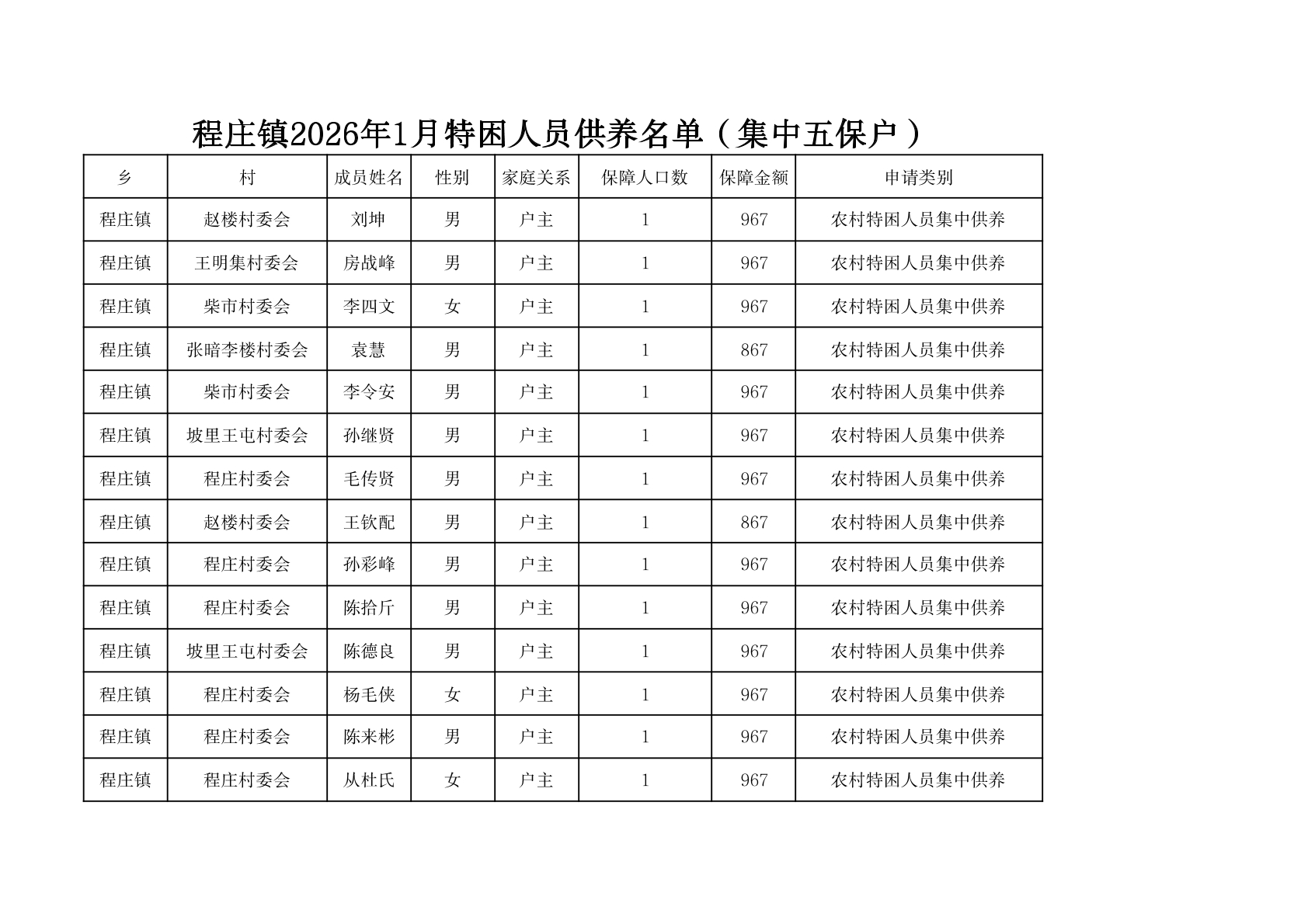 程庄镇2026年1月特困人员供养名单(集中五保户).pdf