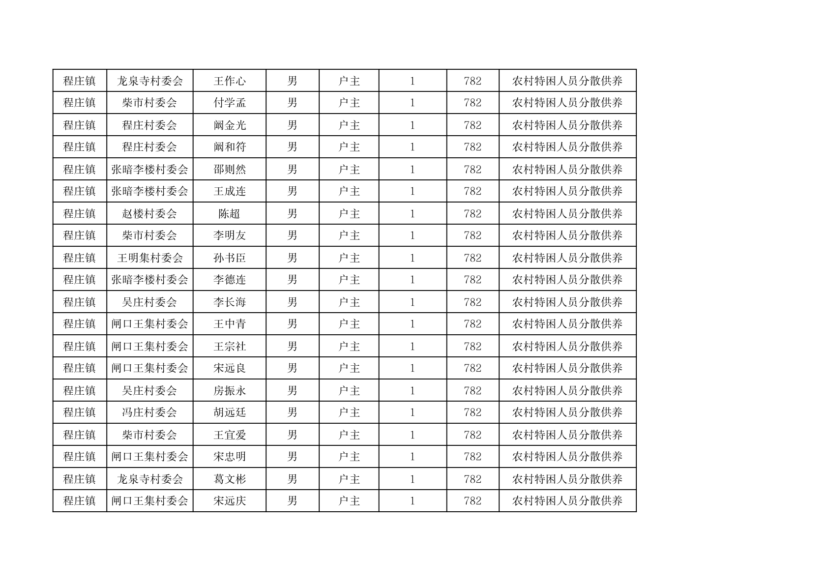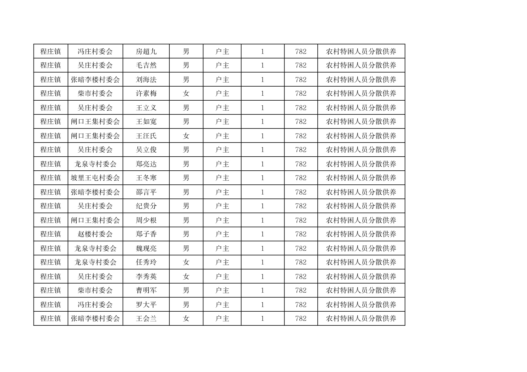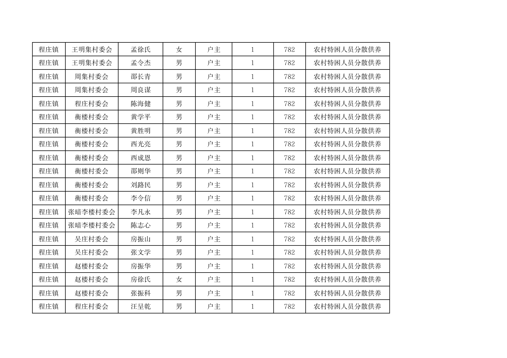 程庄镇2026年2月分散供养特困人员资金发放花名册