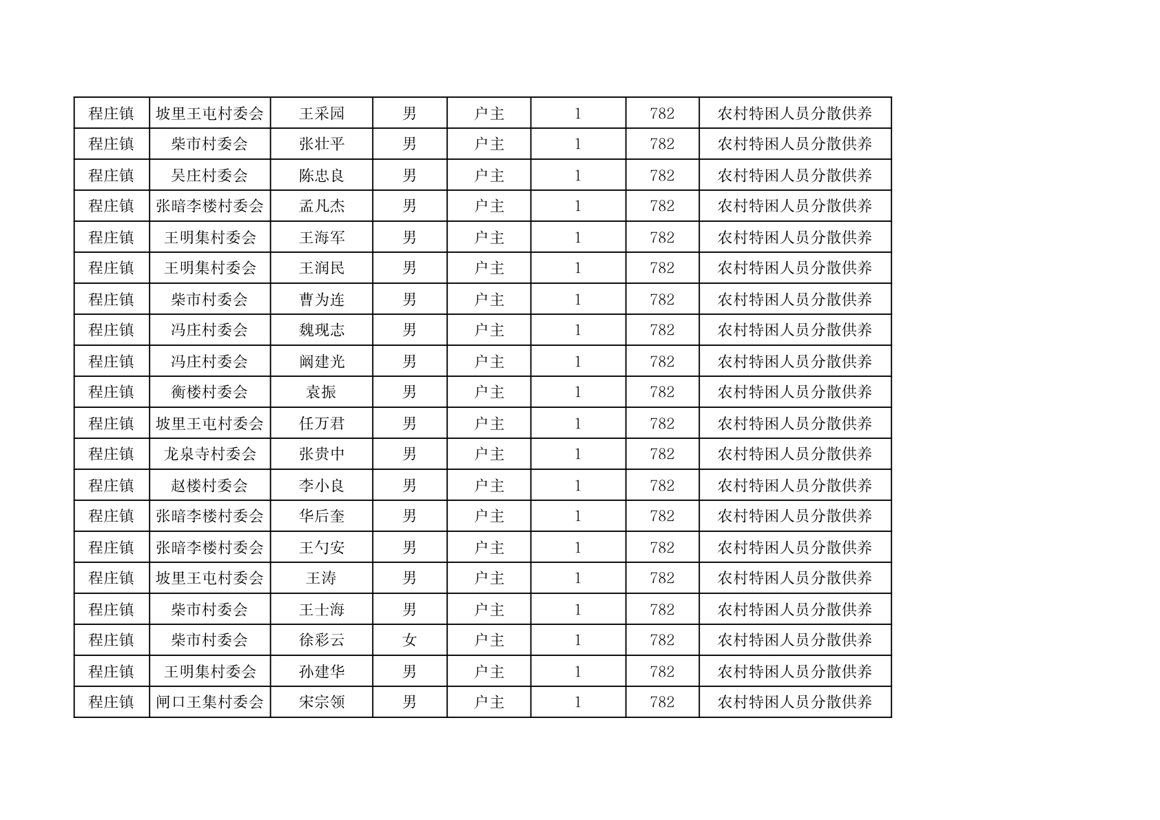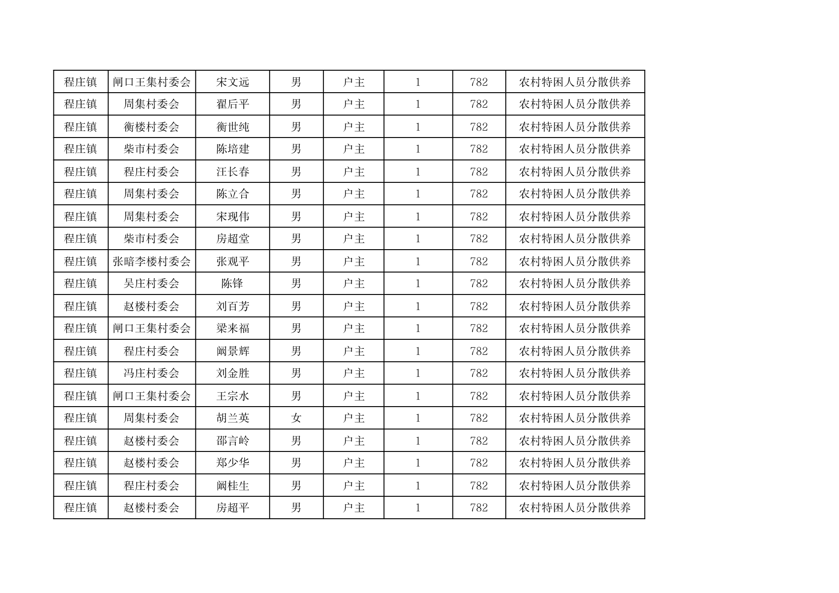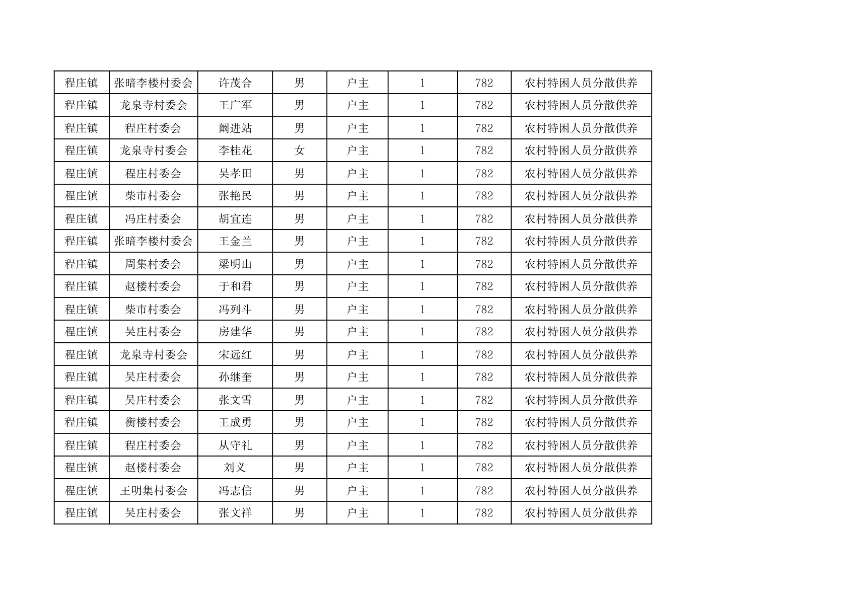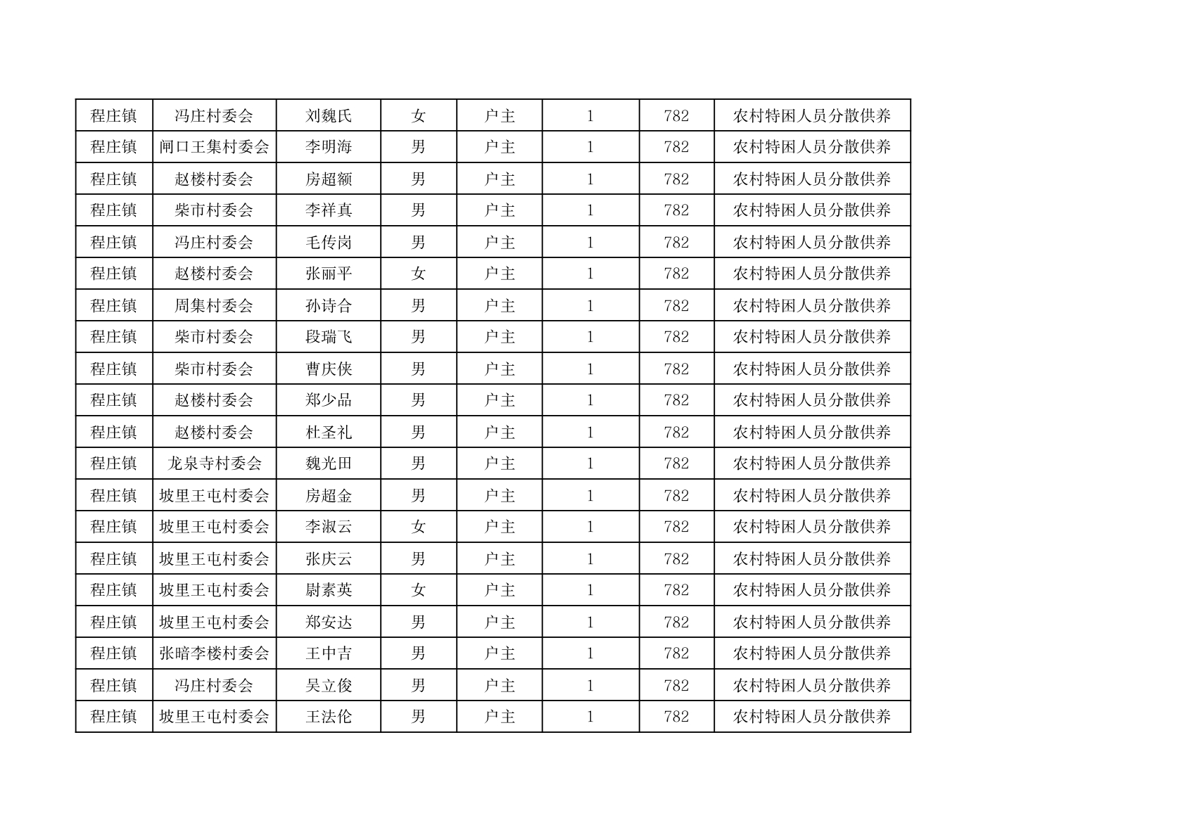 程庄镇2026年2月分散供养特困人员资金发放花名册