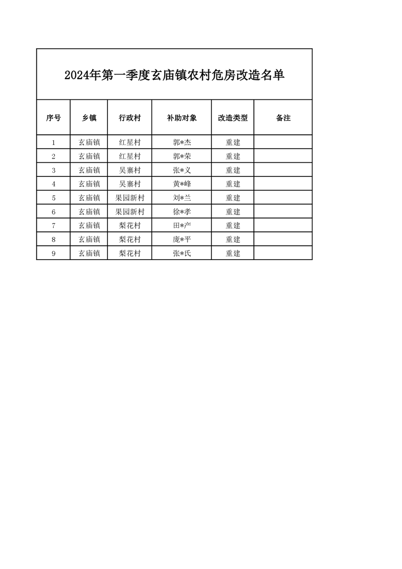 玄庙镇2024年第一季度危房改造人员名单