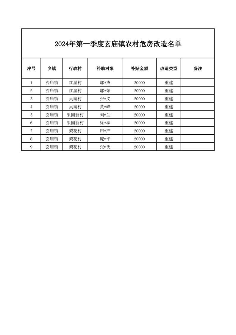【认定结果】玄庙镇2024年第一季度农村危房改造对象认定结果