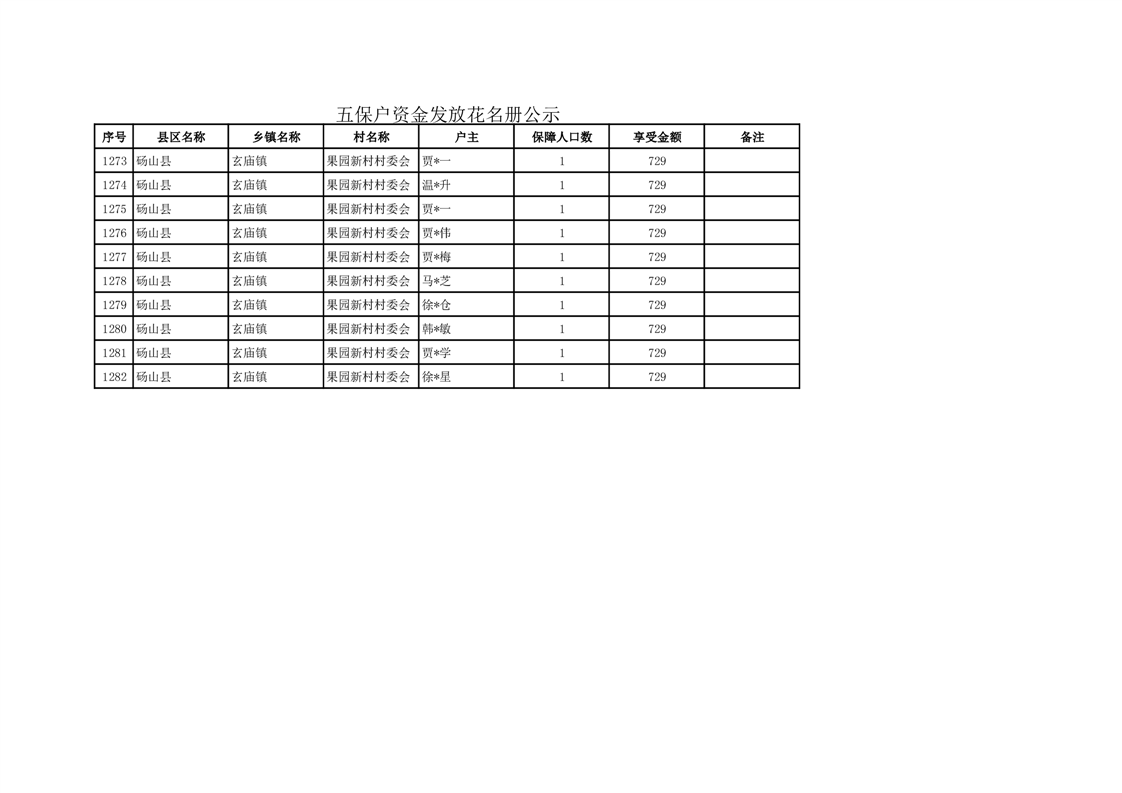 玄庙镇2025年第三季度特困人员(五保户)资金发放花名册