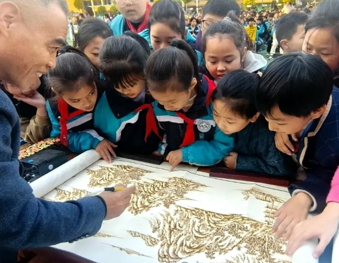 随后,省级非遗项目砀山年画省级传承人黄兴年、砀山烙画省级传承人国丽建、砀山兰花印染技艺省级传承人胡玉民、砀山手工编织县级传承人杨秋菊等,纷纷上台介绍和展示各自的非遗产品,让学生深入了解家乡的优秀传统文化,感受非物质文化遗产的独特魅力。