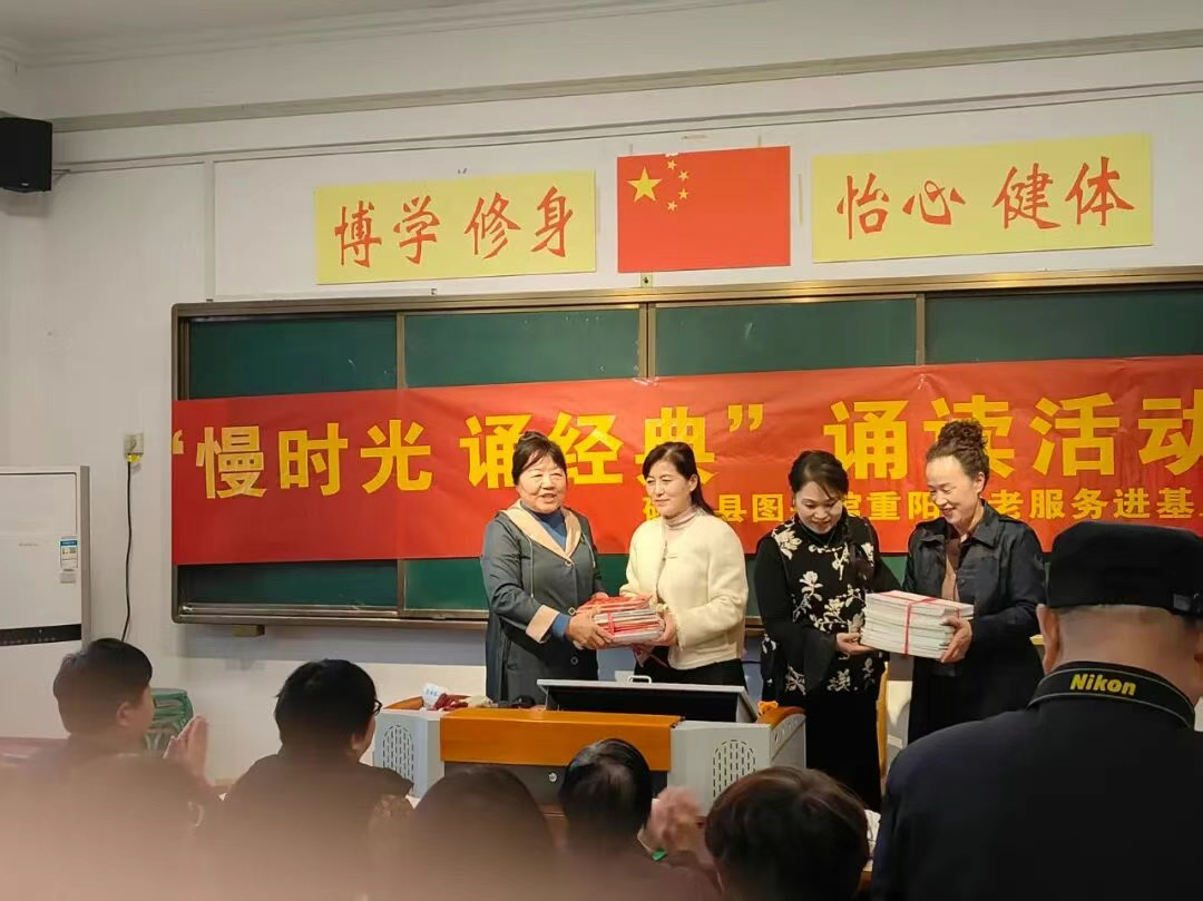 在书籍赠送环节,图书馆工作人员将一本本精心挑选的图书递到老年人手中。这些书籍涵盖文学、历史、养生等多个领域,不仅丰富了他们的精神文化生活,也为他们的晚年生活增添了更多色彩。同时,图书馆还为到场的老年人准备了精美的小礼品,表达了对他们的节日祝福。每一份礼物都承载着图书馆的关怀与温暖,让老人们感受到了社会大家庭的关爱。此次活动不仅是一次文化盛宴,更是一次心灵的交流。砀山县图书馆将继续以实际行动弘扬尊老敬老的传统美德,为更多老年人送去文化的滋养与温暖。
