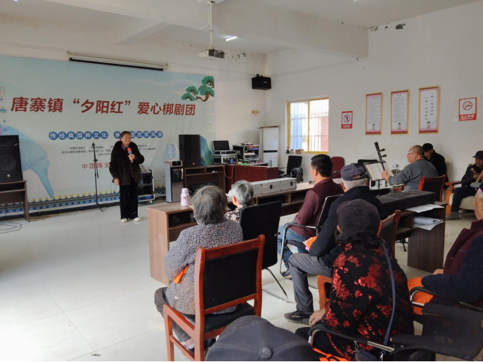 为丰富老年人精神文化生活,满足其对传统戏曲文化的需求,在唐寨村新时代文明实践站文化活动室里,一场老年人戏曲交流活动热闹开展。辖区戏曲爱好者欢聚一堂,轮番登场演唱《穆桂英挂帅》《花木兰》《朝阳沟》等经典豫剧选段。他们字正腔圆的唱腔、惟妙惟肖的表演,赢得观众阵阵掌声与欢呼,不少老年人跟着旋律哼唱,沉浸在戏曲魅力中。活动为老年人提供展示与交流平台,丰富其精神生活,为重阳节增添浓厚文化氛围。