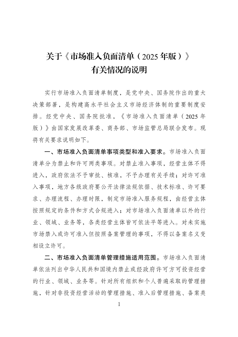 国家发展改革委商务部市场监管总局关于印发《市场准入负面清单(2025年版)》的通知 |