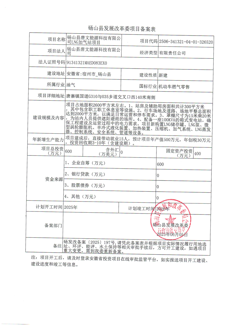 砀山县唐文能源科技有限公司LNG加气站项目 |
