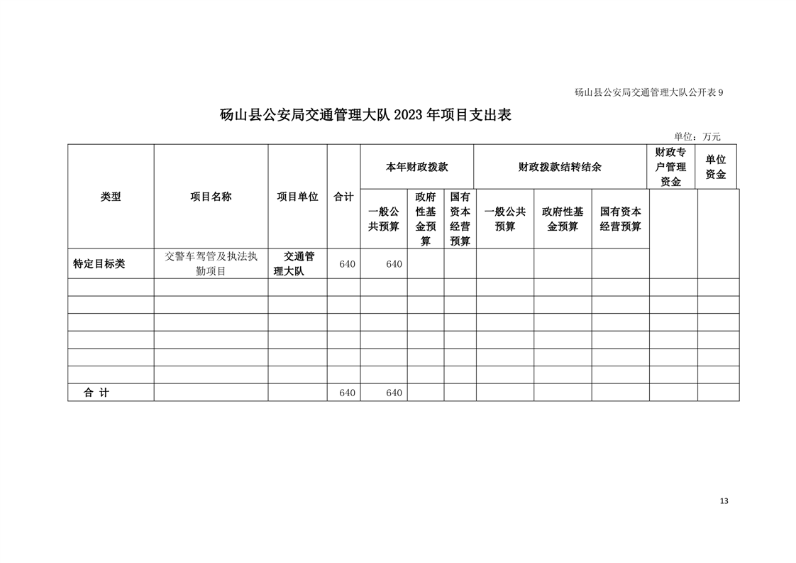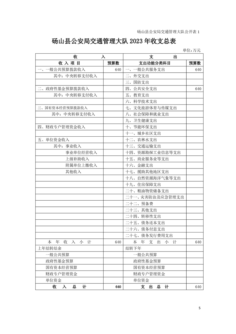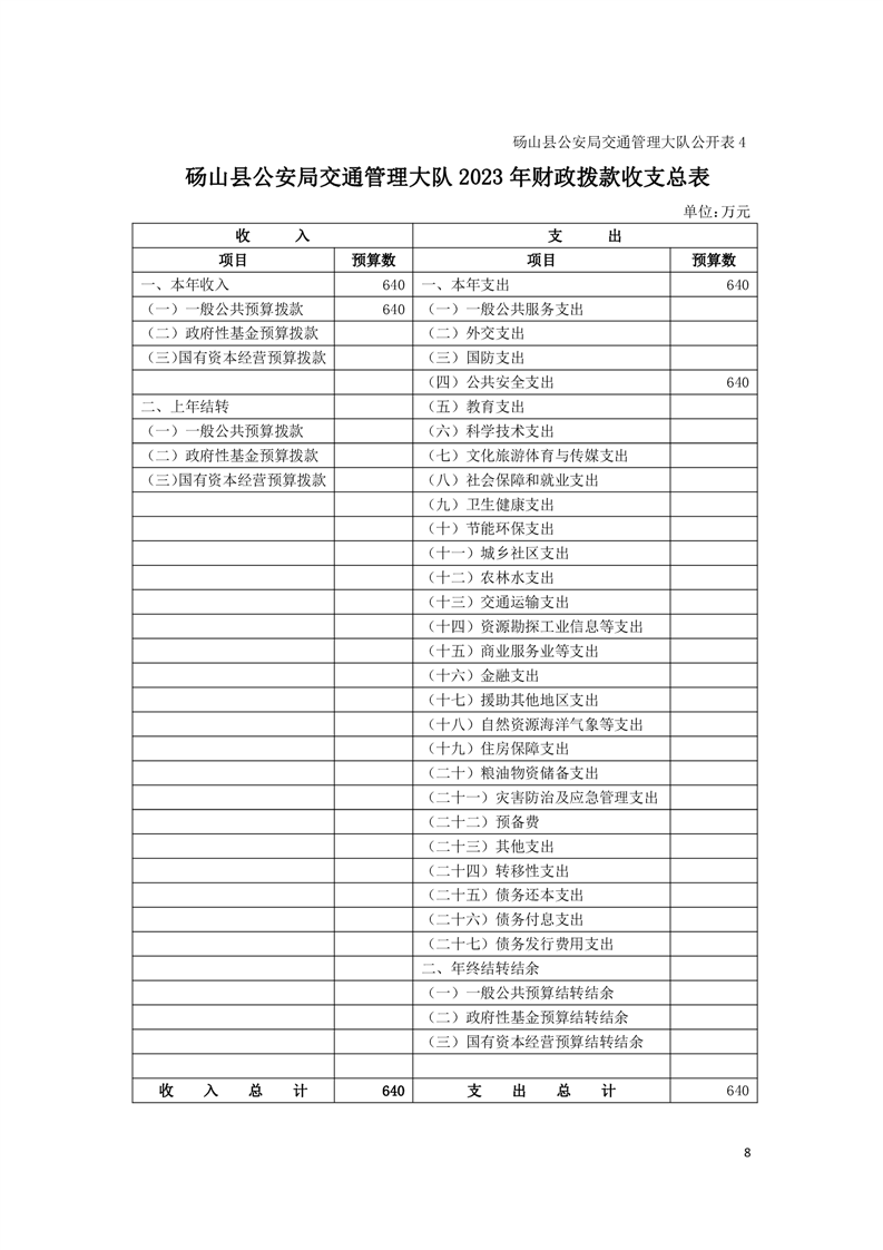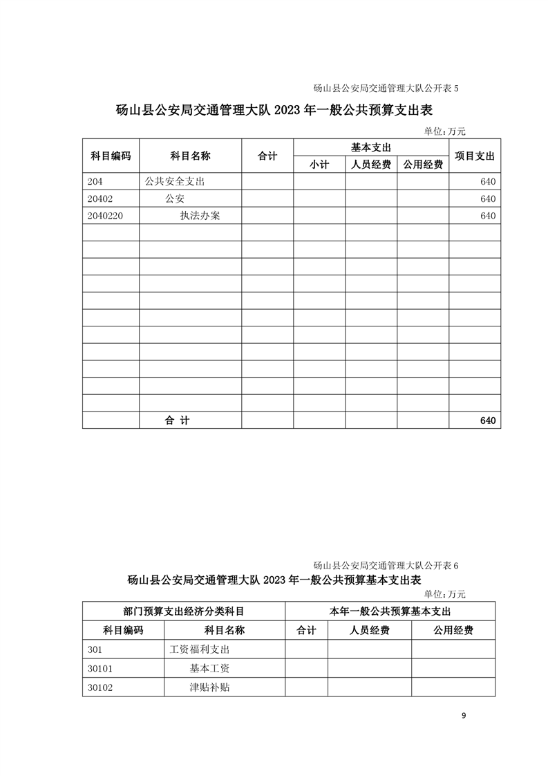 砀山县交警大队2023年预算 |