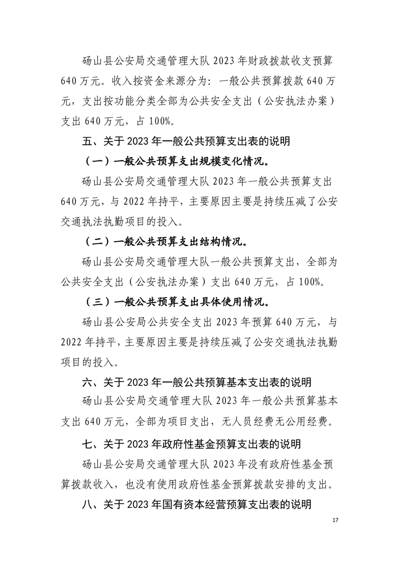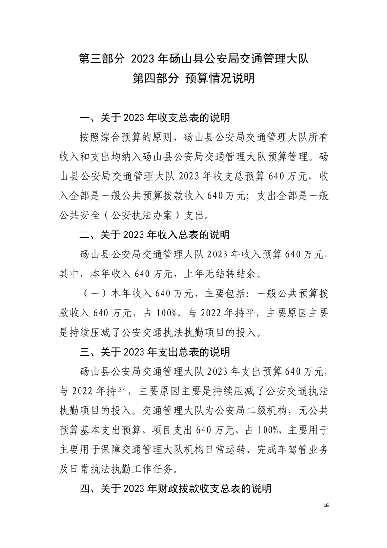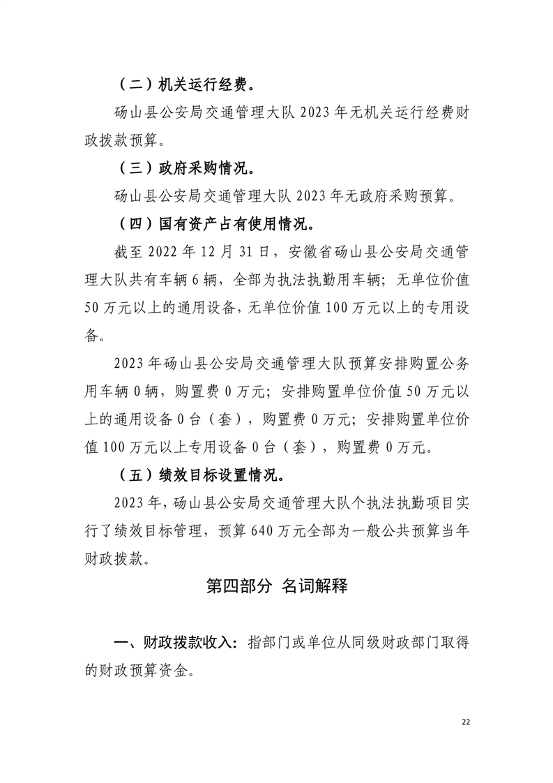 砀山县交警大队2023年预算