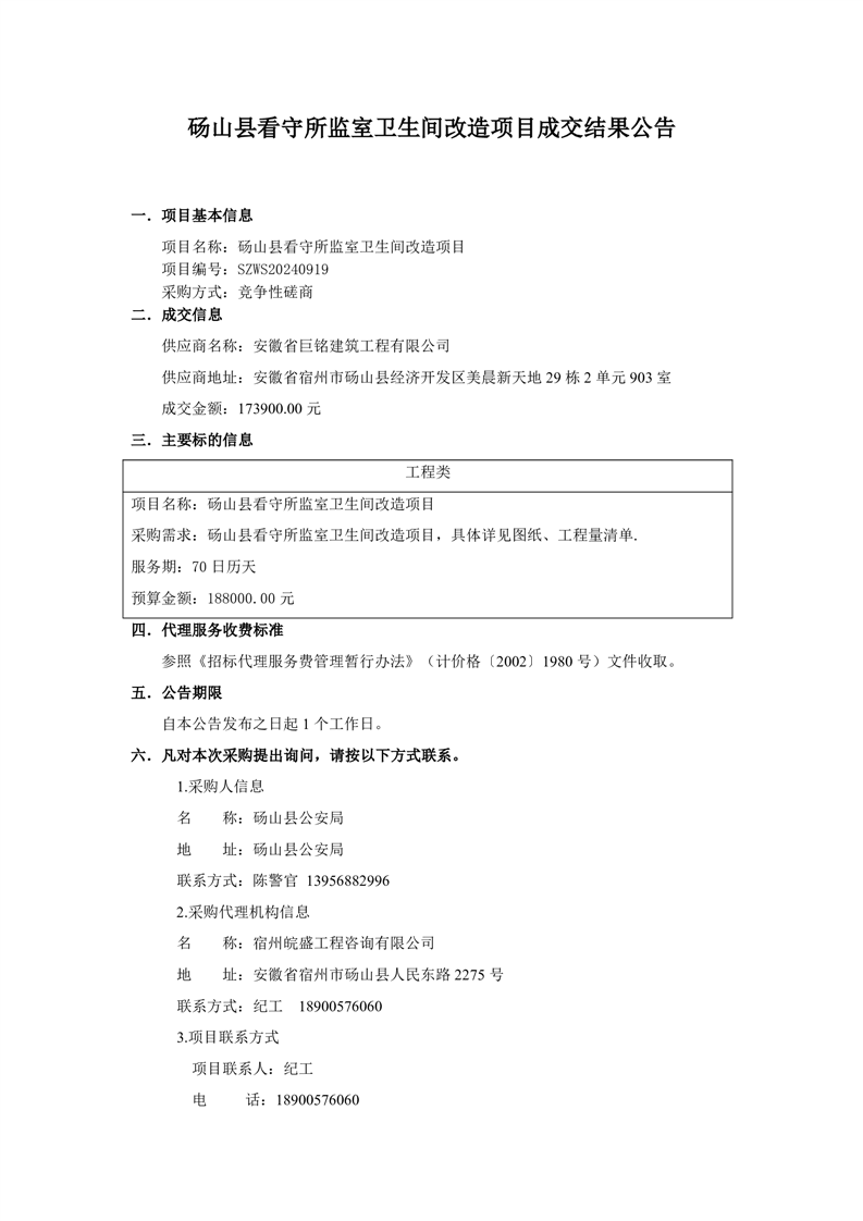 砀山县看守所监室卫生间改造项目成交结果公告 |
