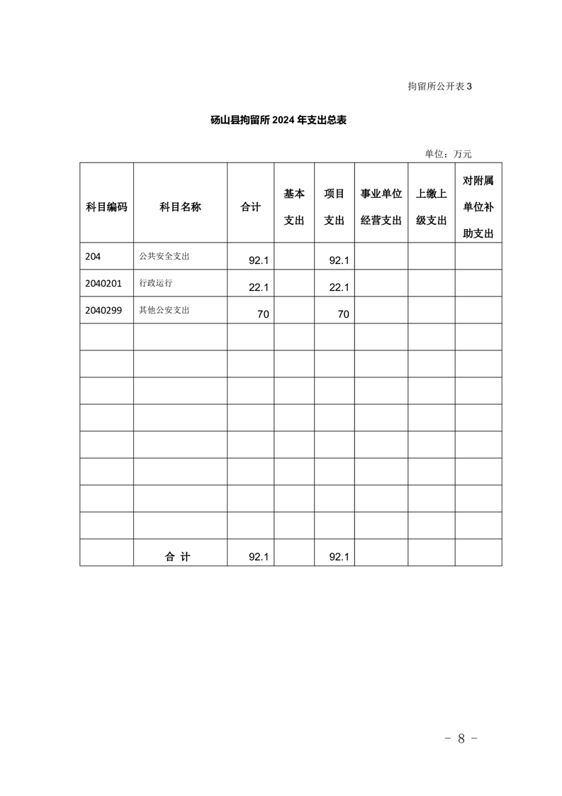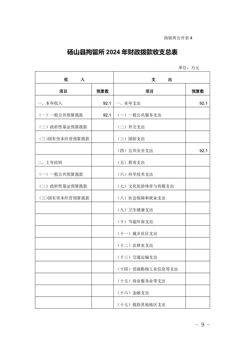 砀山县拘留所2024年预算公开