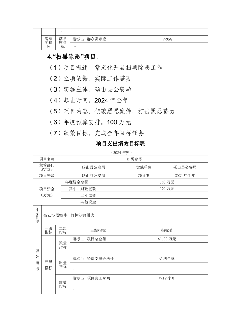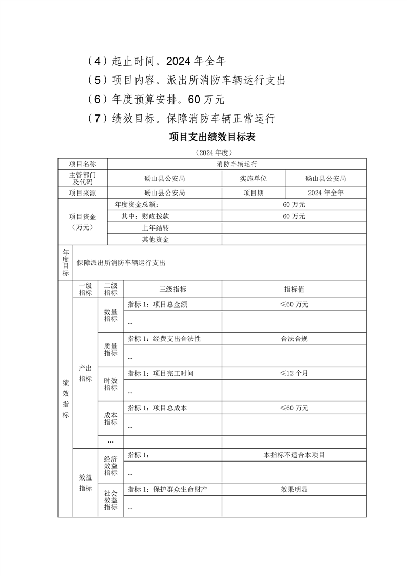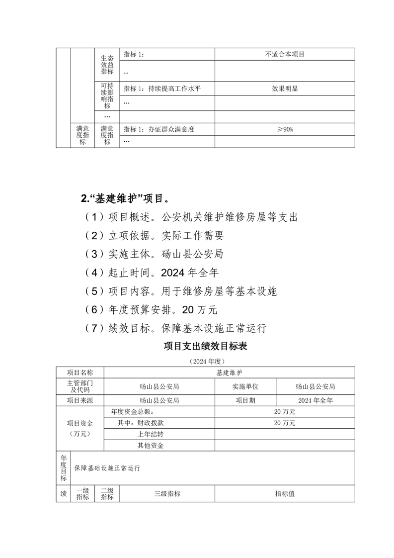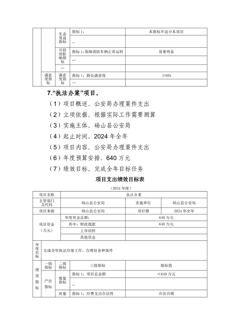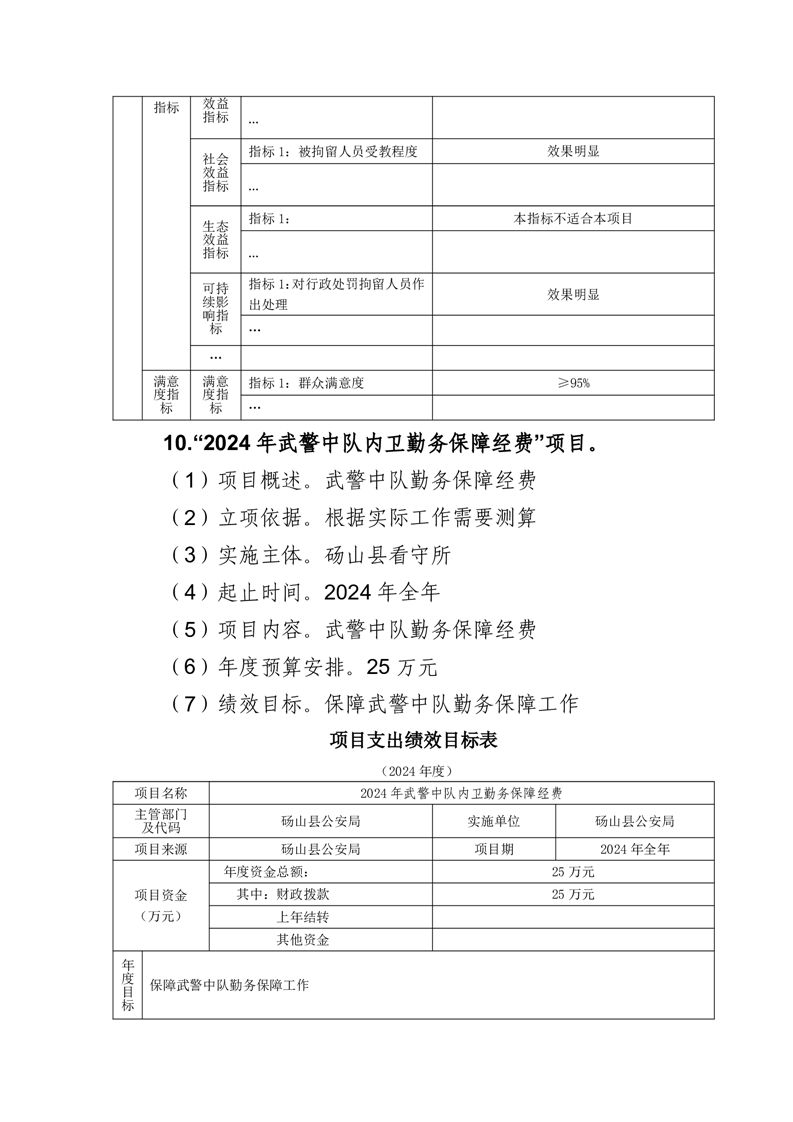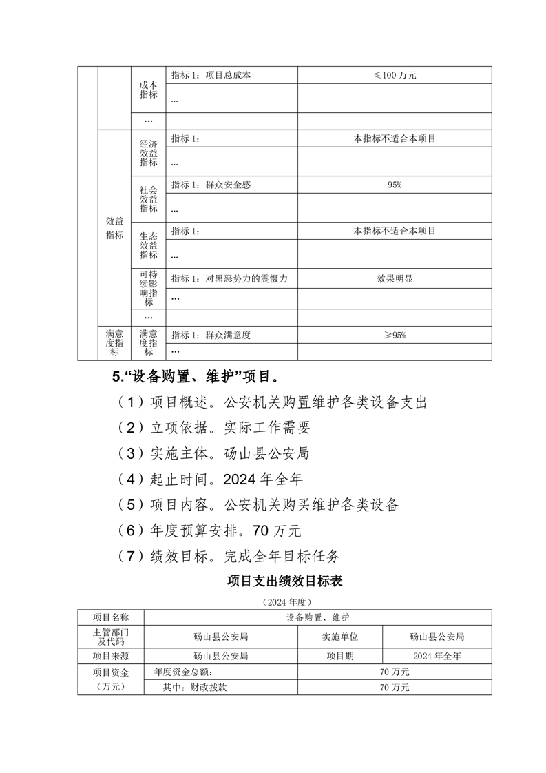 砀山县公安局2024年项目支出预算绩效目标表 |