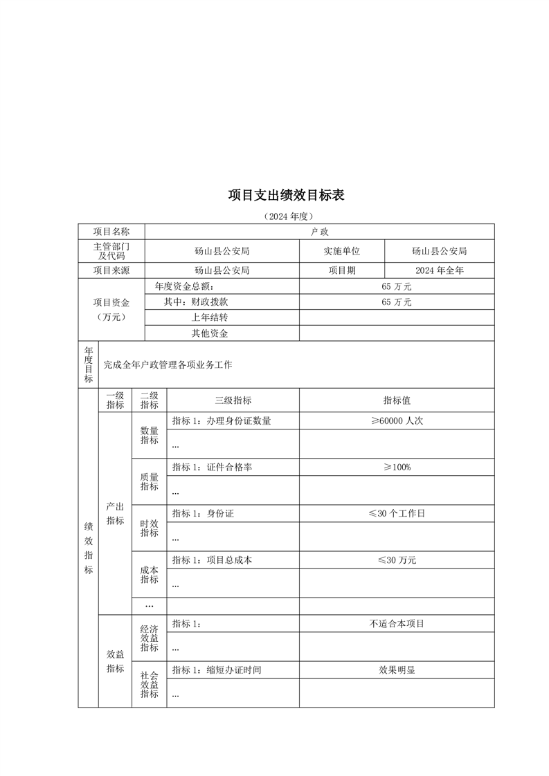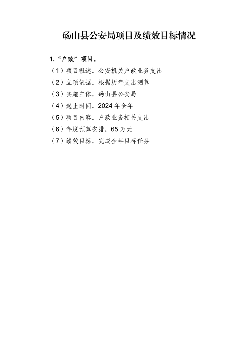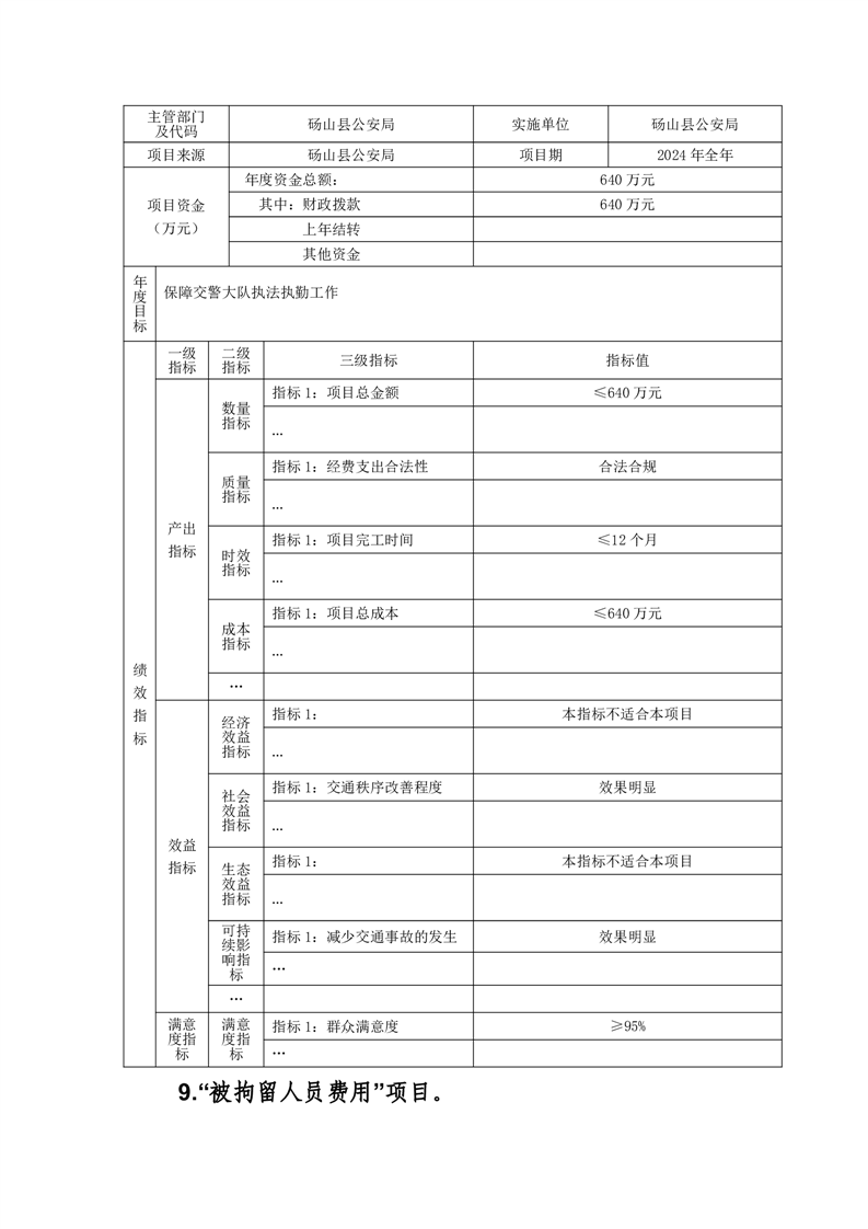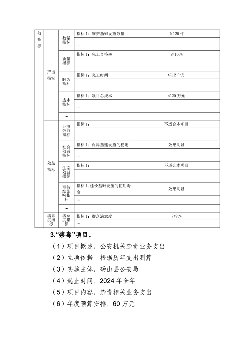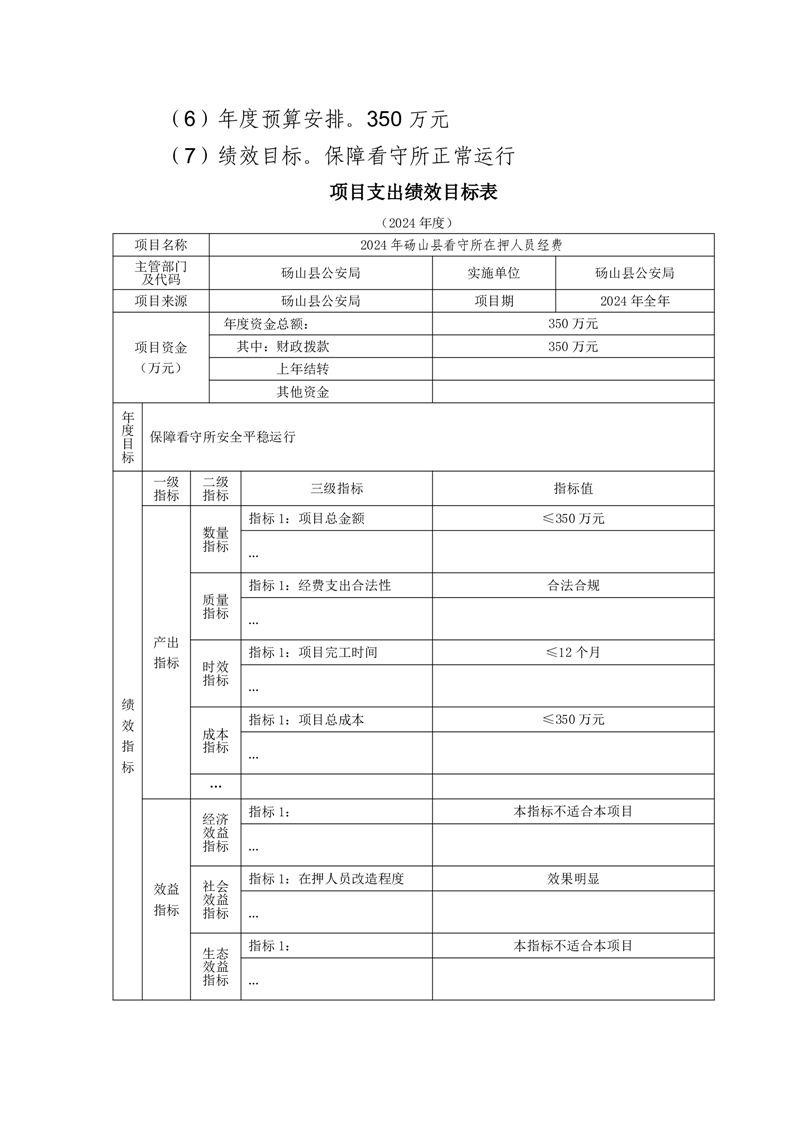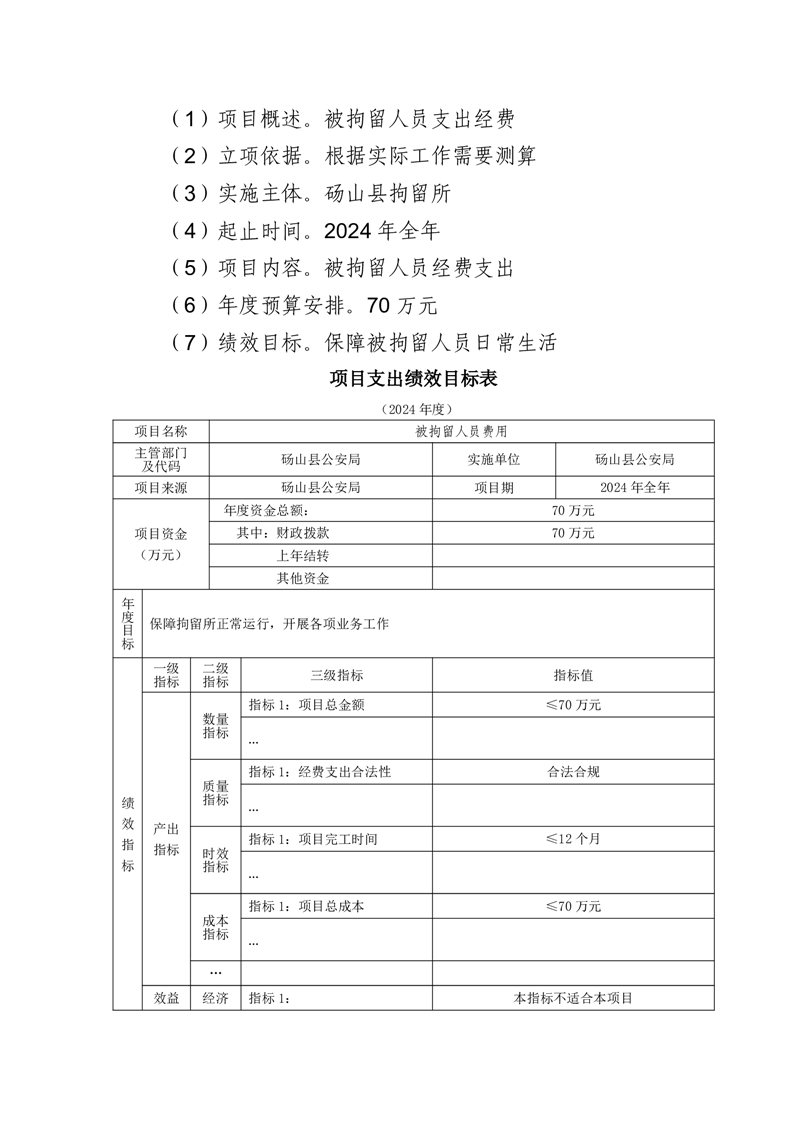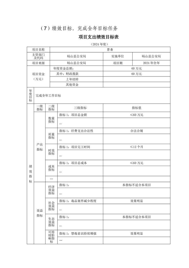 砀山县公安局2024年项目支出预算绩效目标表 |