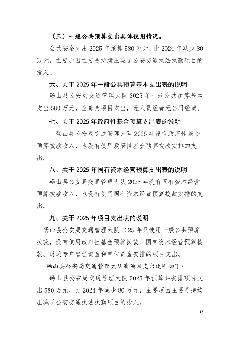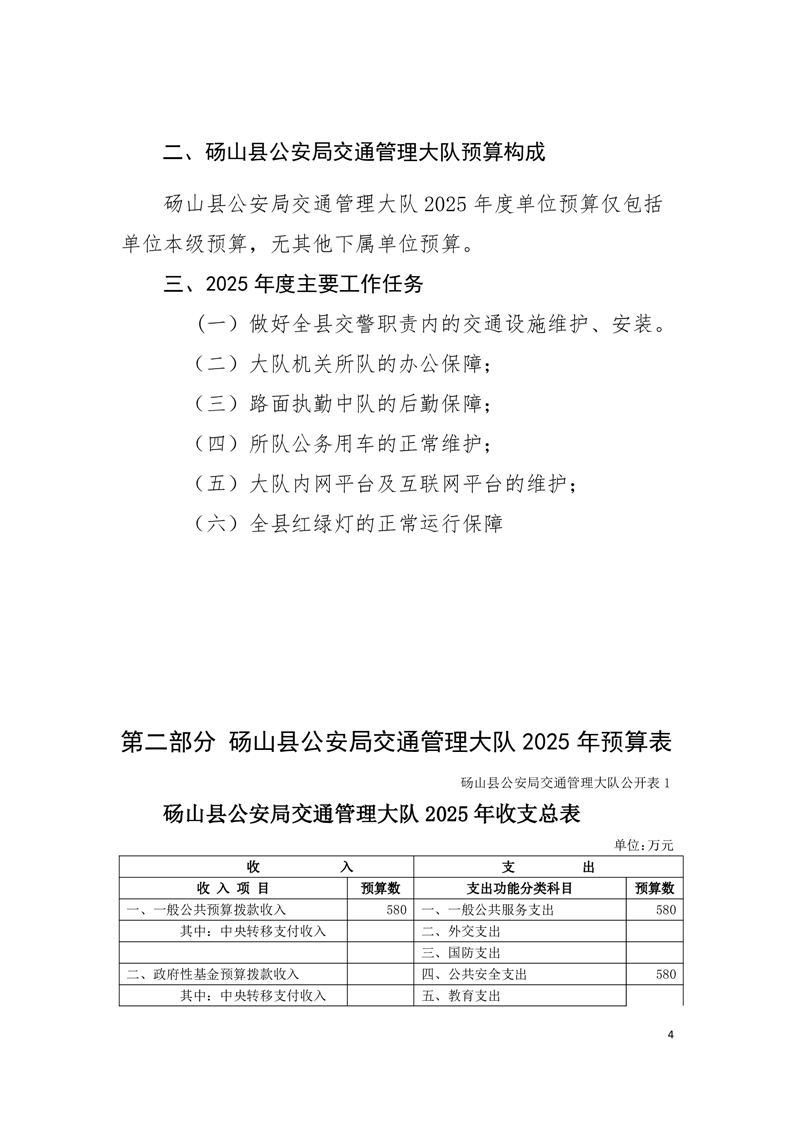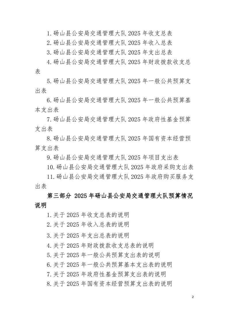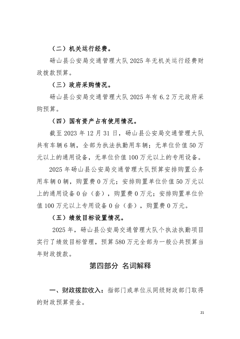砀山县公安局交通管理大队2025年预算 |