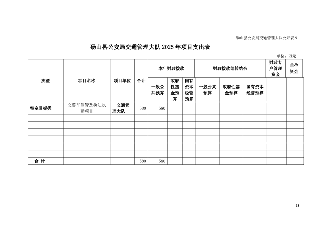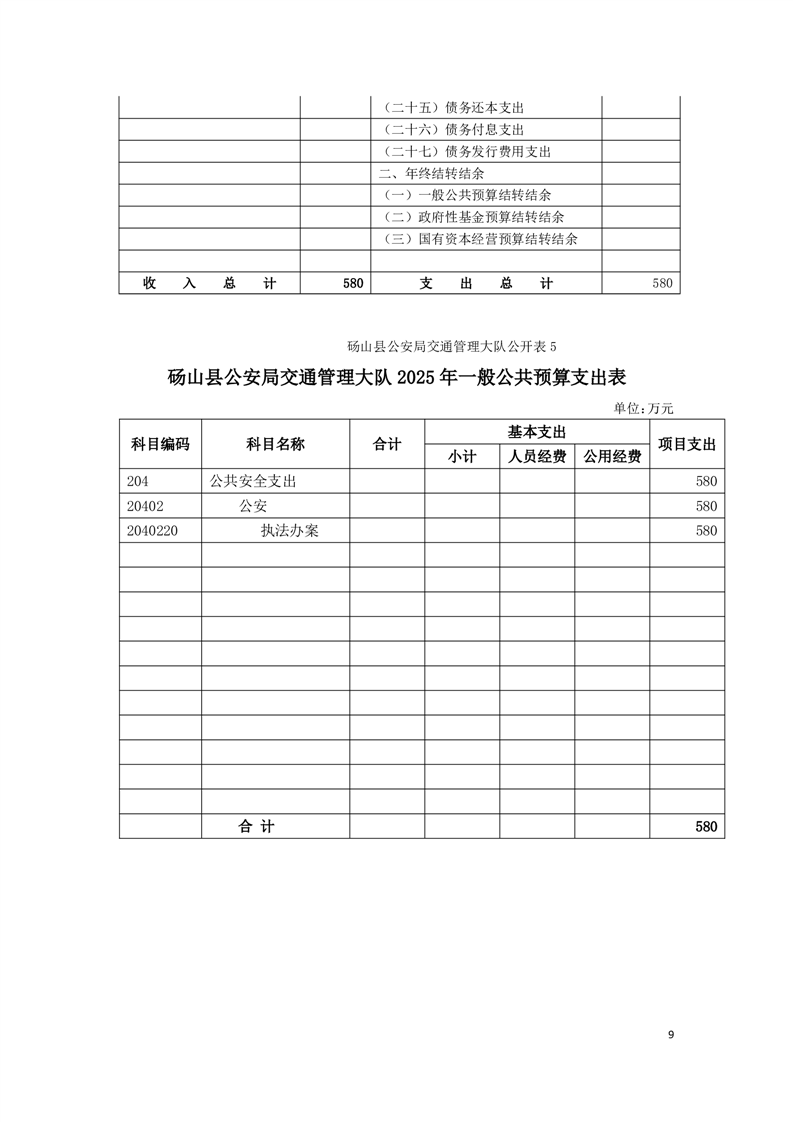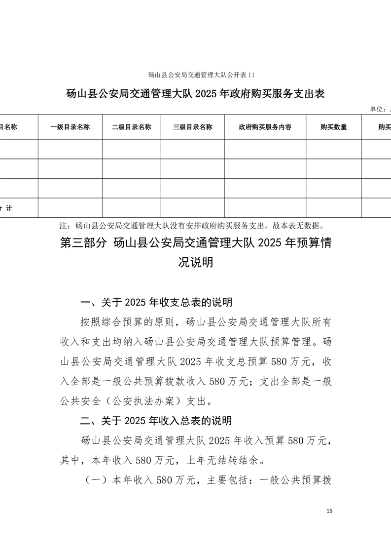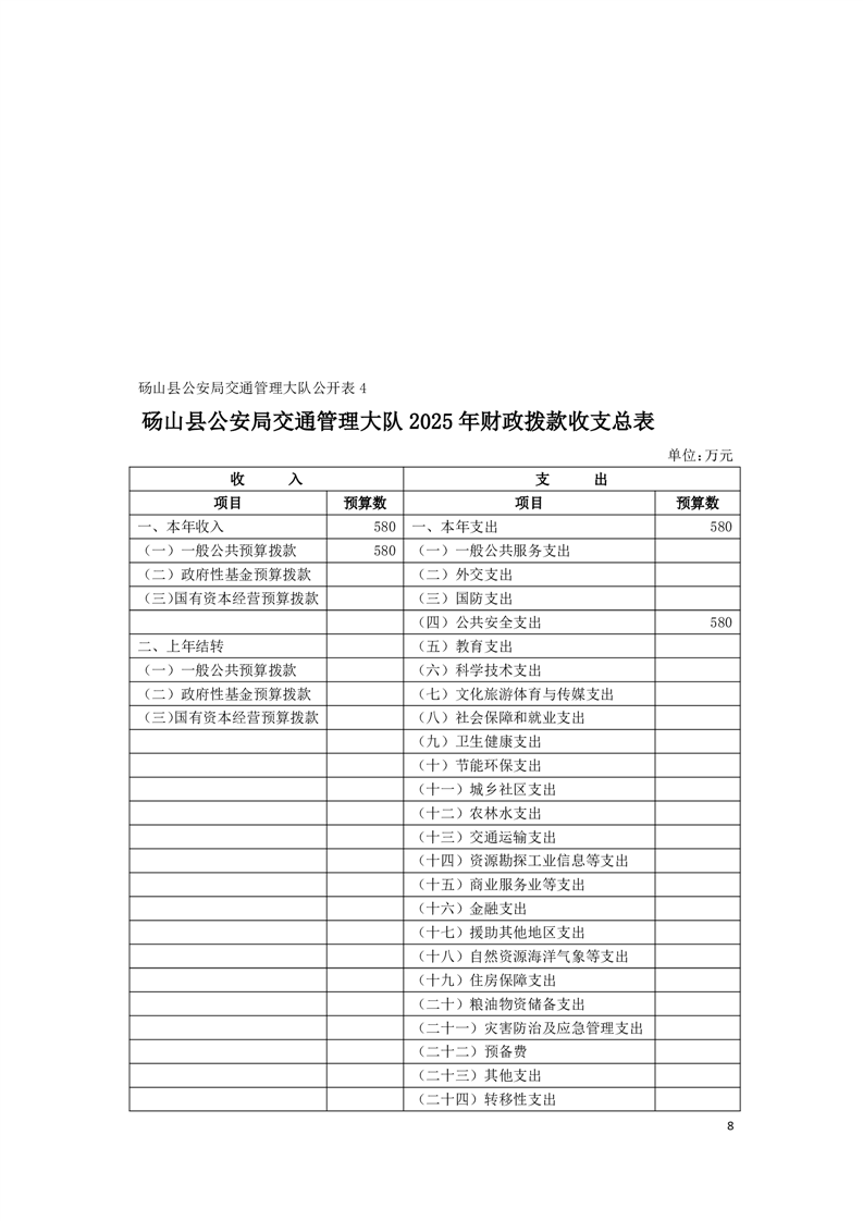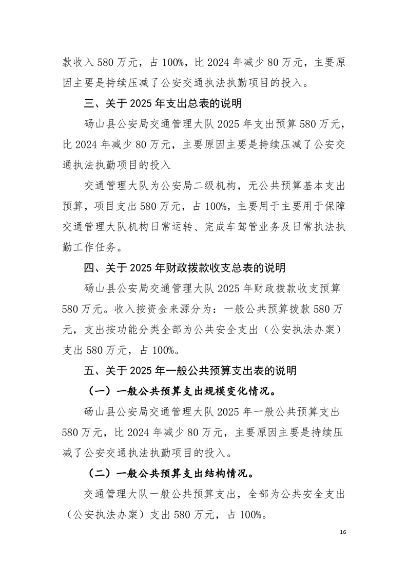 砀山县公安局交通管理大队2025年预算 |
