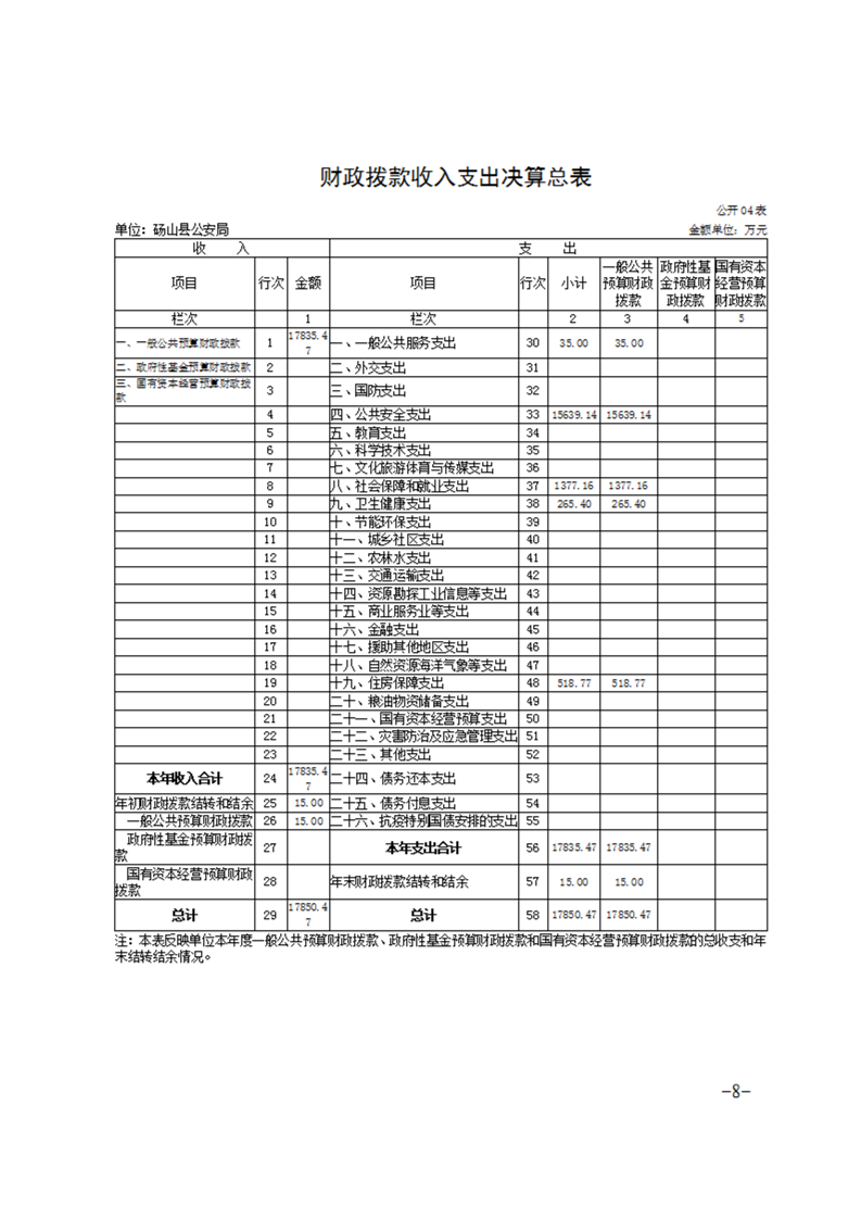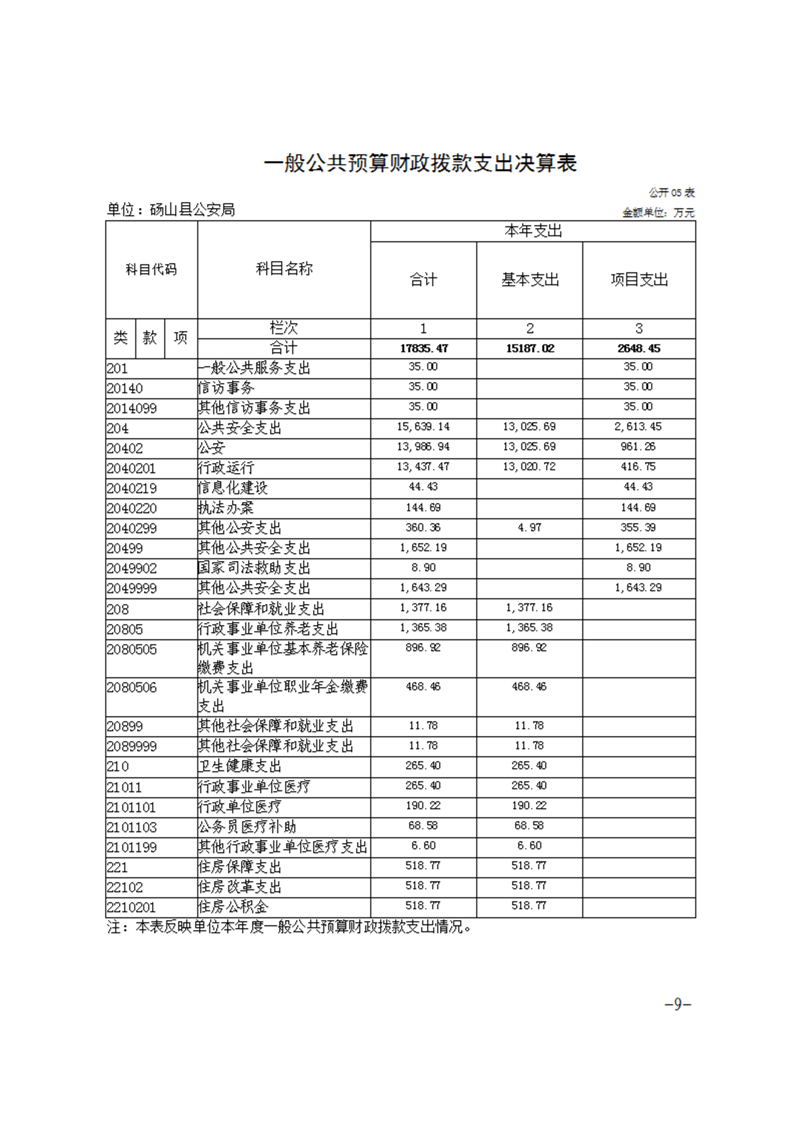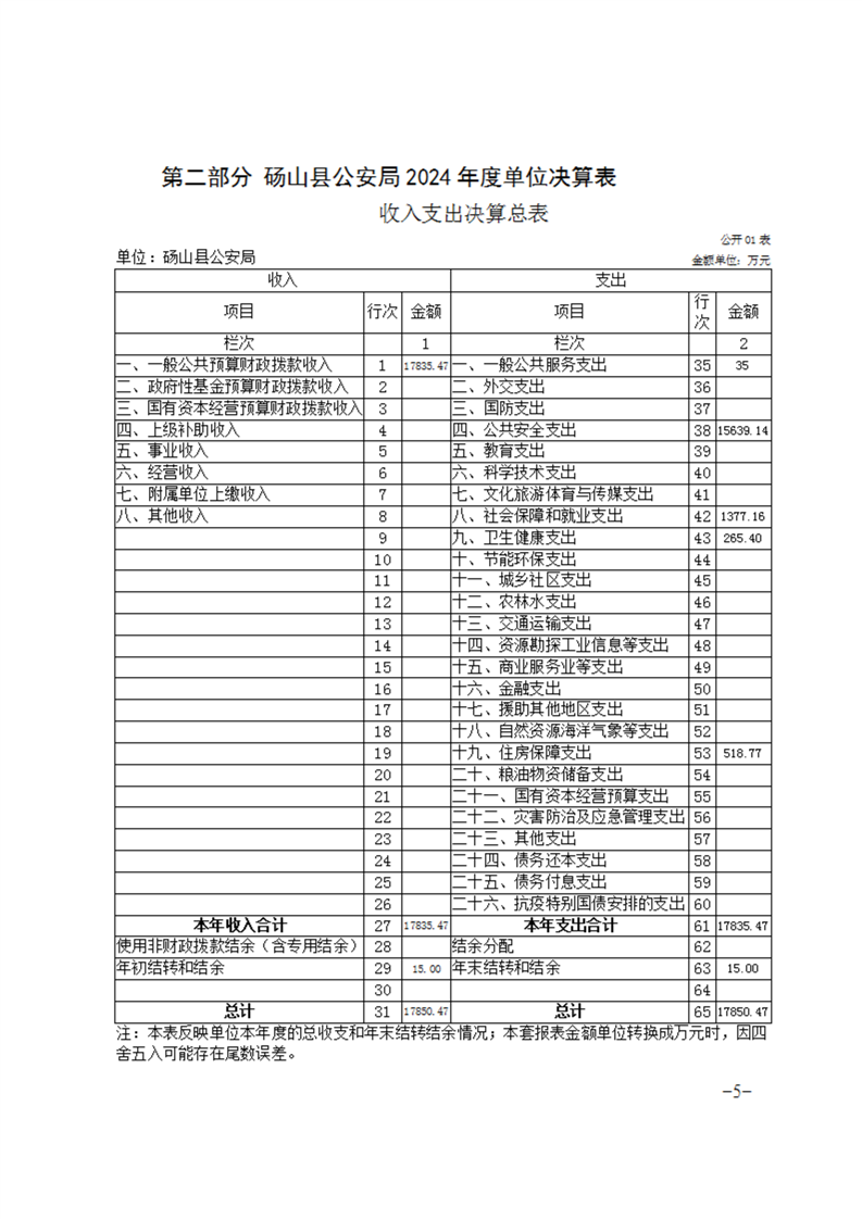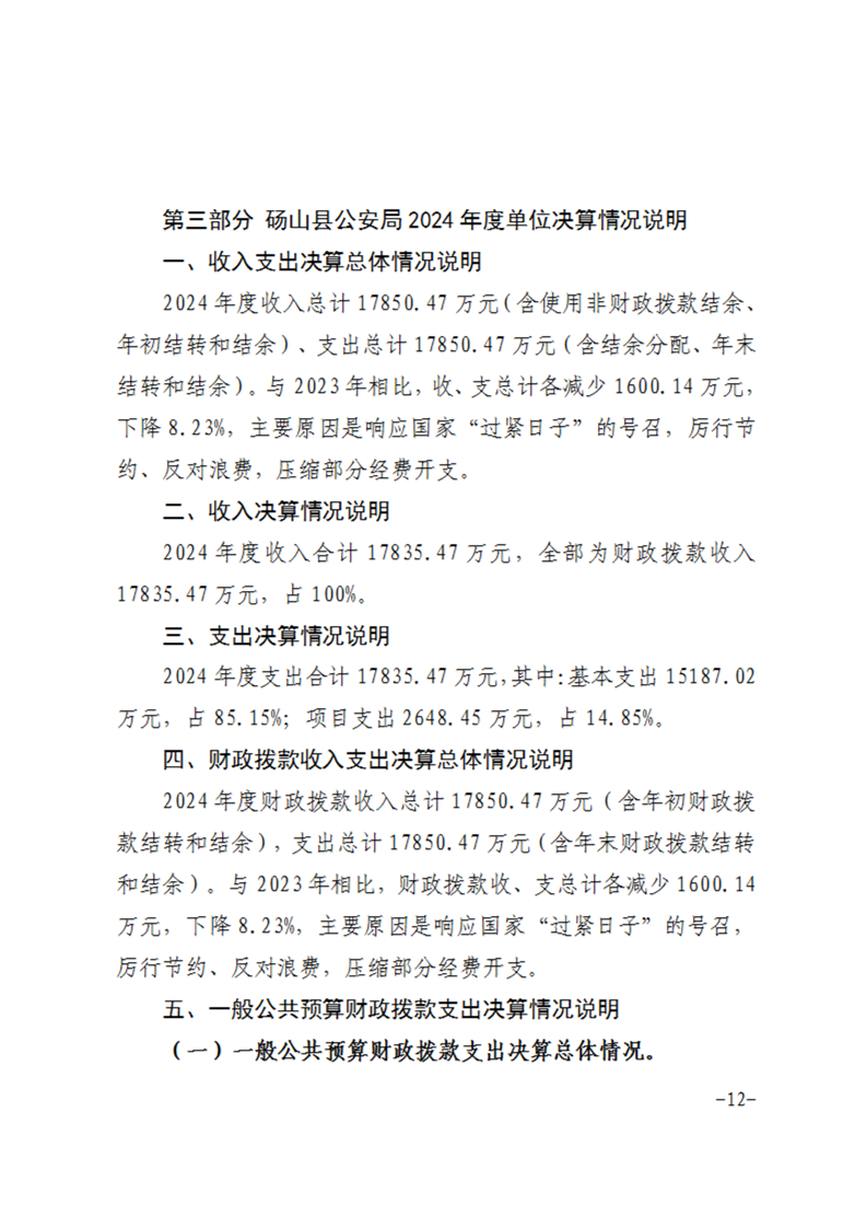 砀山县公安局2024年度单位决算 |