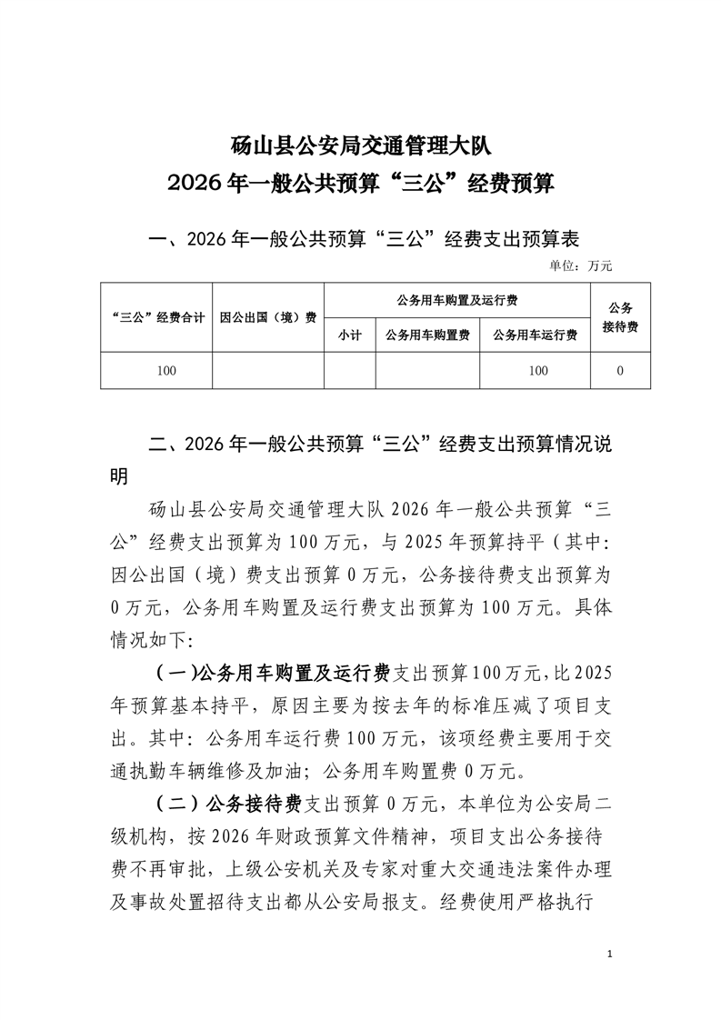 砀山县公安局交通管理大队2026年一般公共预算“三公”经费预算 |