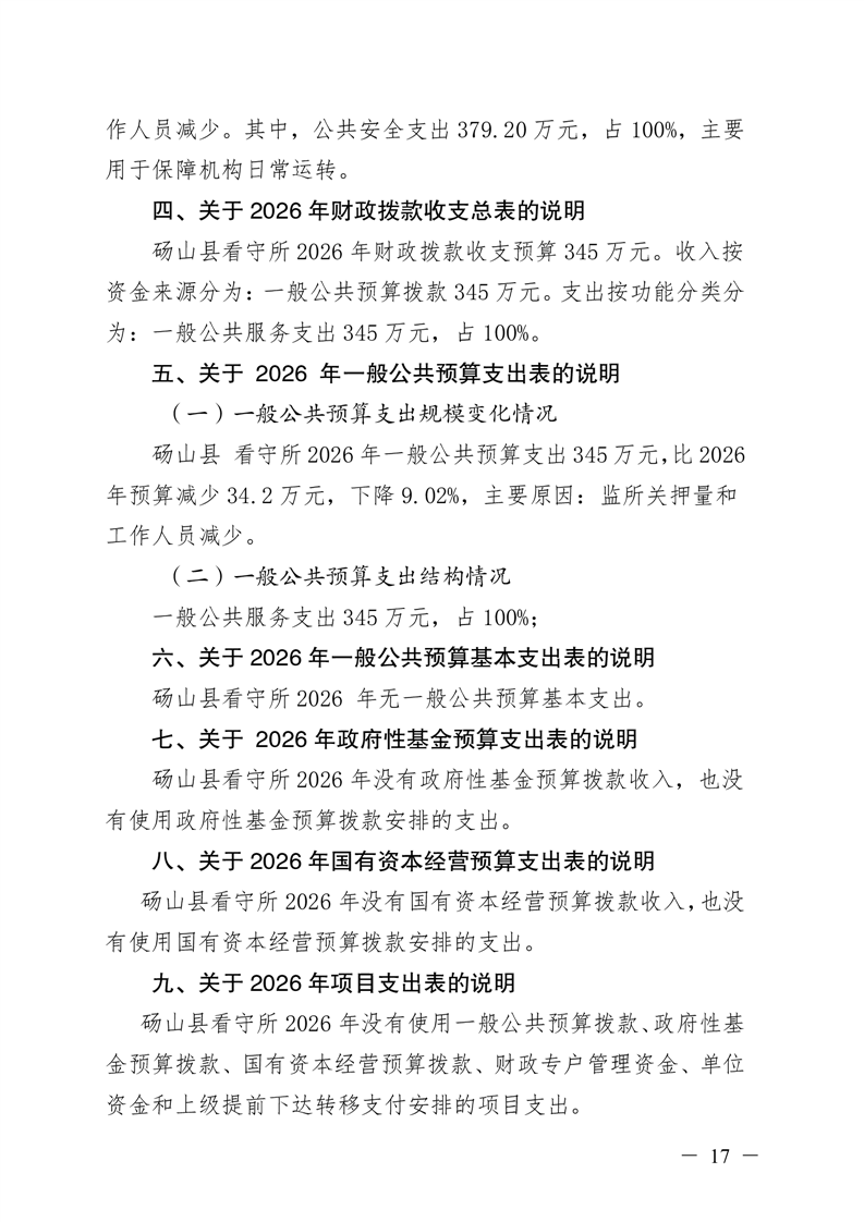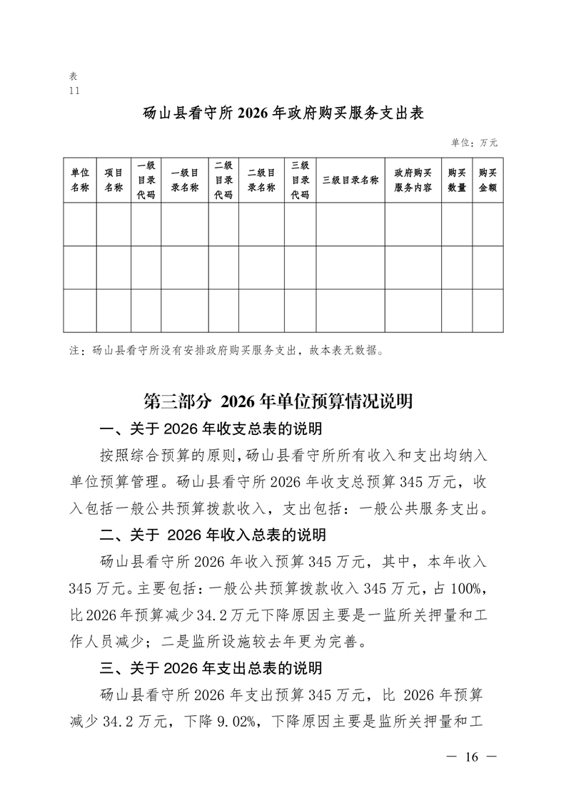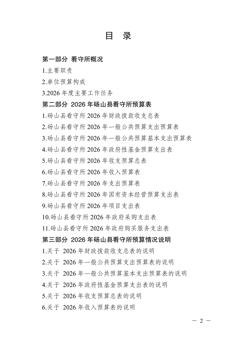 砀山县看守所2026年预算公开