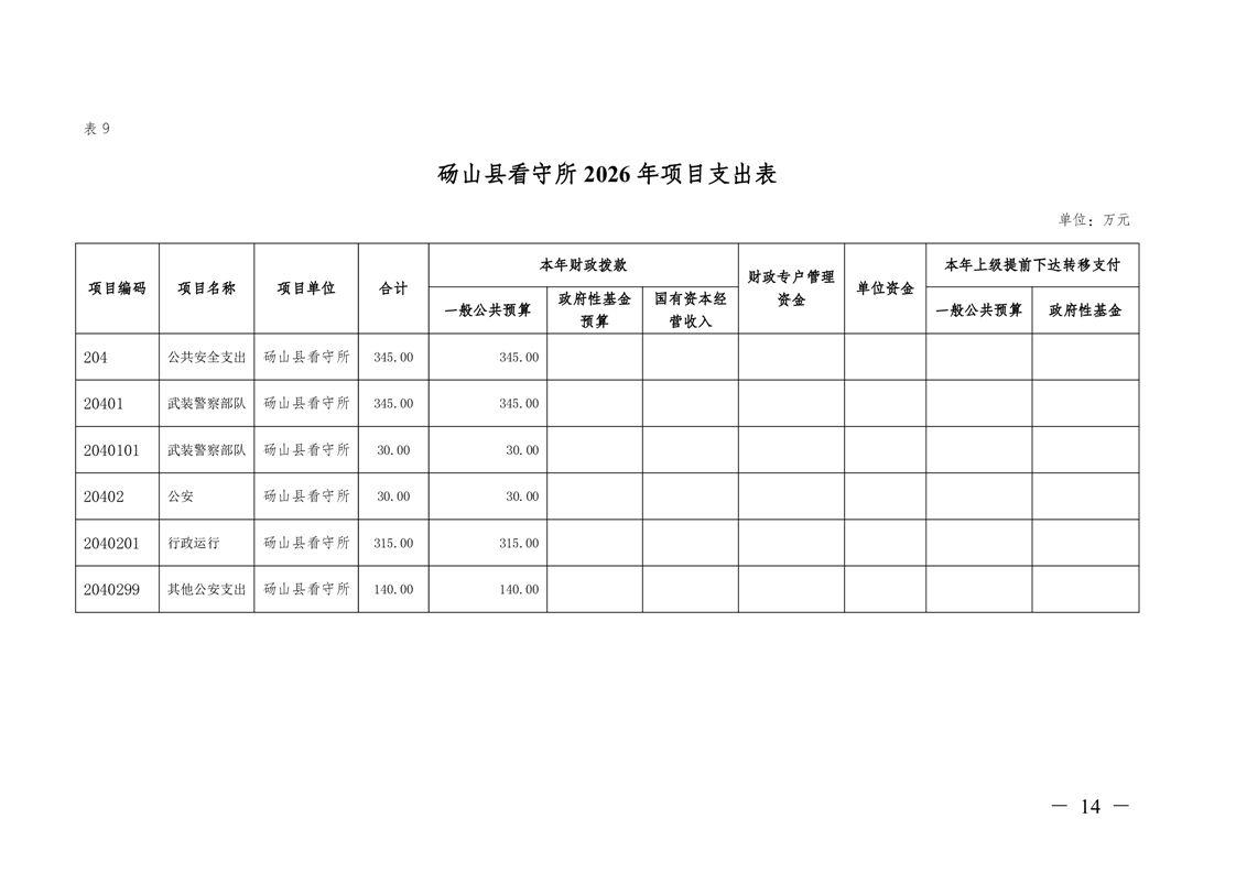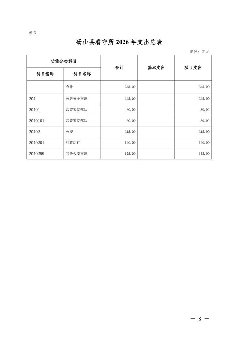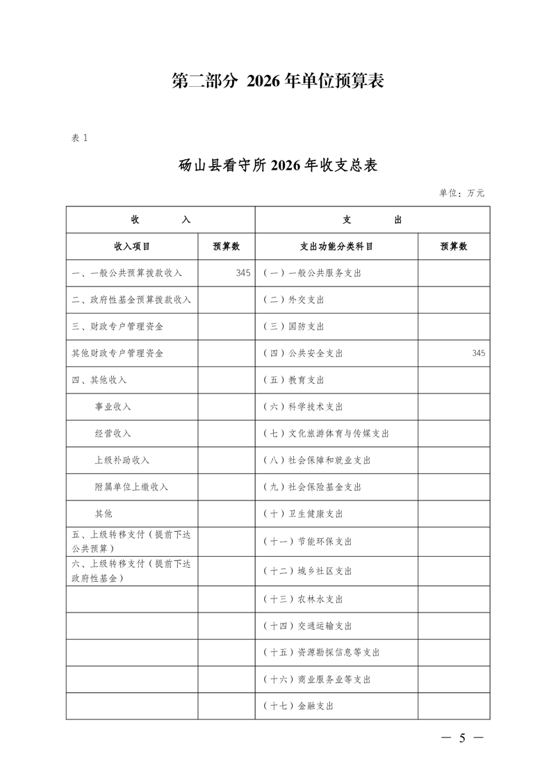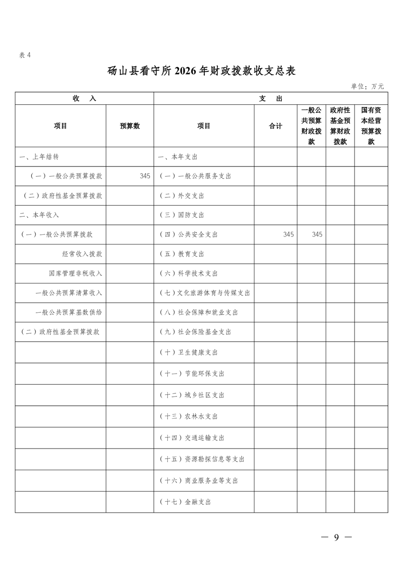 砀山县看守所2026年预算公开