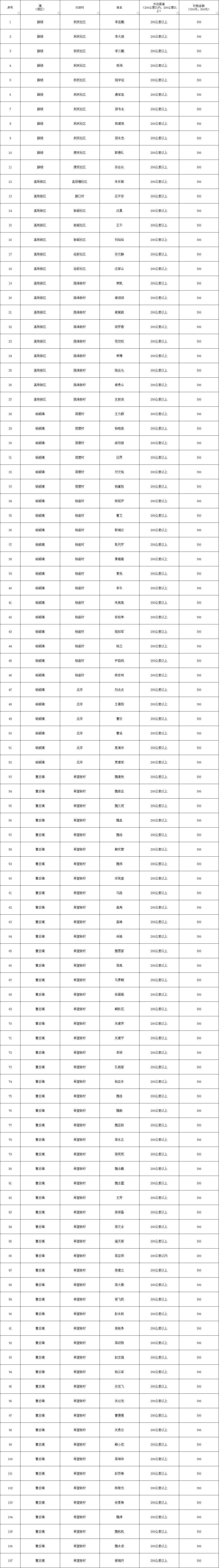 【跨省务工交通补贴】砀山县脱贫劳动者跨省就业交通补贴花名册(第四批)