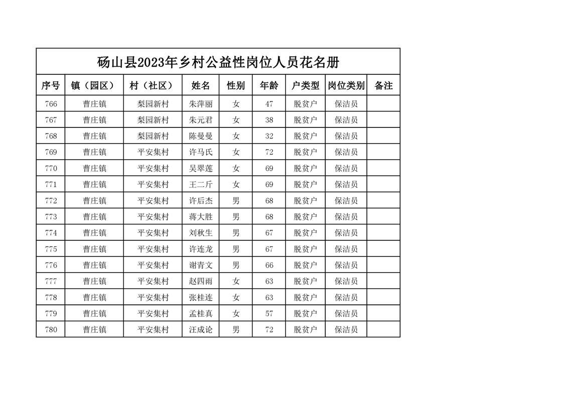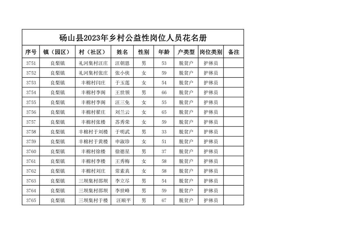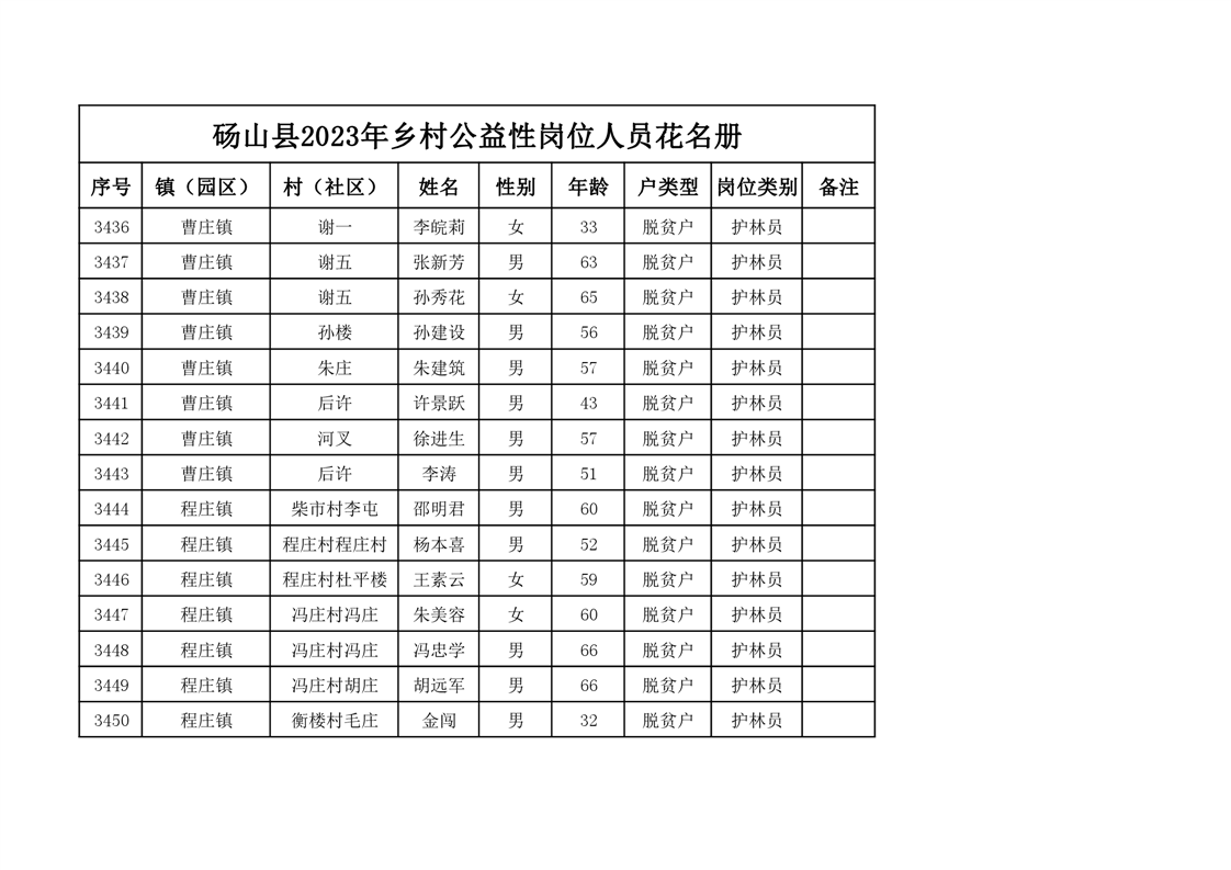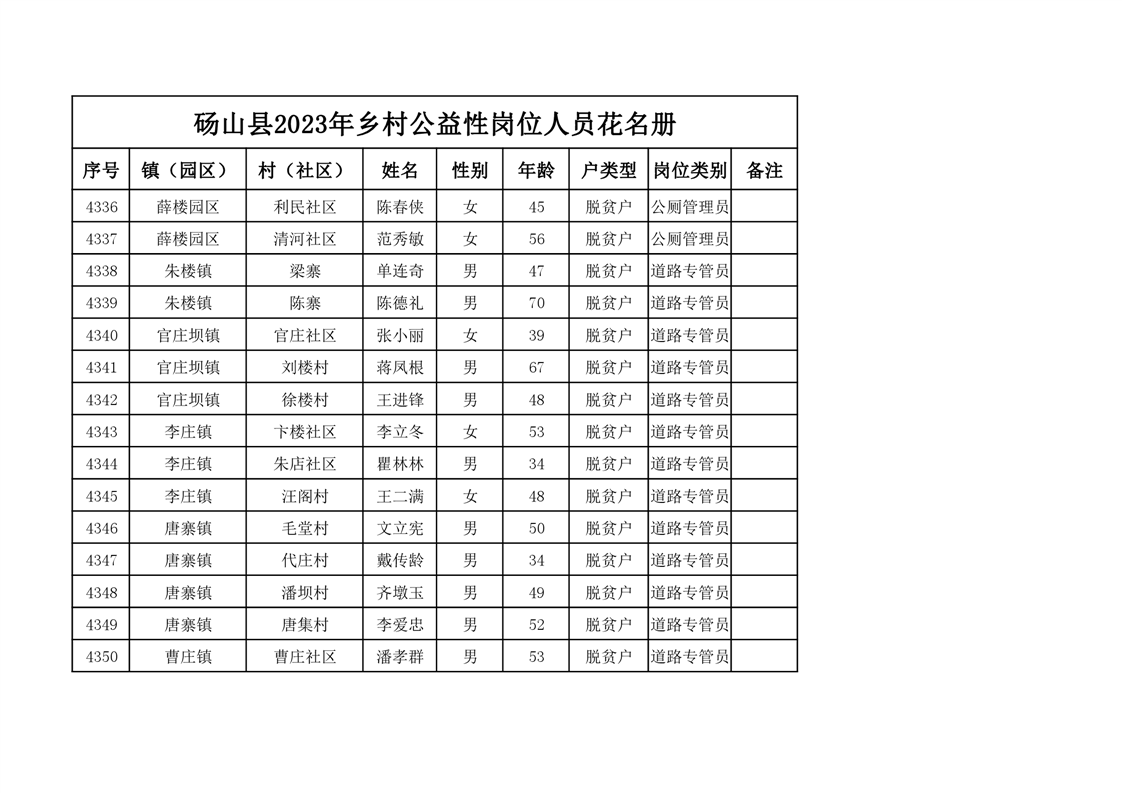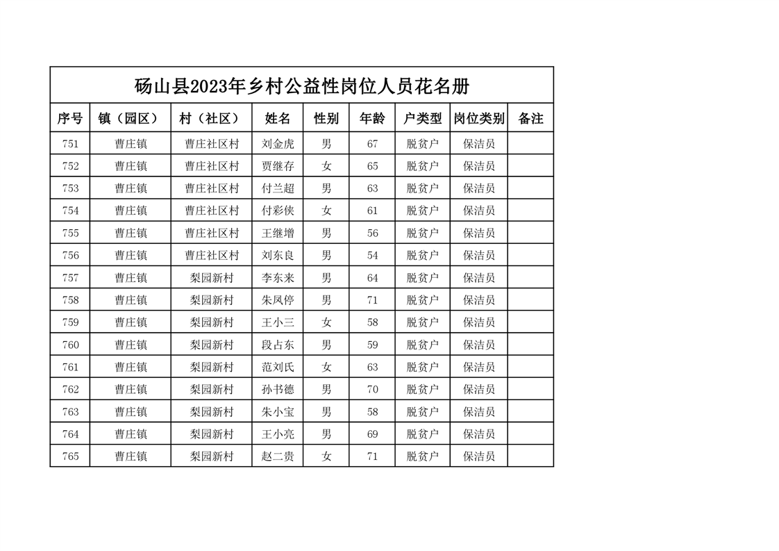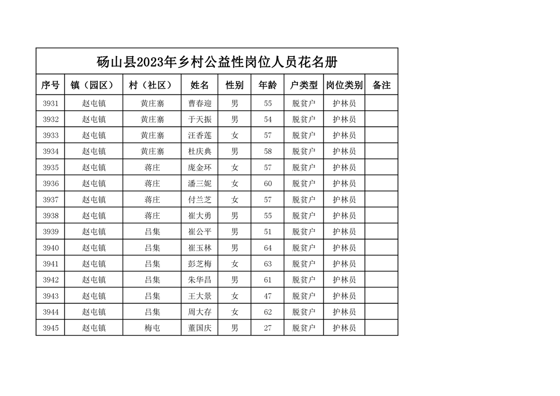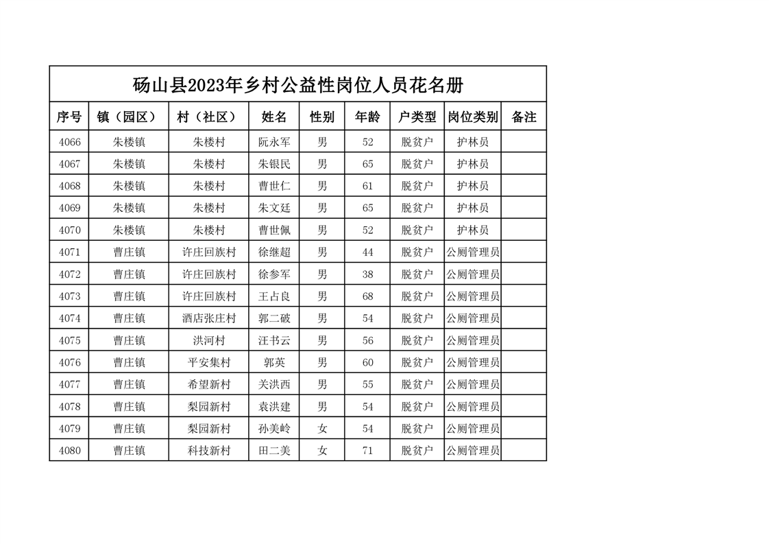 附件:砀山县2023年乡村公益性岗位拟安置人员花名册