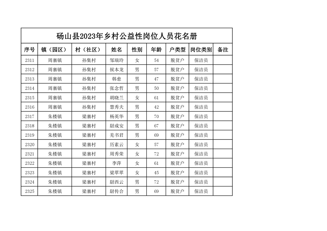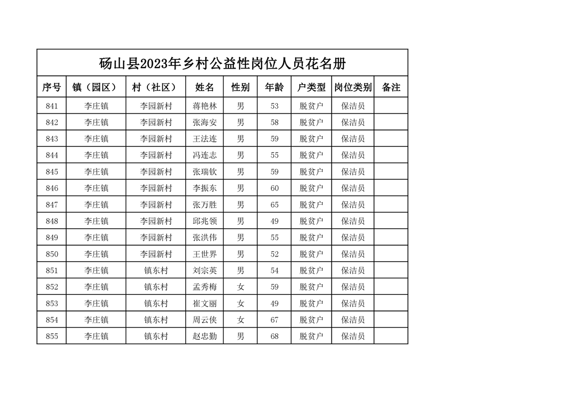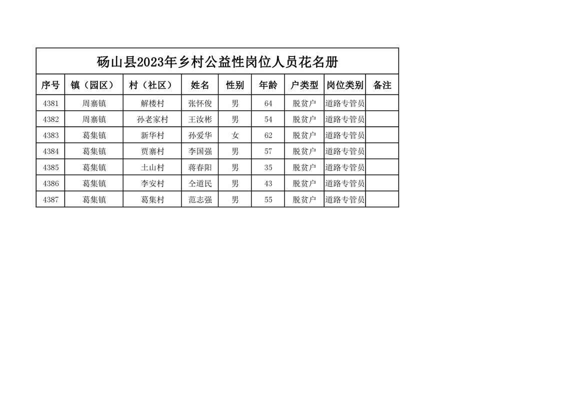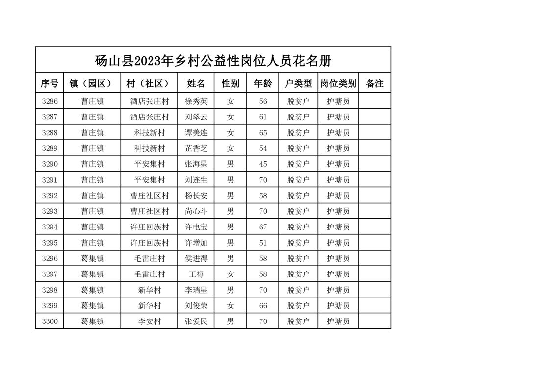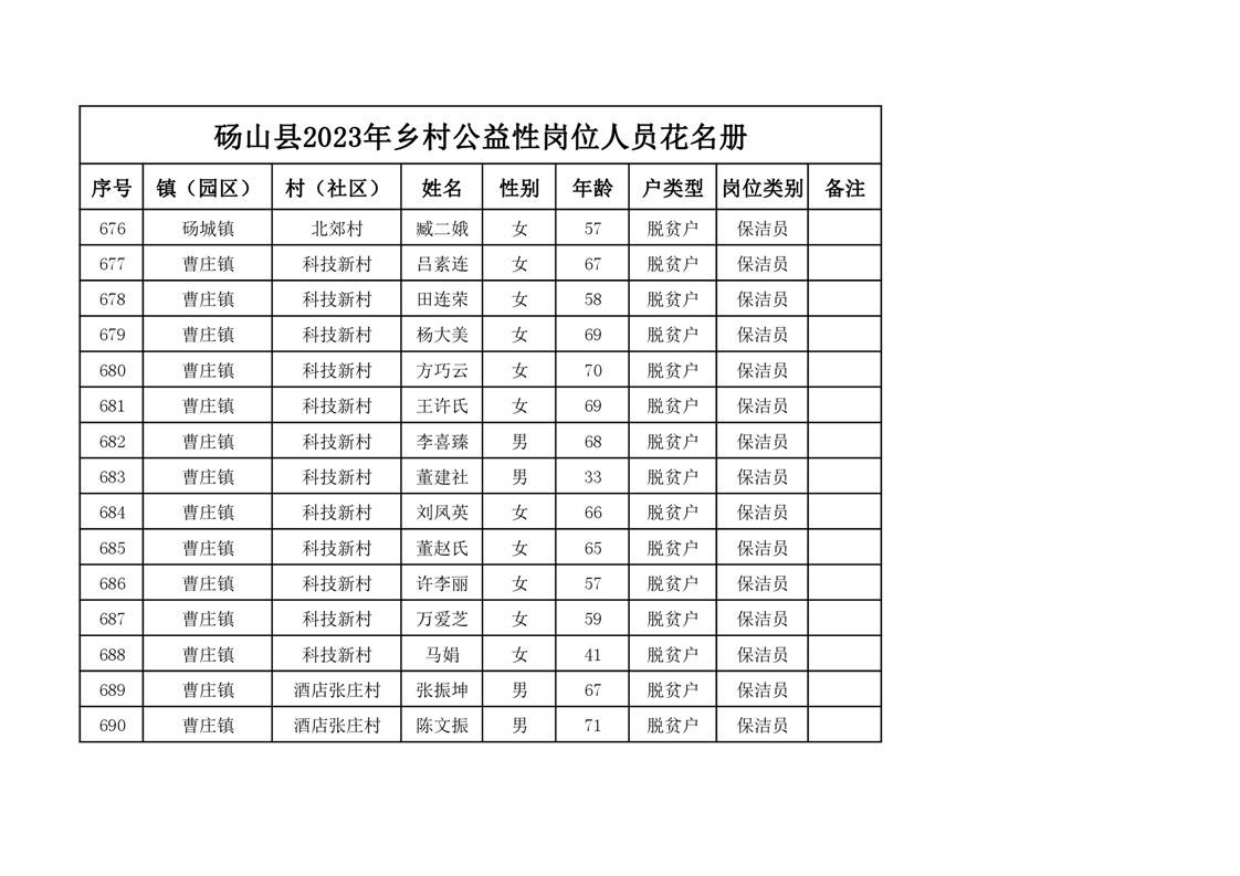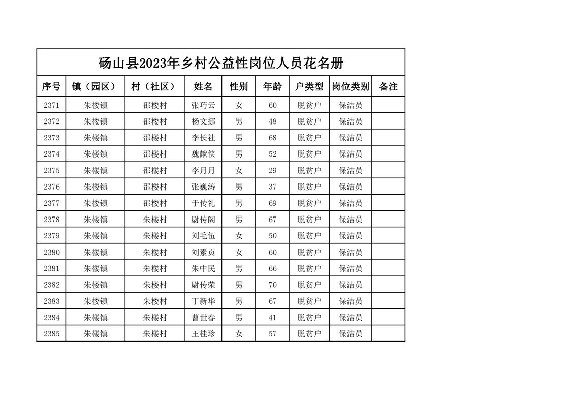 附件:砀山县2023年乡村公益性岗位拟安置人员花名册
