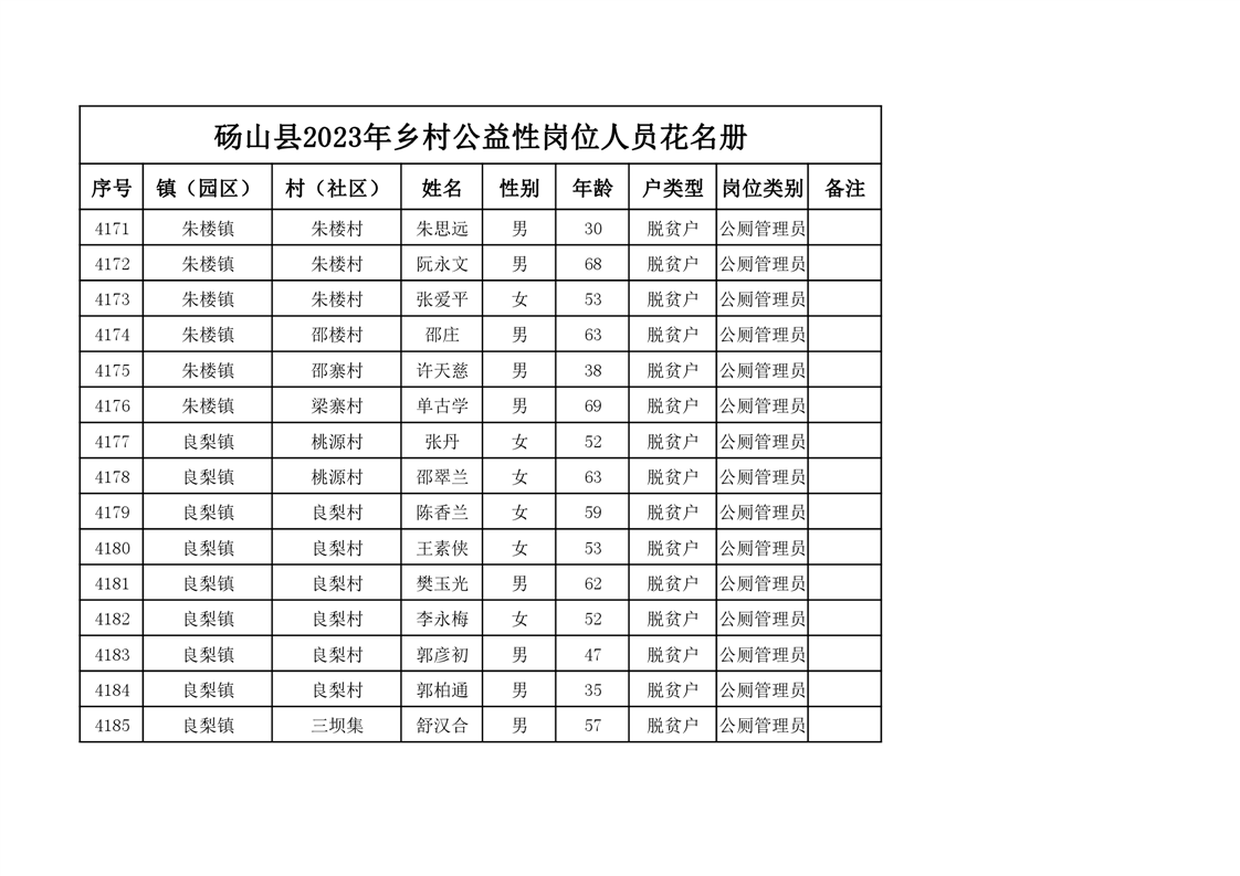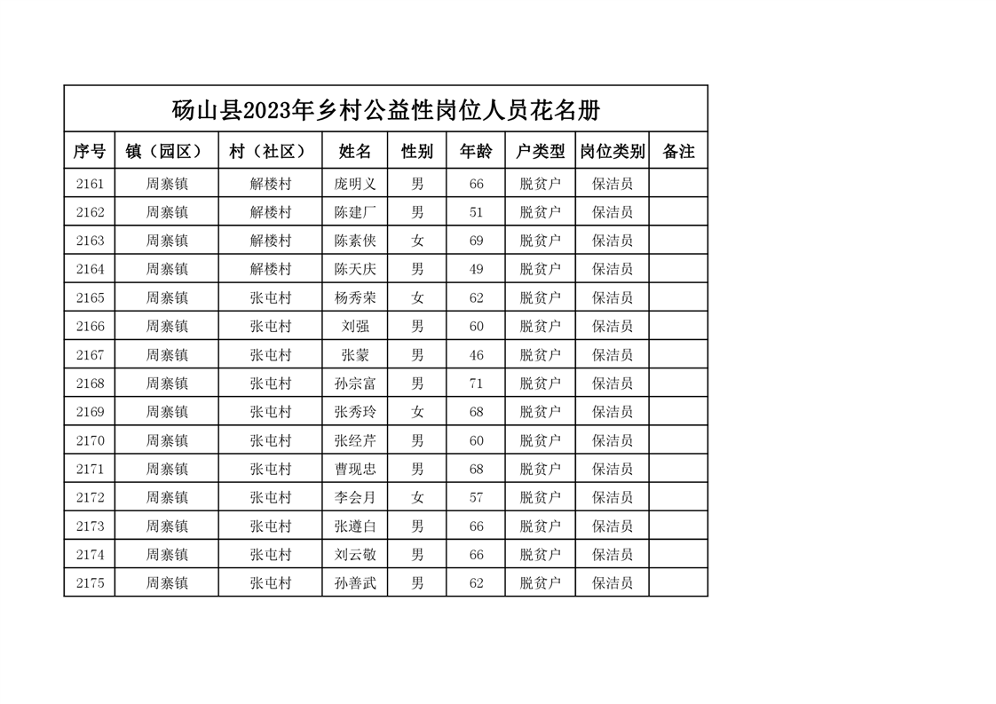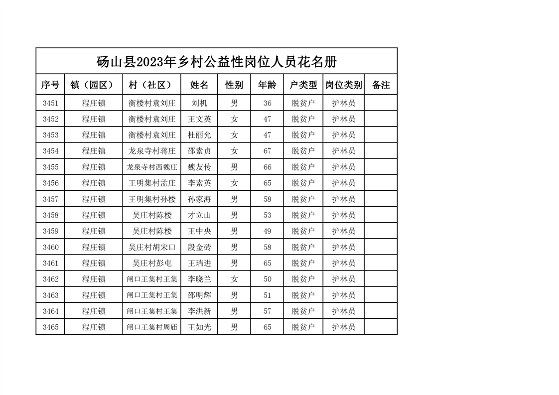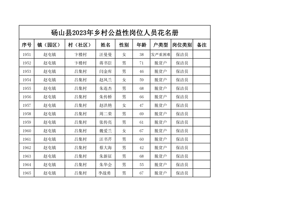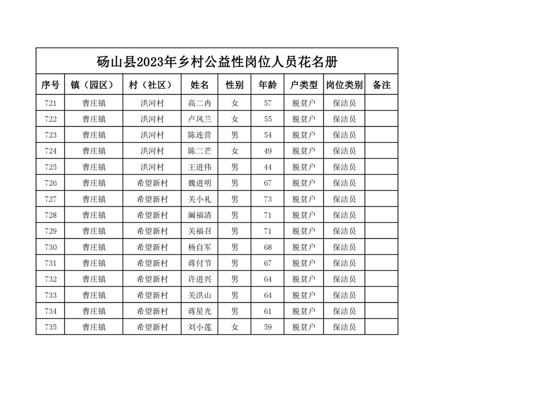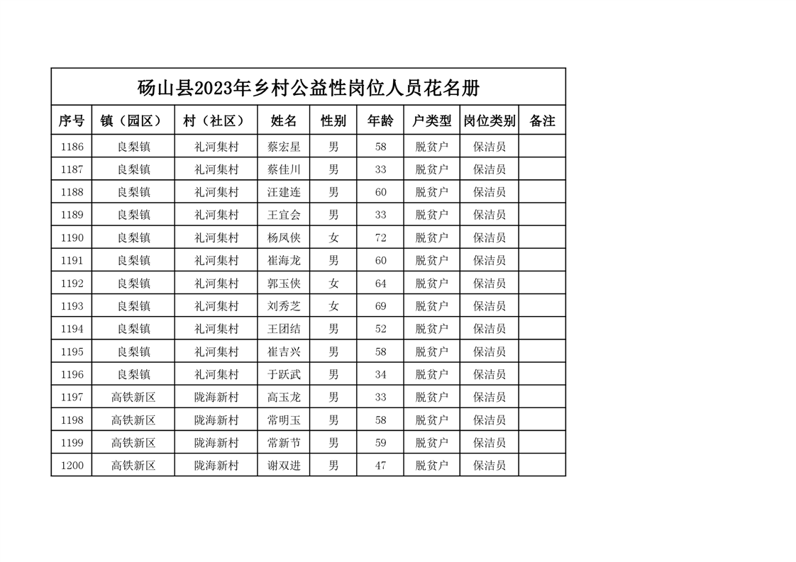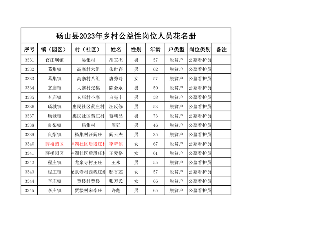 附件:砀山县2023年乡村公益性岗位拟安置人员花名册