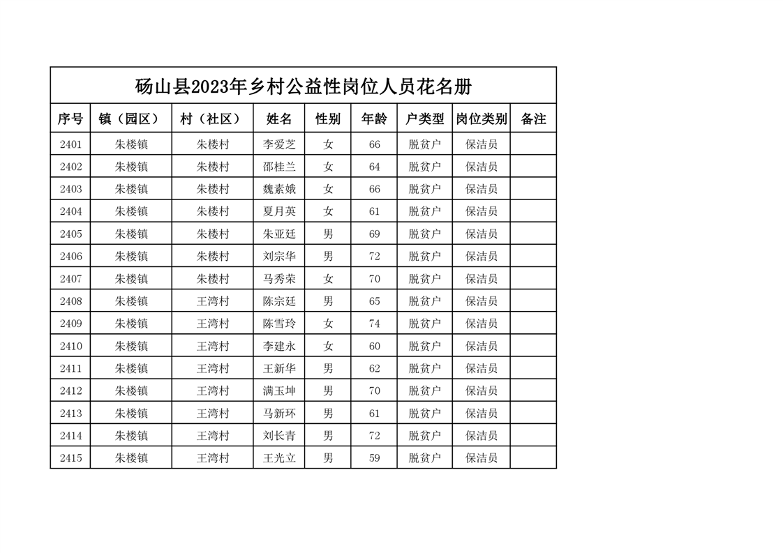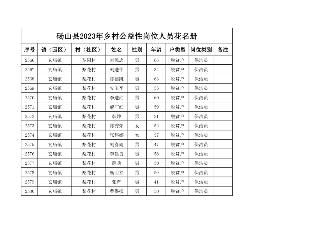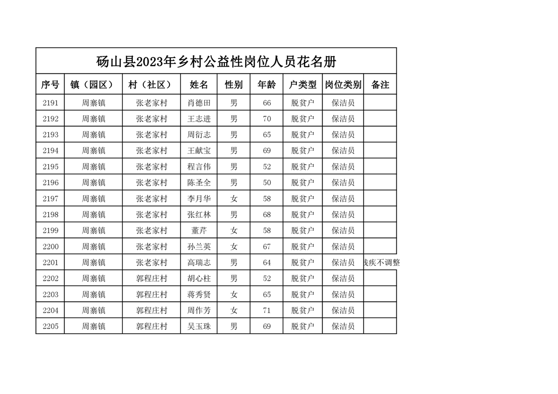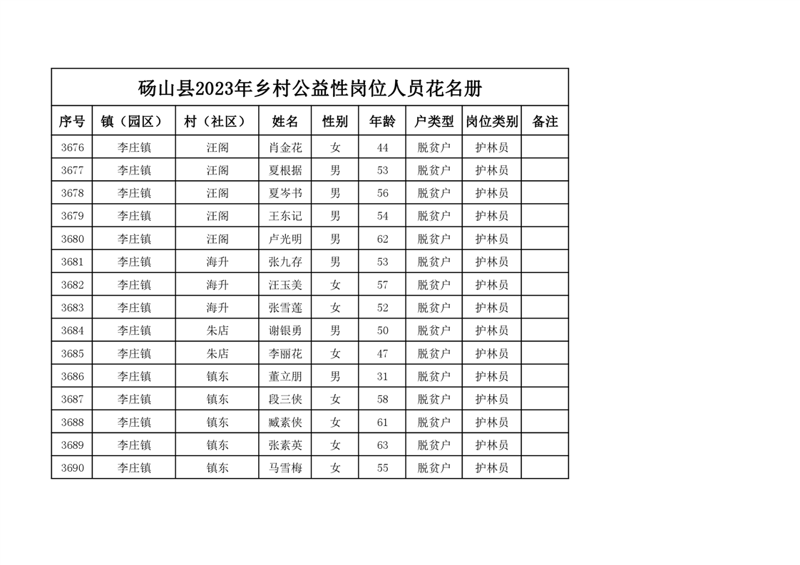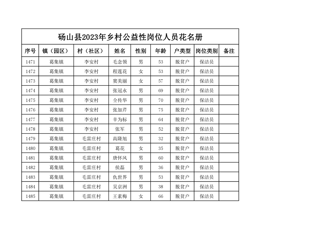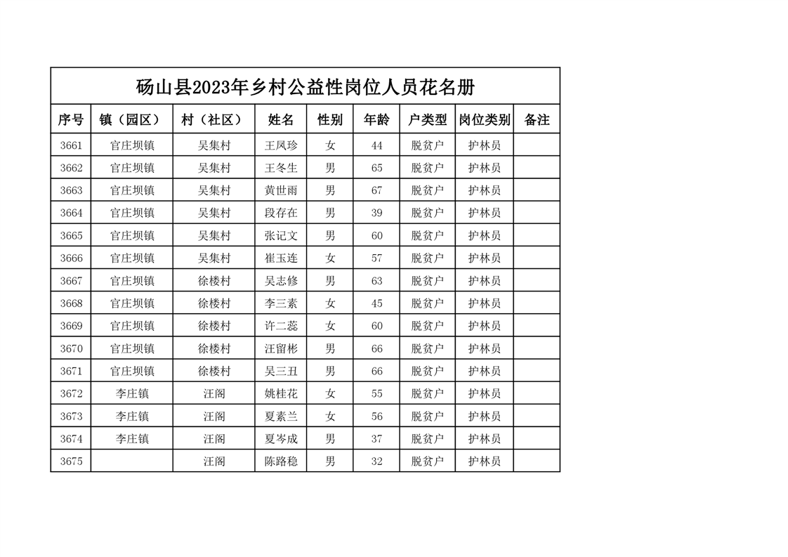附件:砀山县2023年乡村公益性岗位拟安置人员花名册