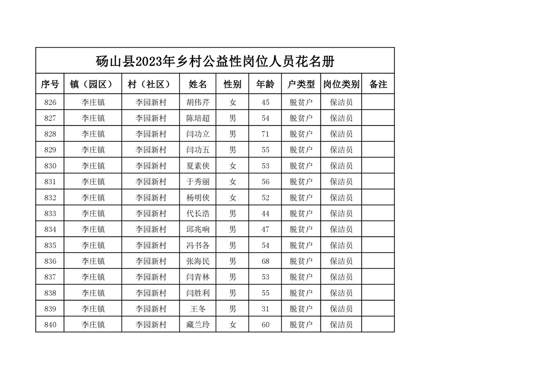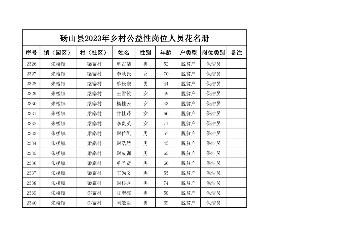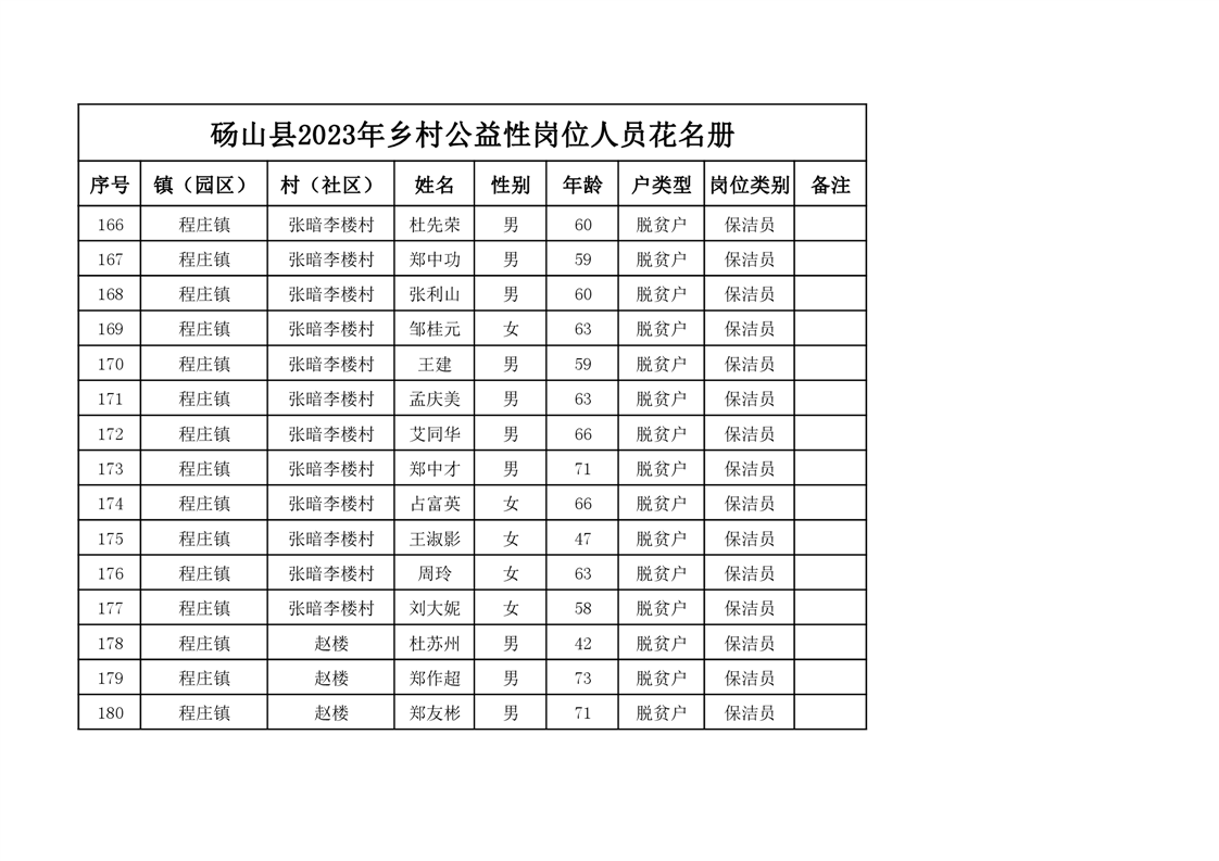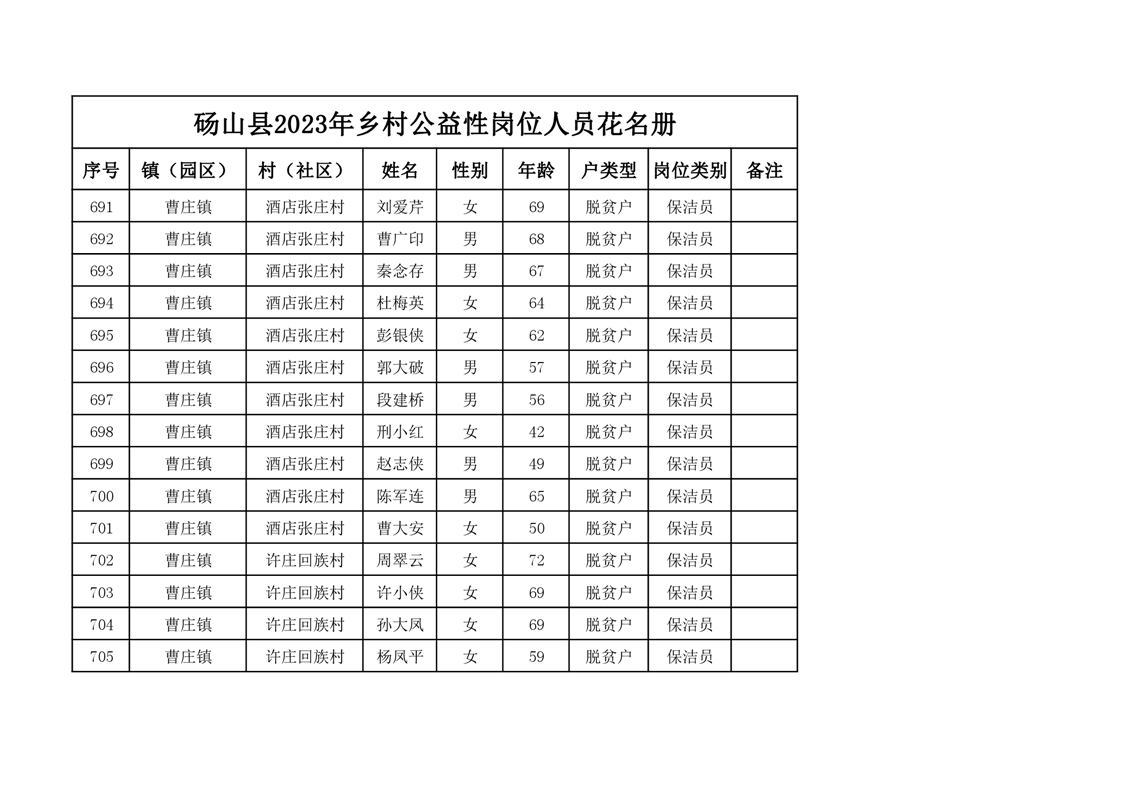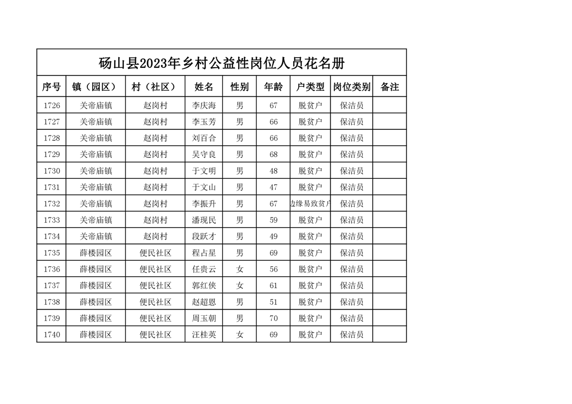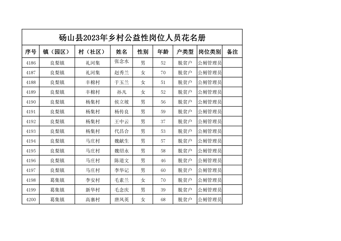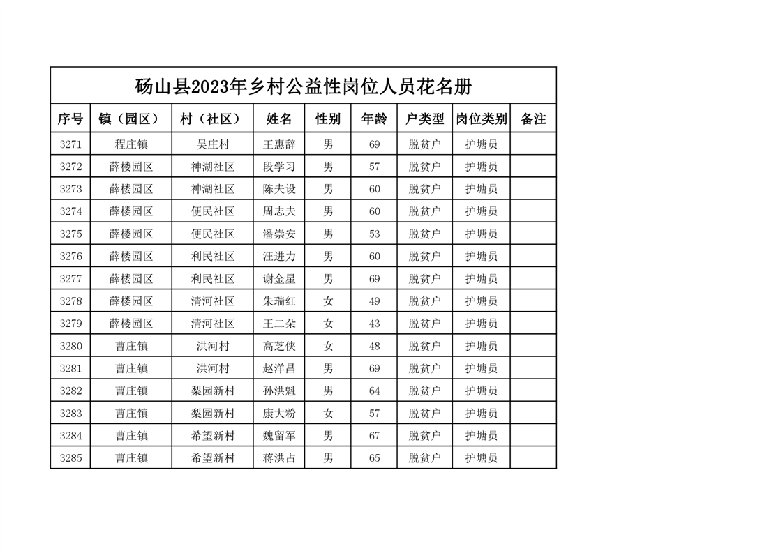 附件:砀山县2023年乡村公益性岗位拟安置人员花名册